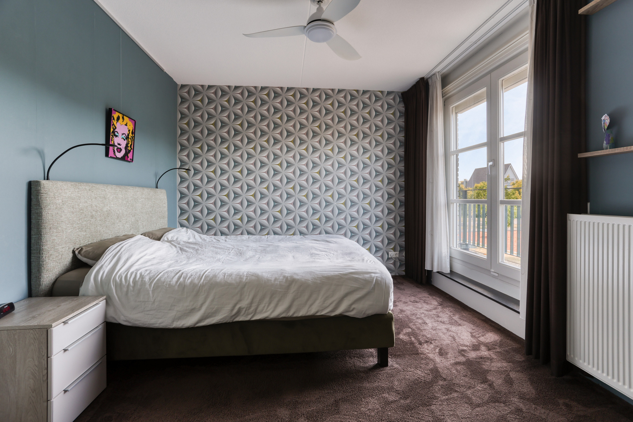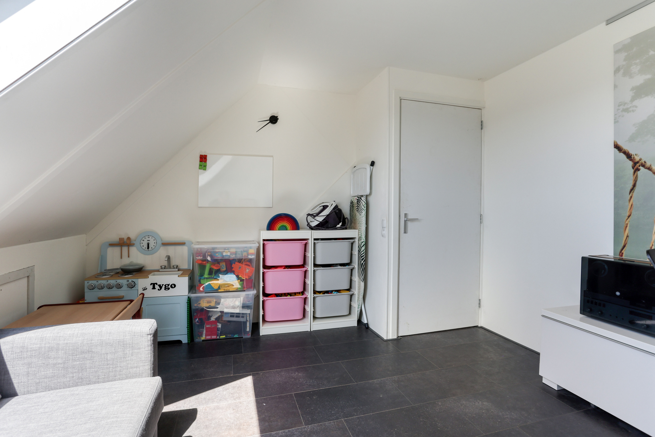 The property features a modern open kitchen and bathroom, five spacious bedrooms, and a private driveway with space for two cars. From the kitchen window, you have a direct view of the large playground in front of the house—ideal for families with young children. The street itself is car-free, contributing to a safe and peaceful living environment.