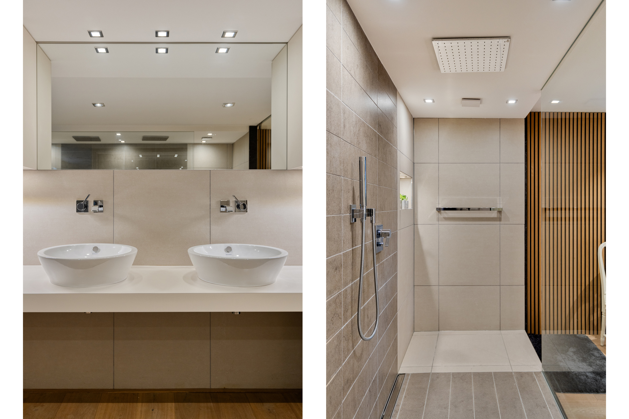 A large driveway with electric charging point introduces the property, complemented by a private garage. Expanses of glass and a serene conservatory suffuse the main living area with light, where a wooden floor and open fireplace create a welcoming atmosphere. The kitchen, with its modern island and extensive built in appliances, includes features such as a climate cabinet, Quooker and steam oven. Adjacent balconies and gardens offer seamless transitions between indoor and outdoor life, with sun throughout the day and practical roll down shutters, sun awnings and twenty solar panels ensuring both comfort and efficiency.