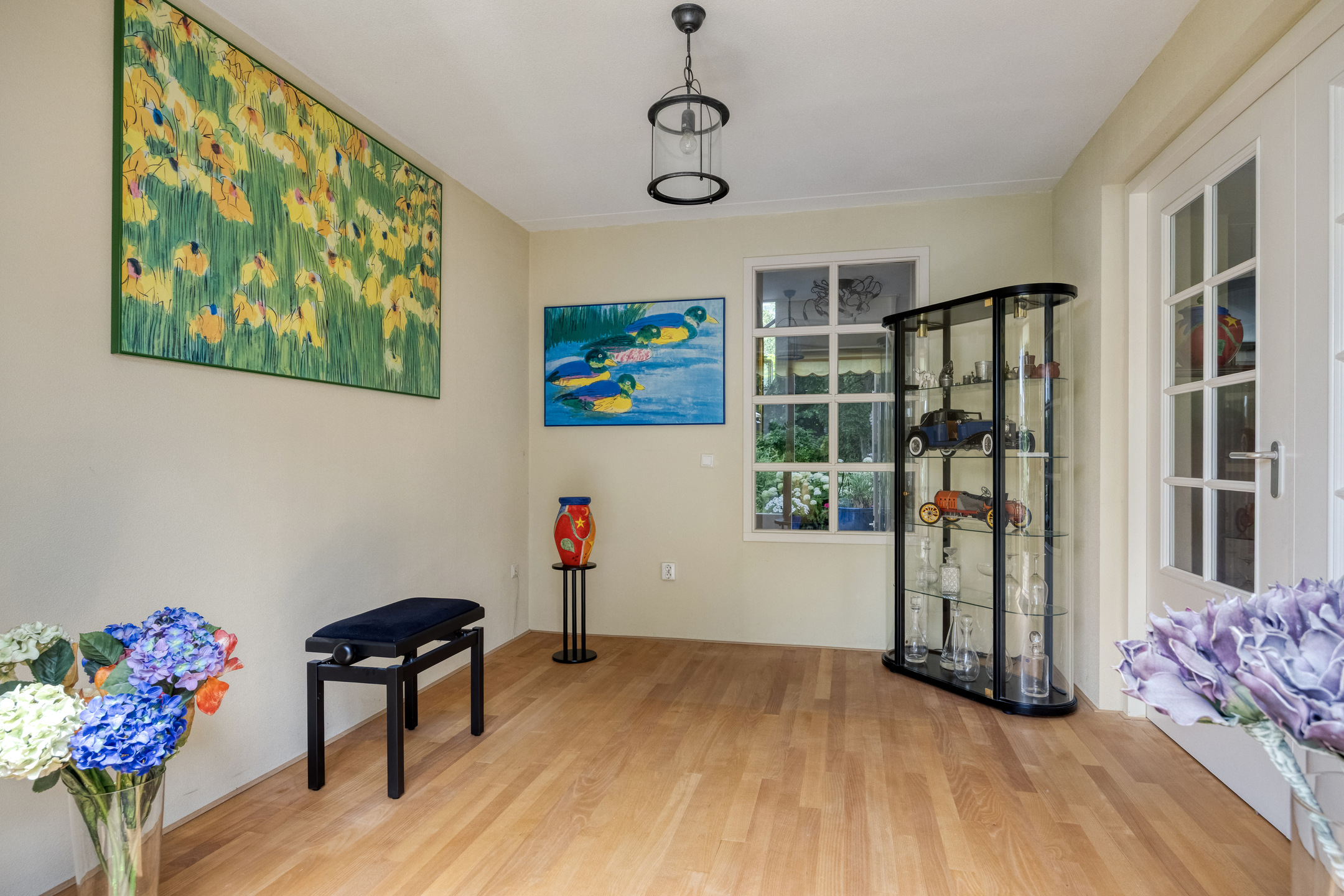 The living room, located at the back, is bright and spacious, with access to an additional room on the ground floor—ideal as a home office, playroom, or hobby room.