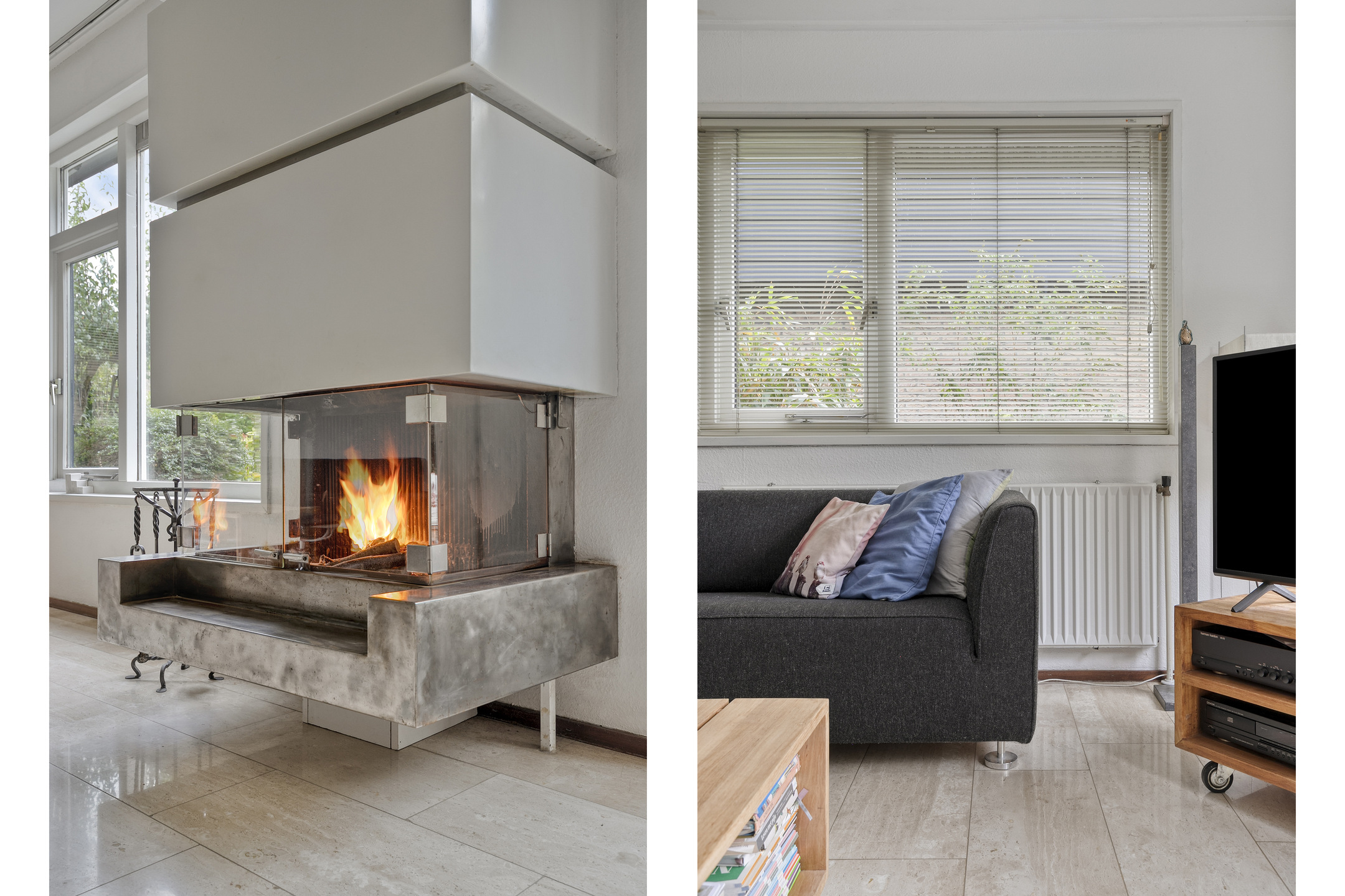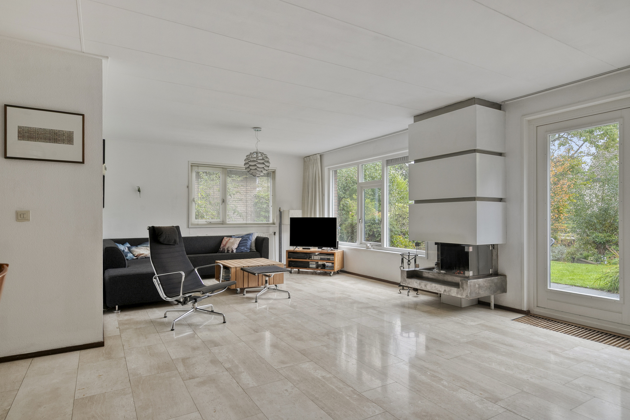 - Spacious, bright living room with cozy fireplace