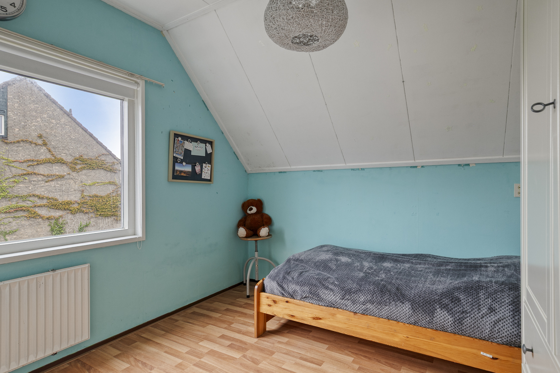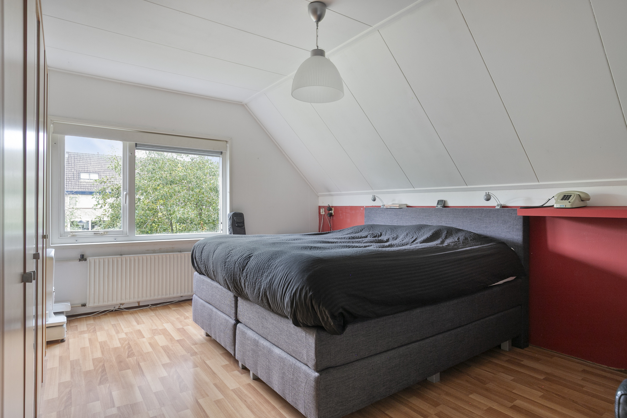 The attic is surprisingly spacious, offering ample storage and housing the central heating unit.