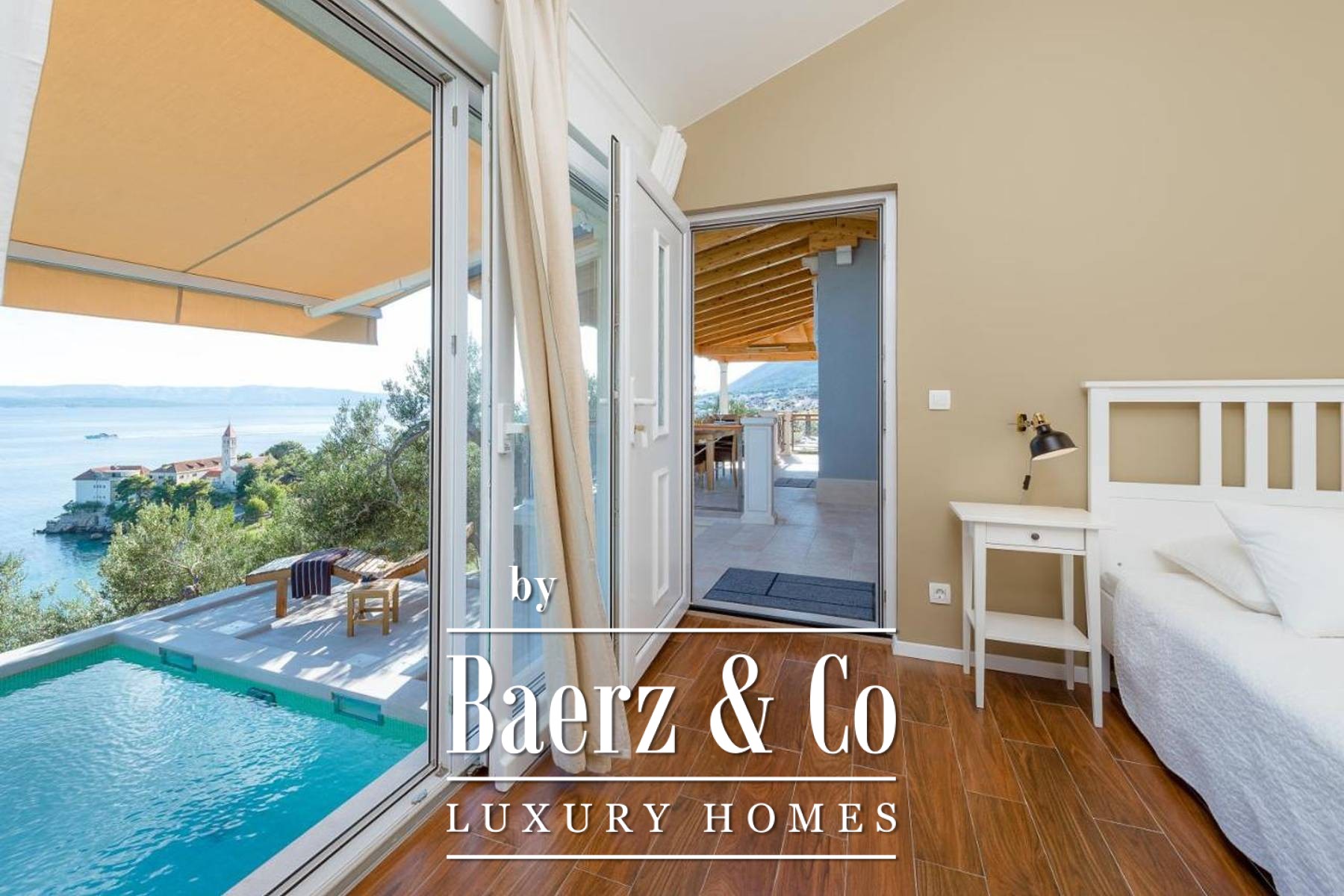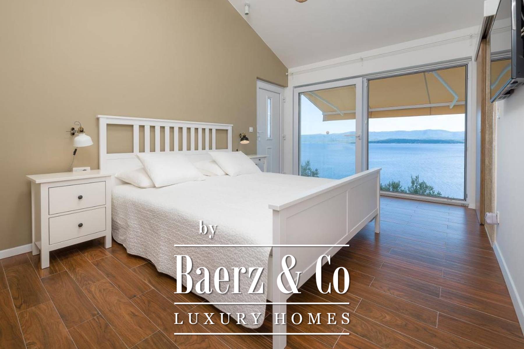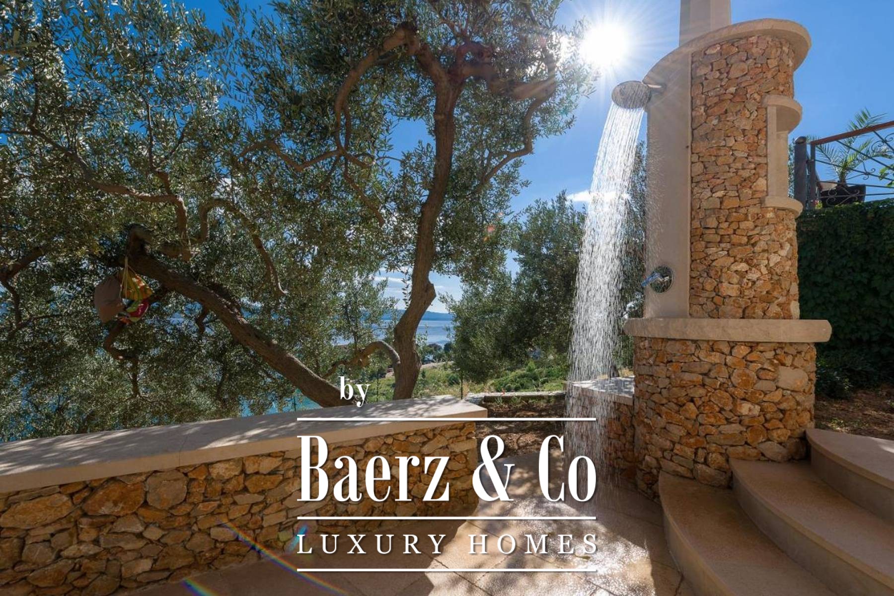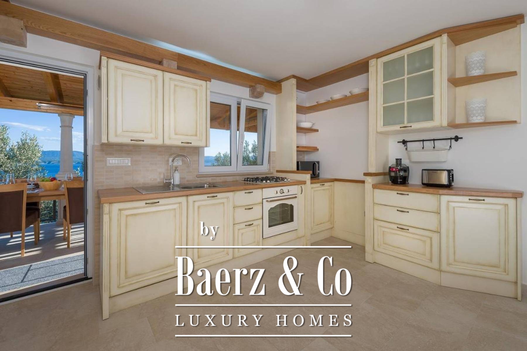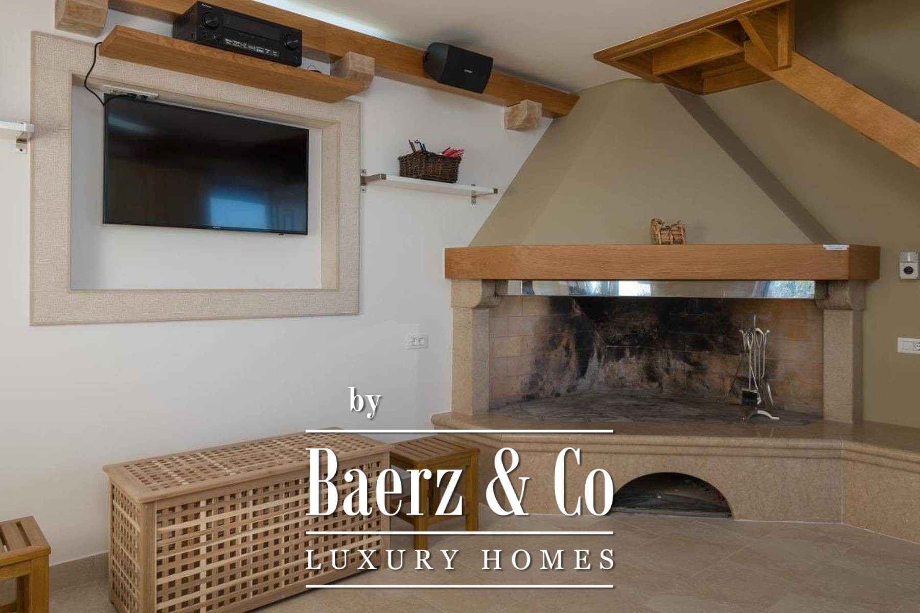 suite bathrooms and access to a spacious terrace with pool and jacuzzi. The living area consists of a kitchen, dining room and living room with indoor fireplace. The villa is fenced and provides complete privacy to future owners. It is a few minutes walk from the beach, 500 m from the center, 30 km from Supetar, 16 km from Brac airport and 60 km from Split airport. Additional information on request.