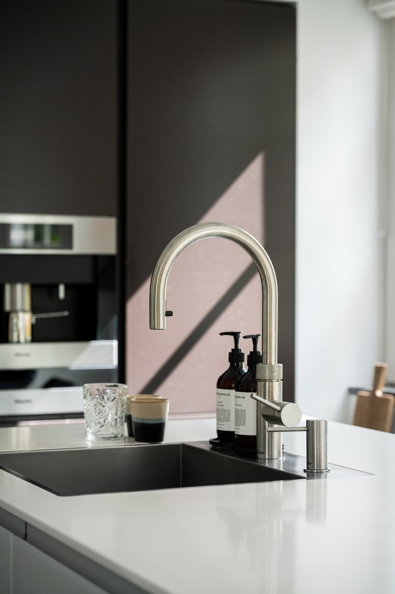 Bedroom suites upstairs provide thoughtful storage, air conditioning, and views over the tranquil garden and adjacent park. The bathrooms are finished with walk-in showers, designer fixtures, and double vanities. Energy efforts are tangible in roof and wall insulation, double glazing, and 19 solar panels, contributing to a Class D energy label.