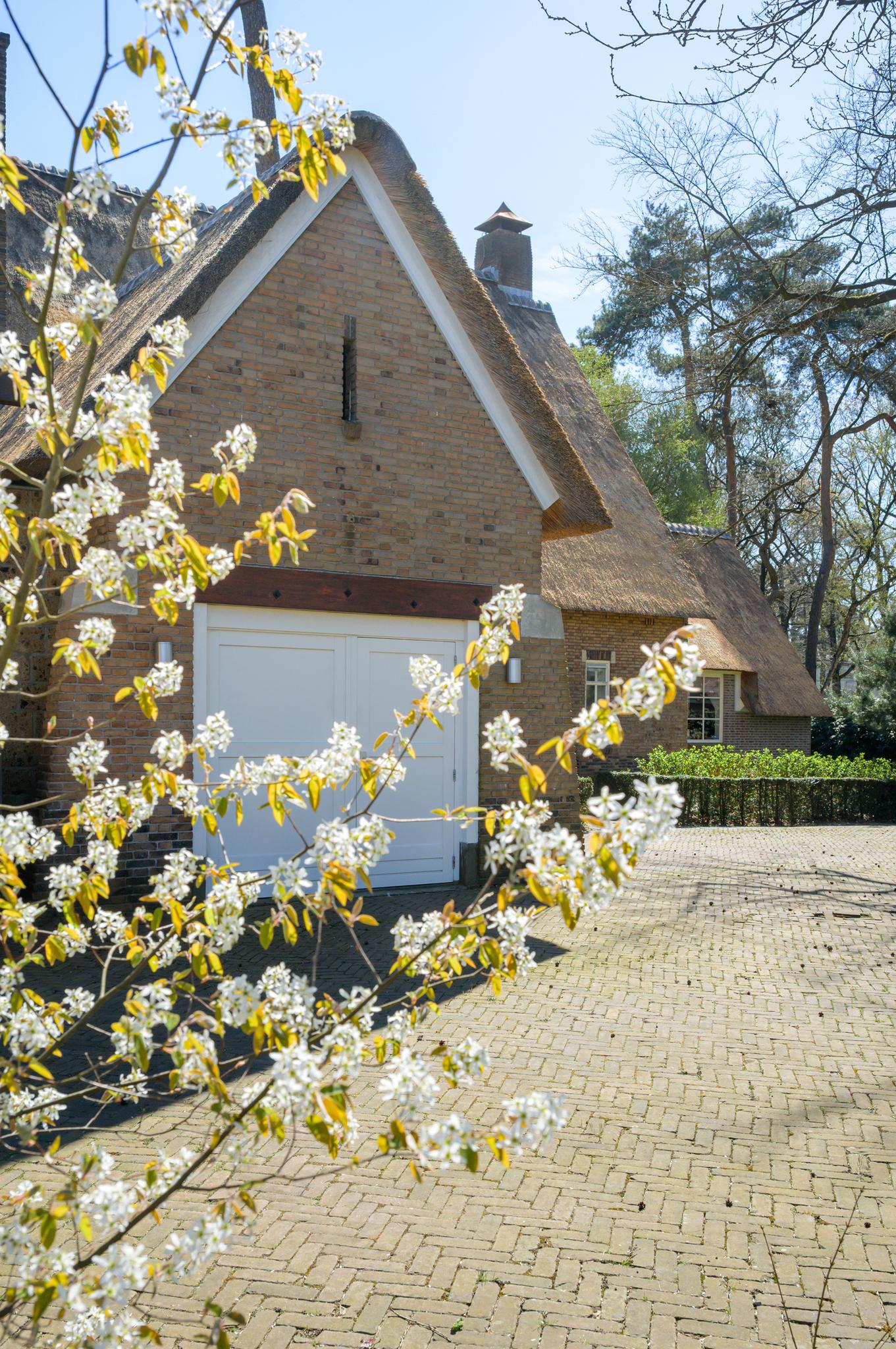 Very unique, perfectly maintained, thatched country house with, among other things, a luxurious wellness area with indoor swimming pool and fantastic outdoor space, situated at a prominent point in the middle of the popular and stately residential area "Ruitersbos" with its beautiful trees and within walking distance of the Mastbos.