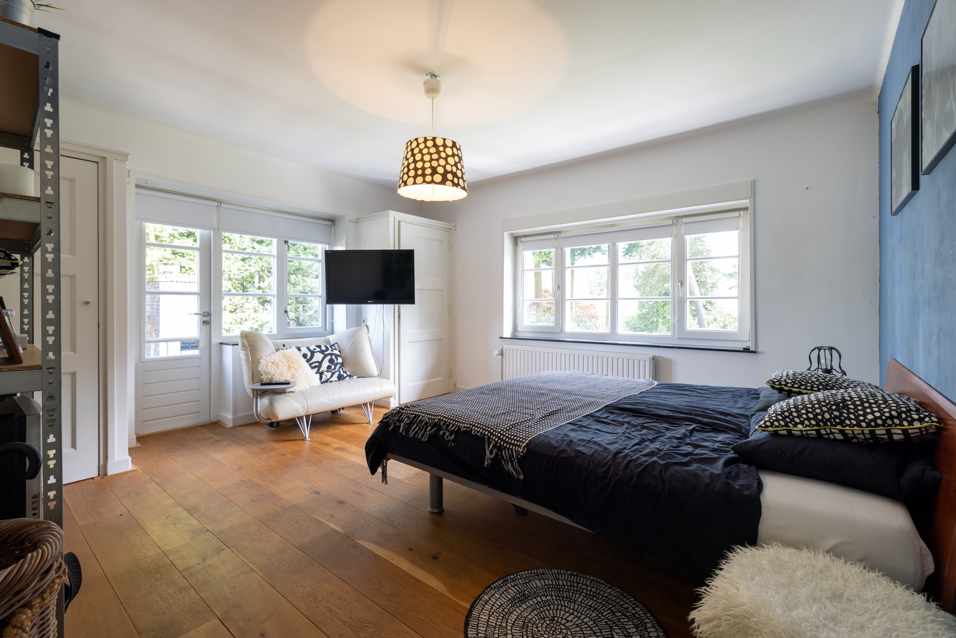 Villa Breda is an expansive country house set on 2,830 m² of wooded land in the stately Ruitersbos district, where privacy meets quiet grandeur. This villa offers 521 m² of living space, seamlessly blending original 1932 details with modern craftsmanship. The thatched roof and stained glass articulate its heritage, while extensive renovations support contemporary comfort.