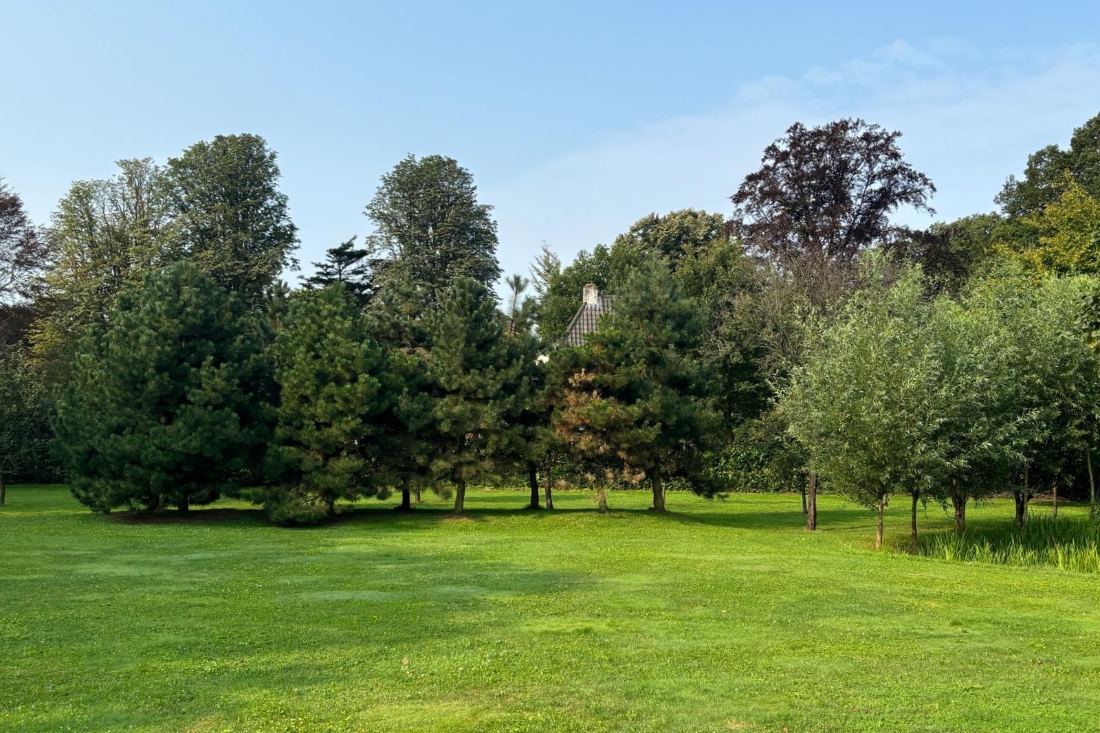 The spacious garden, with adjacent pastureland, offers complete privacy. Behind the house and next to the outbuilding, a stunning veranda has been created—an ideal spot to enjoy the magnificent garden.