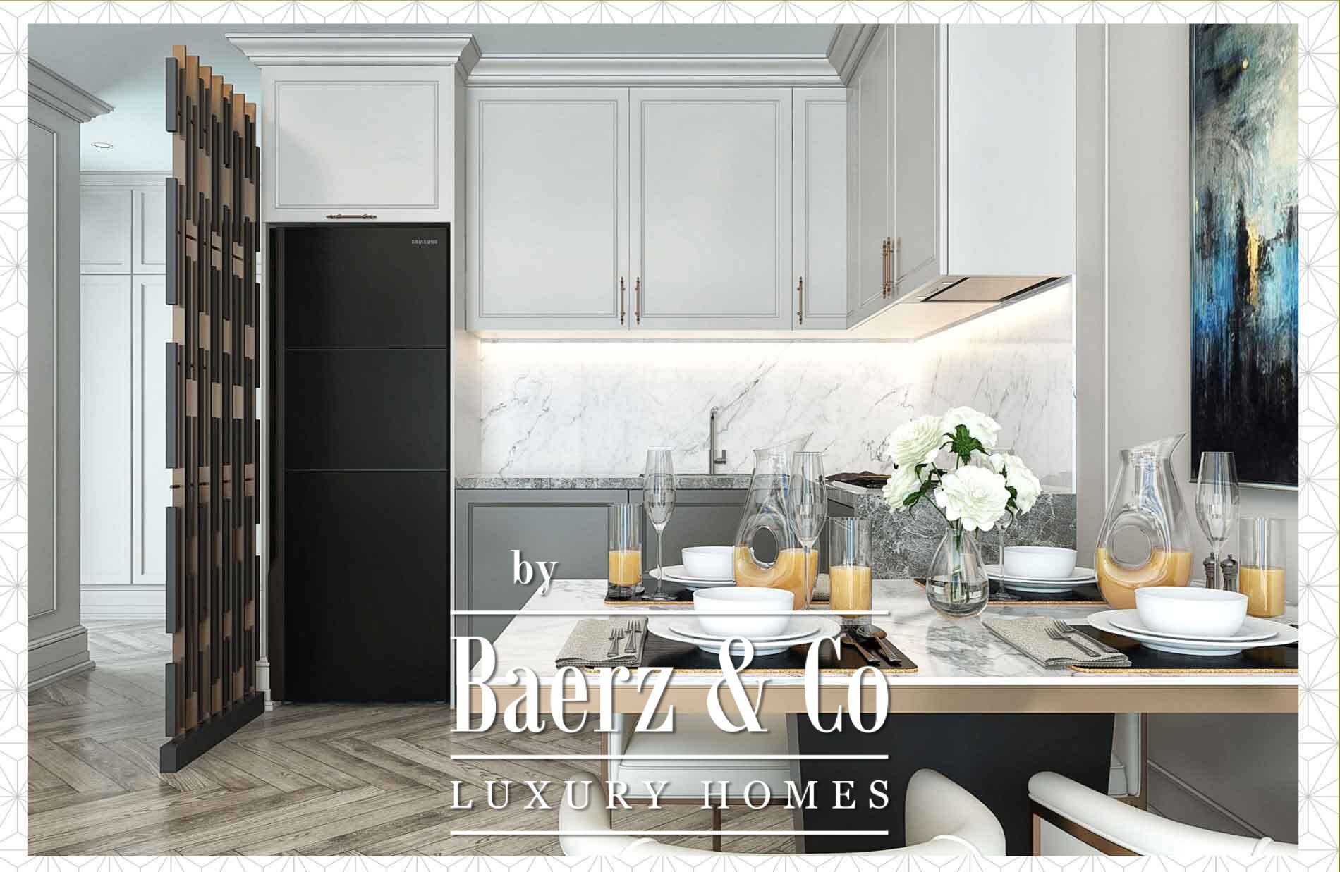 Structure of the apartment: hallway, living room with kitchen and dining table, a bedroom, 2 bathrooms and a terrace. The apartment itself has 79,76m2, while its 3 terraces have 16,49m2. It has a sea view and the view of mountains. It will be delivered with finished floors, finished tiles, equipped bathroom and equipped air conditioning.