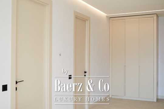 The building showcases ten floors, mountain and sea panoramas, and curated amenities including a wellness spa, swimming pool, fitness center, and 24/7 concierge service. There are two elevators for residents and a car elevator, ensuring comfort and discretion at every turn. The inclusion of a children's playground, sports facilities, and pet spaces adds quiet completeness to daily life. The apartment comes fully furnished except for the dining table and TV, reflecting an attention to high-quality finishes and materials.