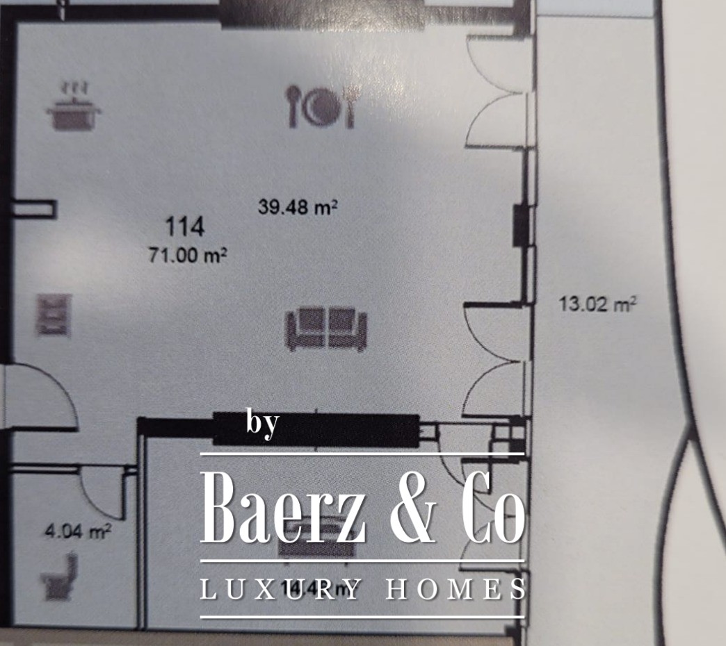 Apartment Budva blends access to the Adriatic with discreet luxury living. This first-floor apartment spans 73m², situated just 300 metres from the sea and nearby beaches. The apartment provides a living room with kitchen and dining area, a bedroom, a bathroom, and a terrace, offering unobstructed views over the sea and surrounding mountains.