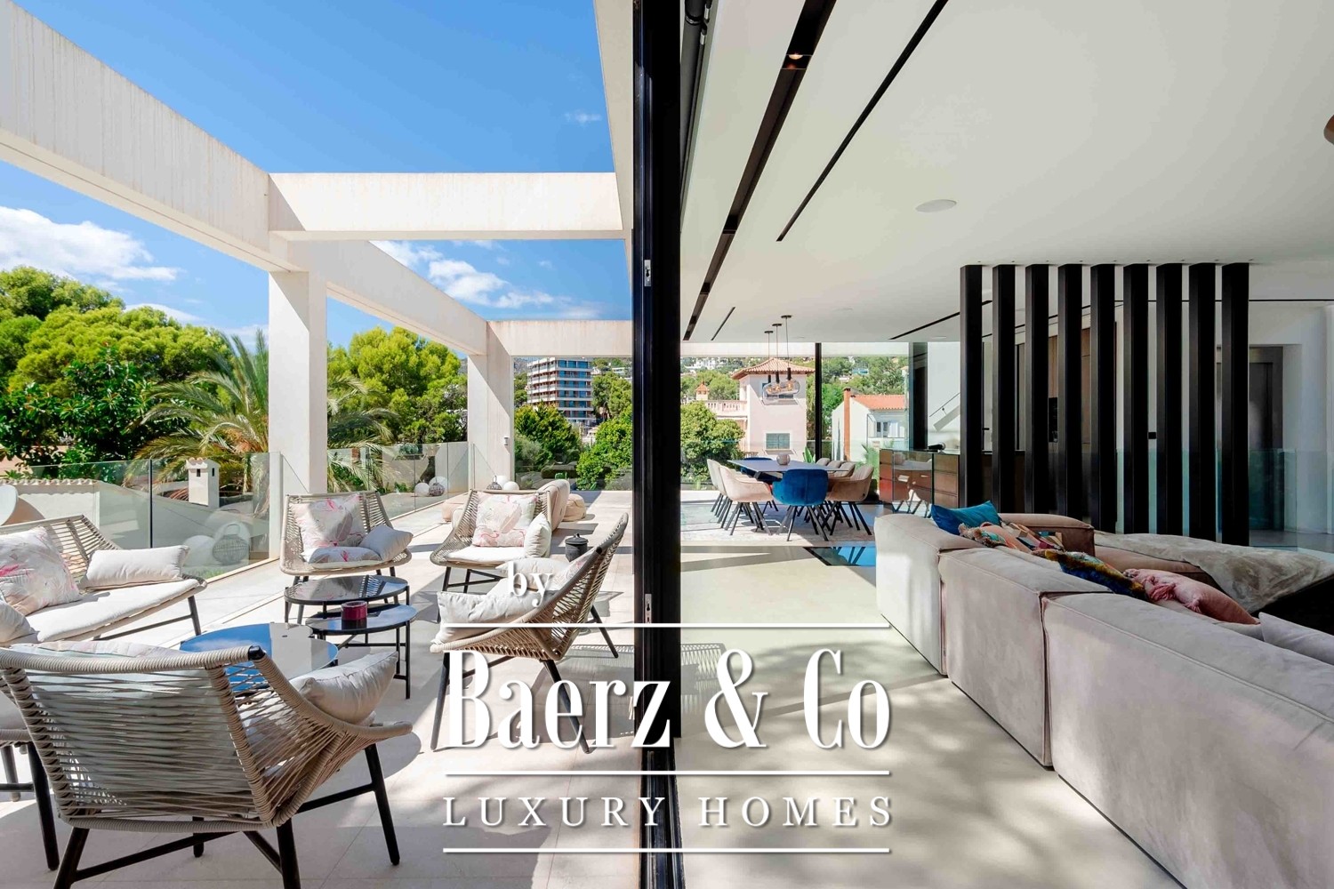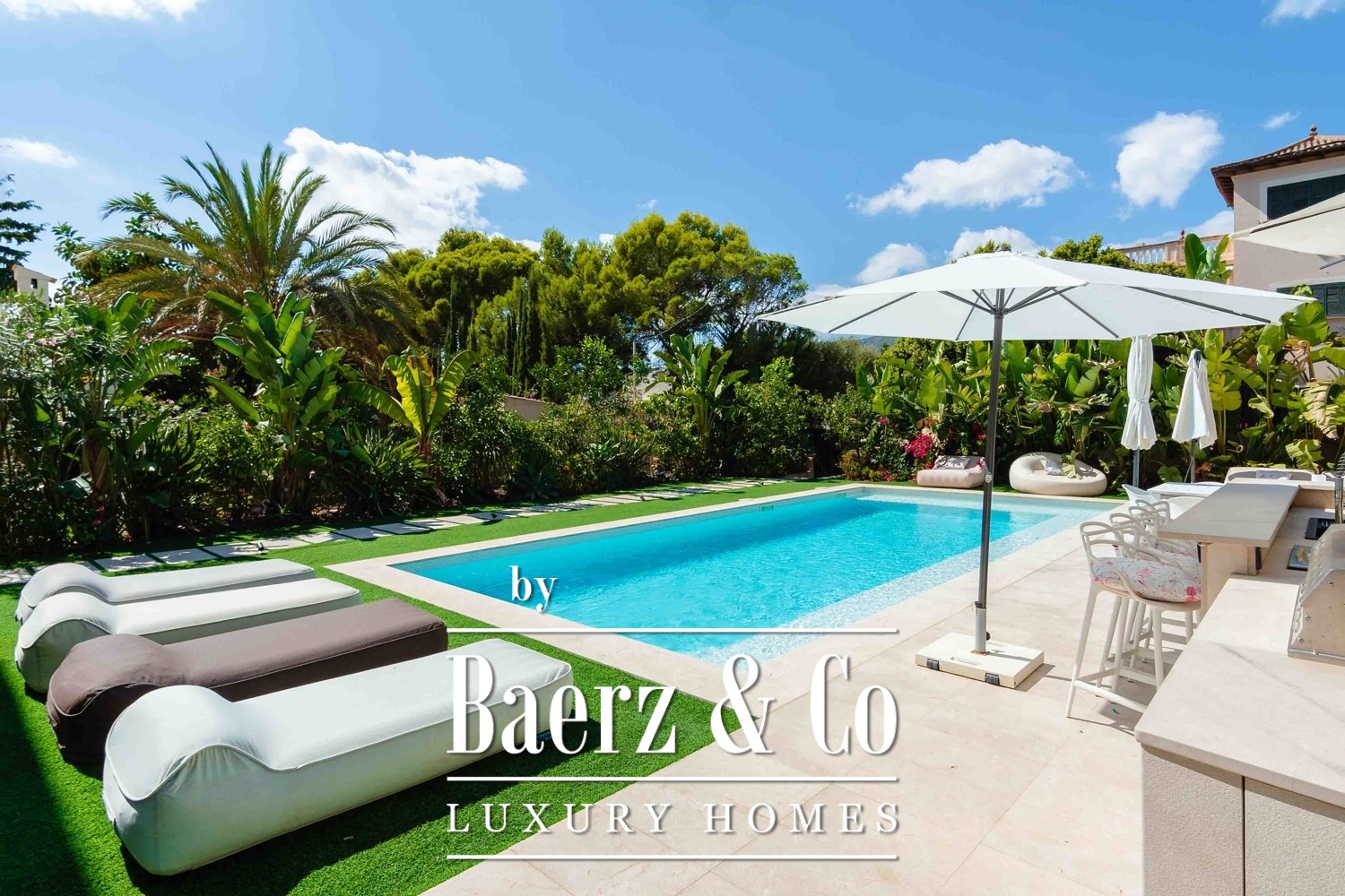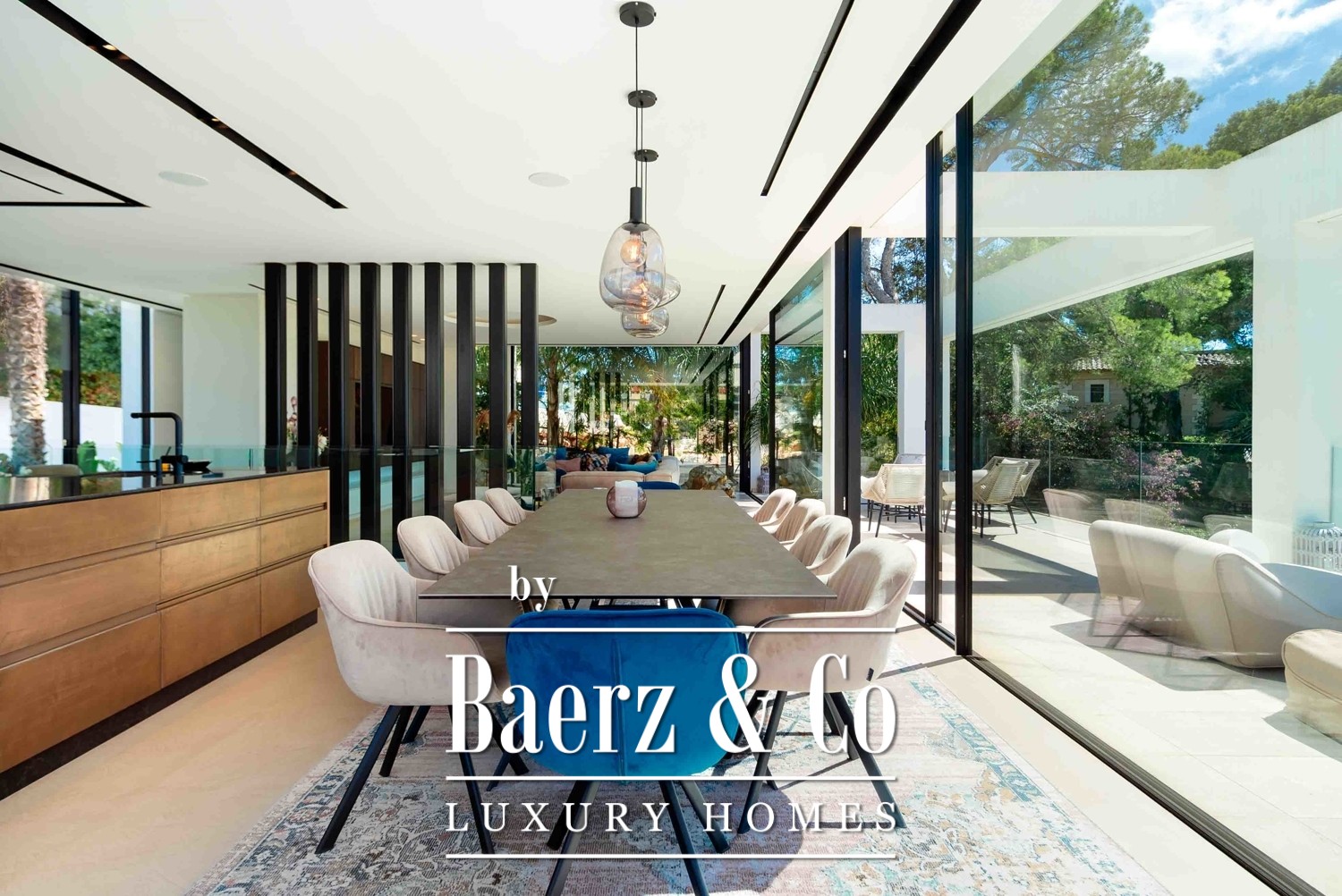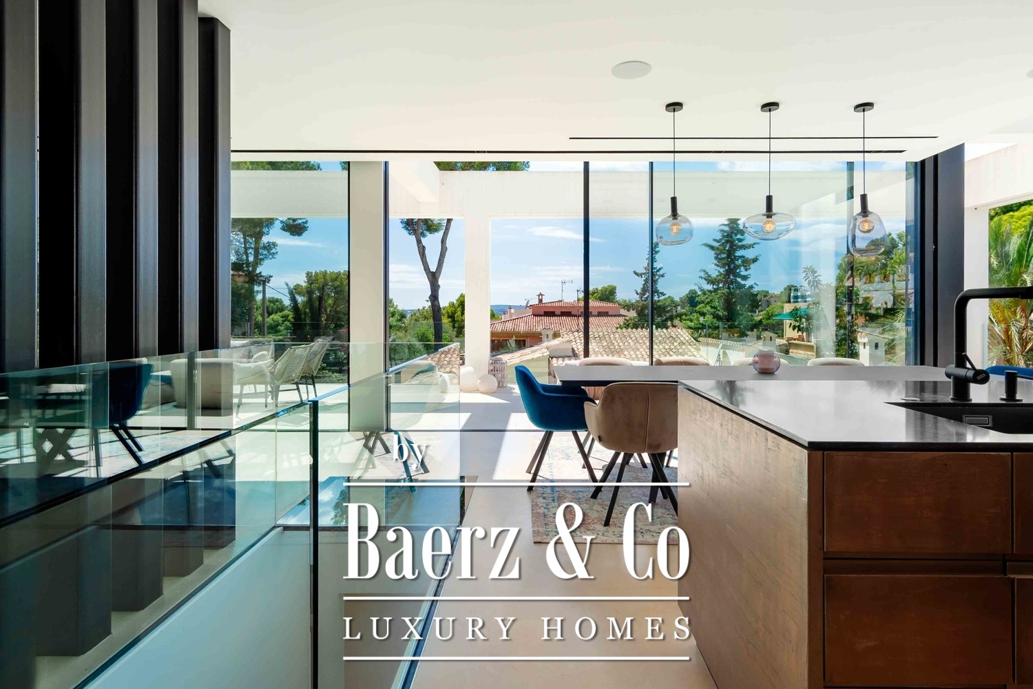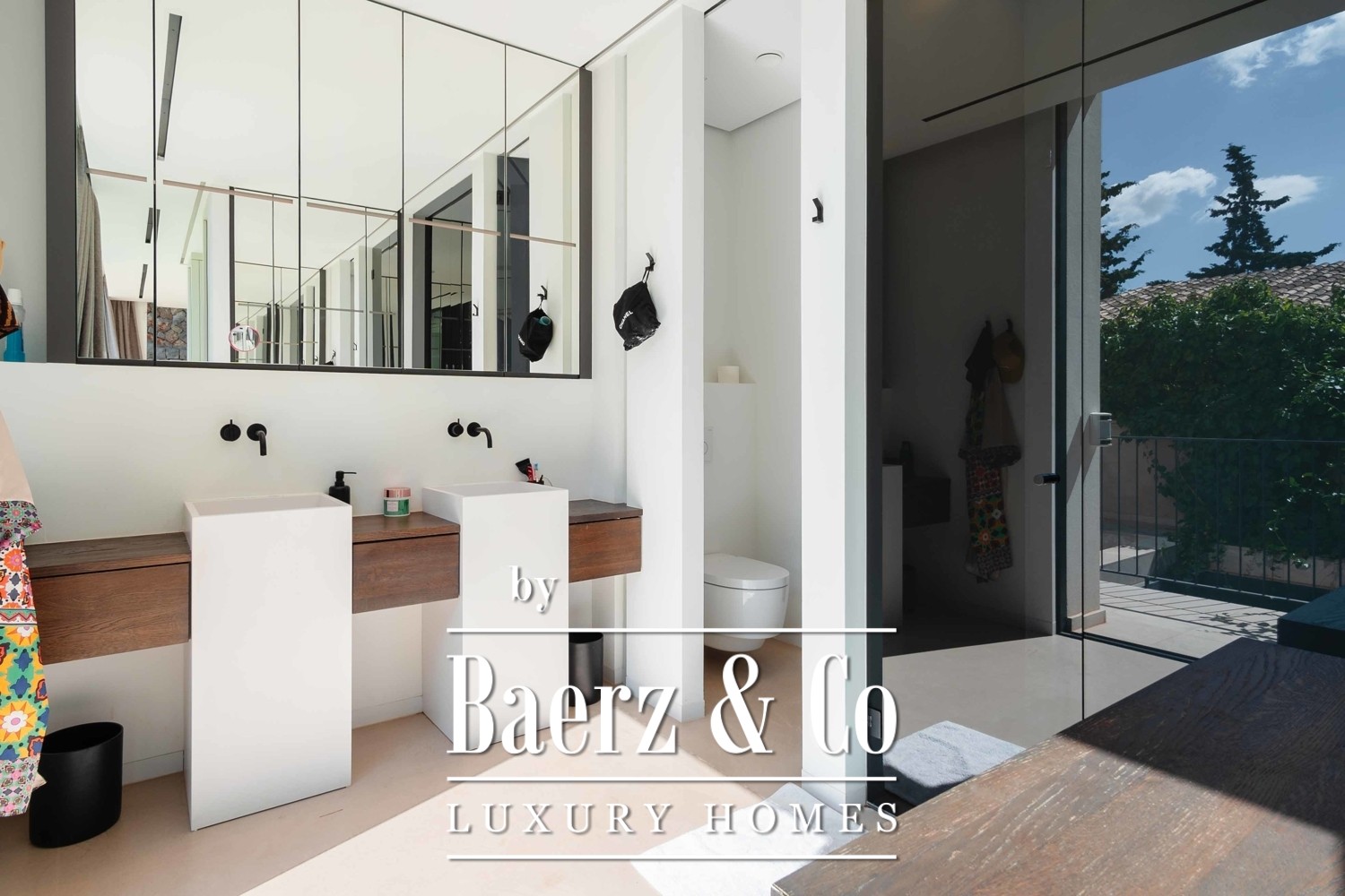 pool and sea view is the perfect place to relax and enjoy the breathtaking surroundings. The villa is designed to perfection and comes equipped with an elevator and constant ambient natural air ventilation, ensuring a comfortable and easy living experience. The KNX house automation system with low voltage. Sonos system in all the house and garden creates a modern and sophisticated ambiance, perfect for the discerning buyer. The villa features five spacious and luxurious bedrooms and four beautifully appointed bathrooms, with three en-suite bathrooms, providing ample space for families or guests. The designer kitchen is a masterpiece of style. Book a viewing with us !