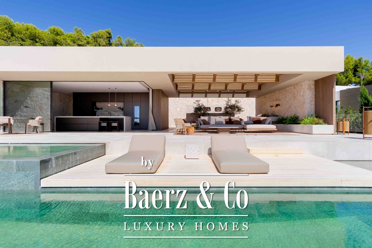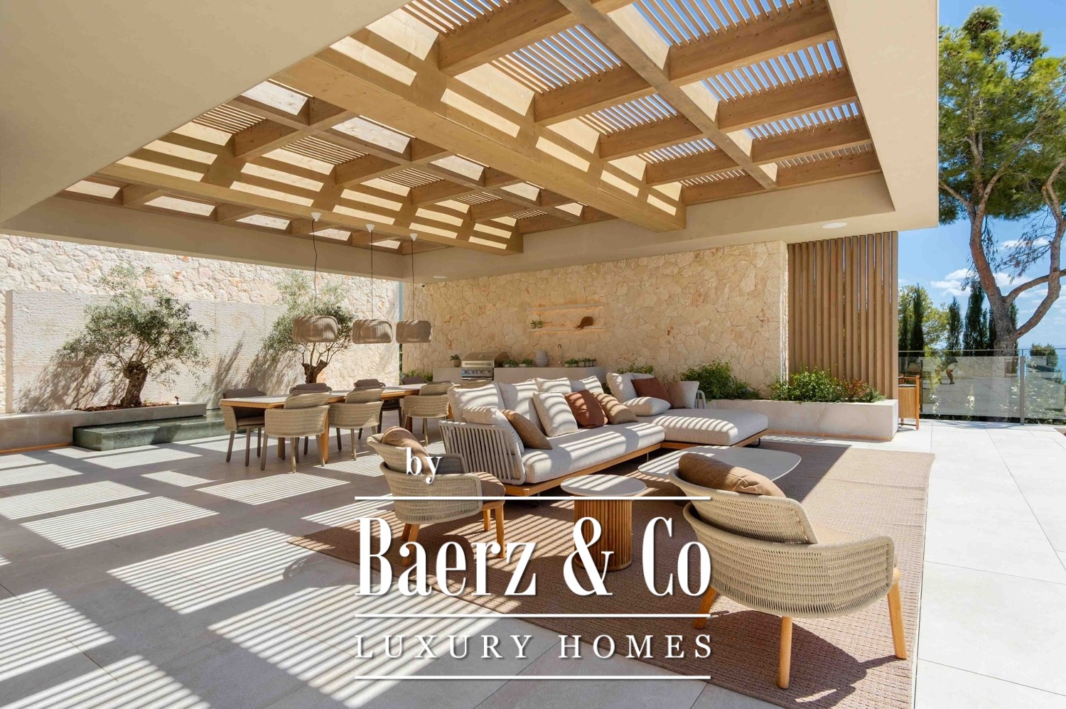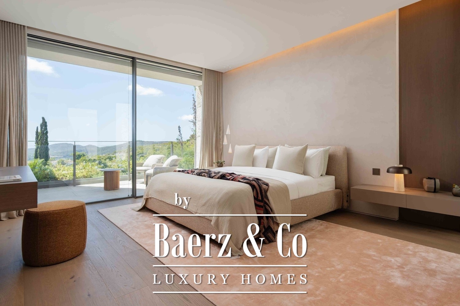 Generous terraces flow outside to two swimming pools, a sculptural fireplace, and carefully arranged dining and lounge areas, ready for moments of celebration or contemplative calm. With air conditioning, extensive terraces, and every detail considered, this property is a rare intersection of Mediterranean ease and sophisticated modern living.