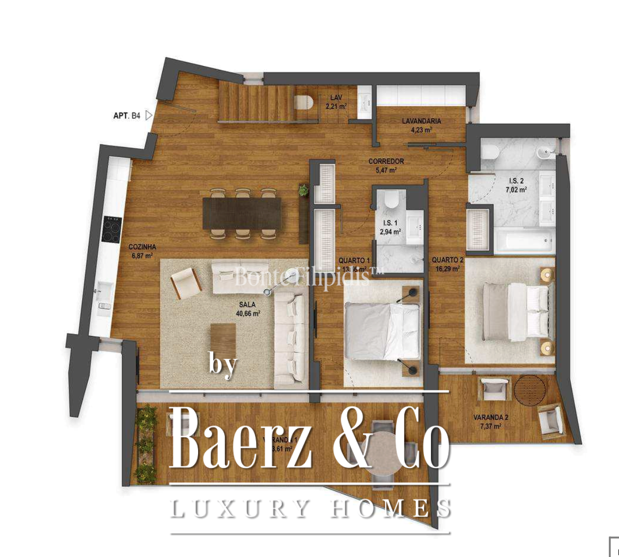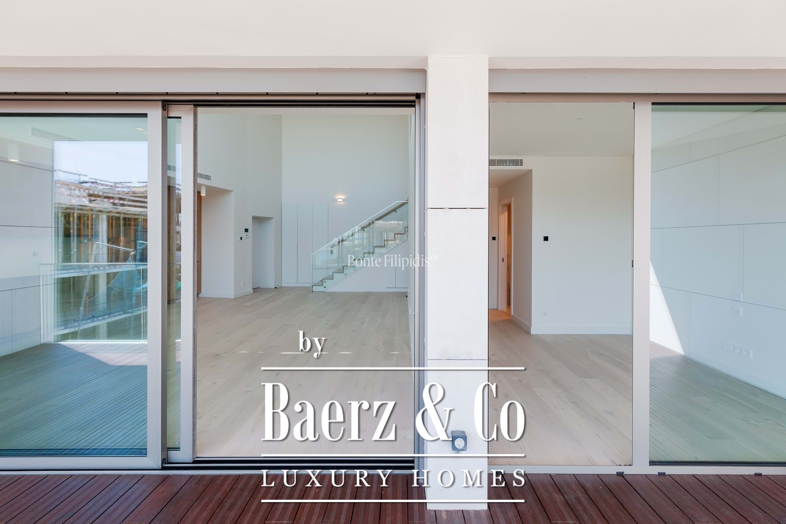 Penthouse Cascais stands at the heart of the city, capturing the rhythm of coastal life within 335 m² of refined living space. This penthouse cascades across two levels, beginning with an open-plan living area where the kitchen meets the lounge, leading seamlessly to a generous terrace designed for indoor-outdoor gatherings. Two en-suite bedrooms open to the terrace, inviting natural light while fostering privacy, complemented by a guest bathroom and laundry room that accentuate the sense of order and ease.