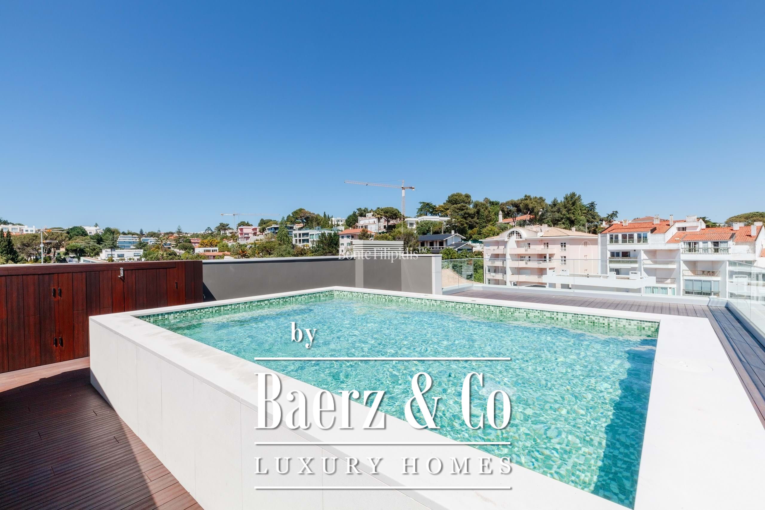 Rising above, the rooftop deck is a secluded haven with a private pool and panoramic sea perspectives. Three parking spaces and a storage room enhance daily convenience. Living here places the vibrancy of Cascais at your doorstep: celebrated restaurants, boutique shops, cultural venues, esteemed schools, and the Atlantic shore all within easy reach. This penthouse is a rare convergence of serenity and centrality for the discerning individual seeking timeless comfort in Cascais.