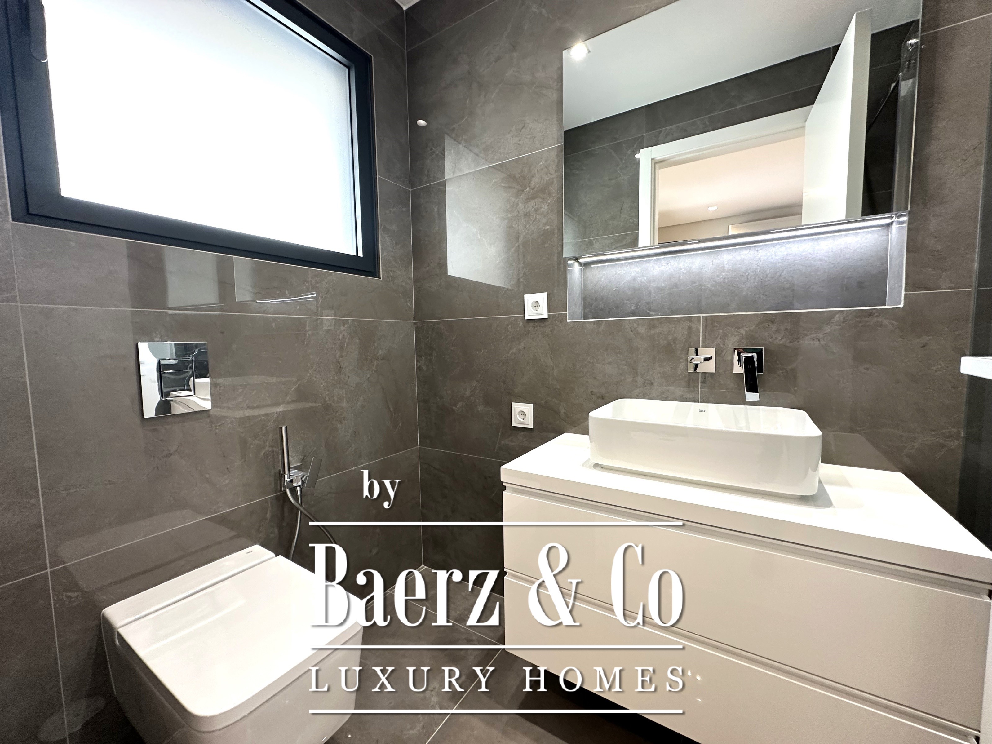 The expansive main level accommodates a 62 m² open living and kitchen area, suffused with natural light. Each of the four bedrooms is appointed as a suite, three on the ground floor ranging from 12 m² to 27 m², thoughtfully designed for comfort and flexibility. The absence of built-in wardrobes invites bespoke solutions, allowing the living space to adapt to individual requirements. On the upper level, a private 106 m² terrace offers a setting for outdoor leisure and panoramic views, complemented by an additional technical area.