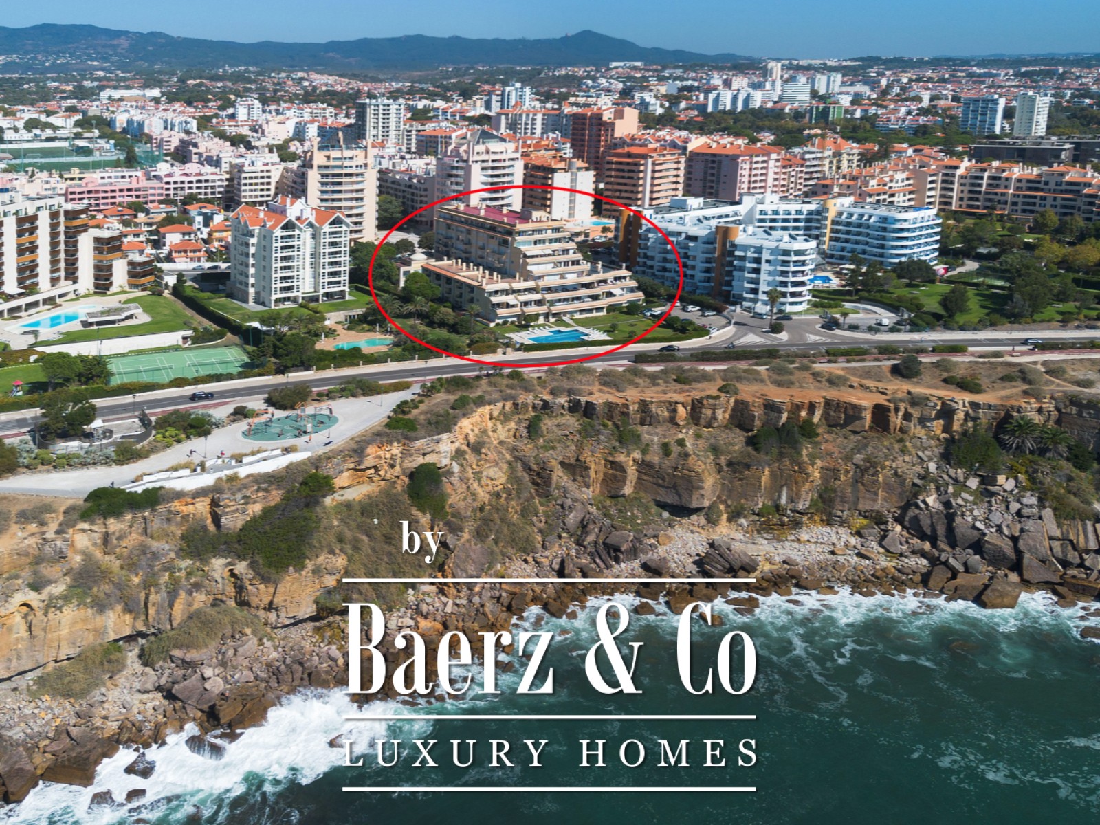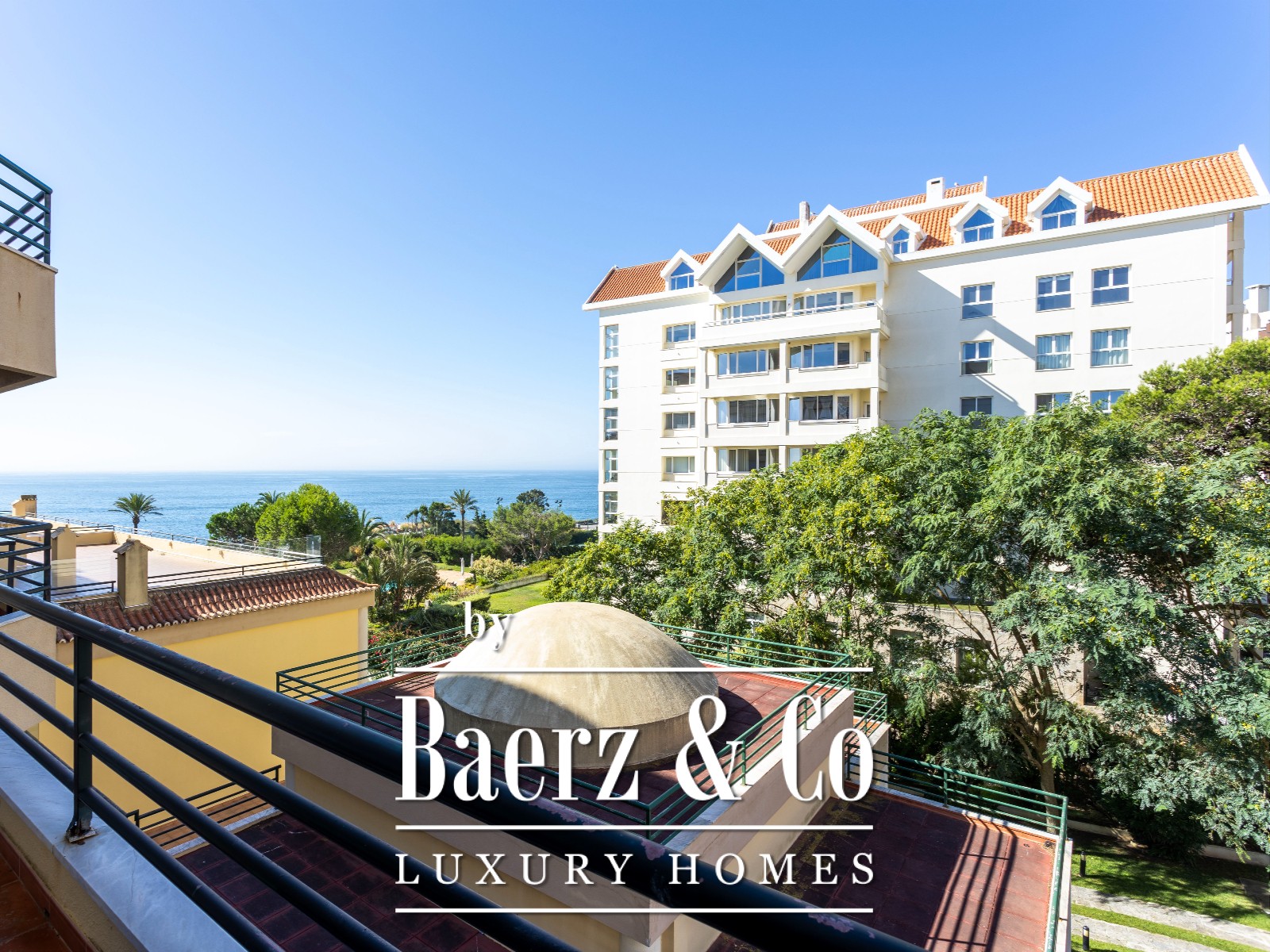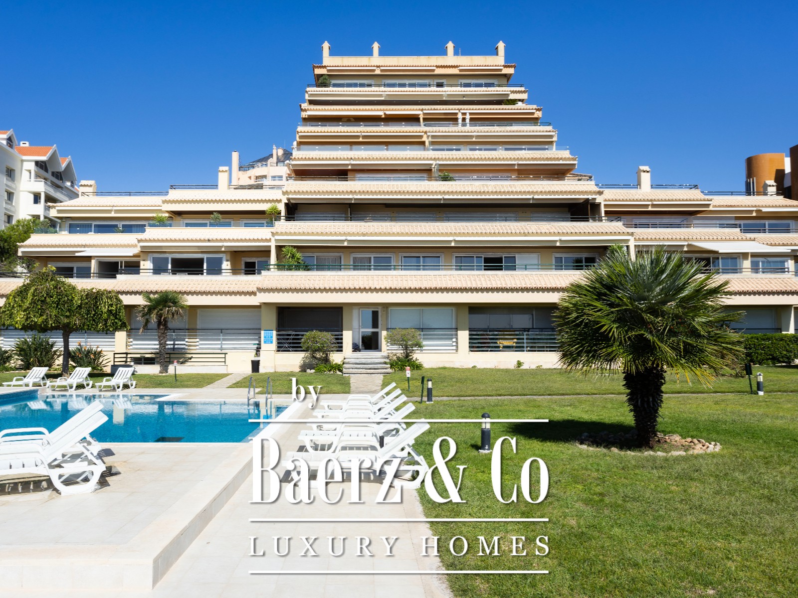 This seafront apartment Cascais is positioned within a private condominium on the famed Costa da Guia, capturing panoramic sea views in every room. The 142 m² living space is defined by a calm, light-filled atmosphere and a floor plan that embraces both comfort and exclusivity. The west-facing living room creates an inviting space for quiet evenings or refined gatherings. The property includes two bedrooms: one generous suite with built-in wardrobes and a remodeled bathroom, and a second bedroom, both carefully articulated to frame the ocean beyond.