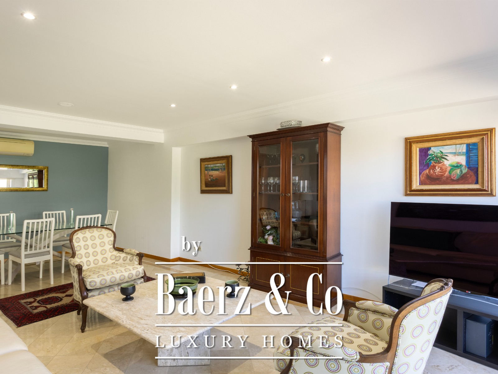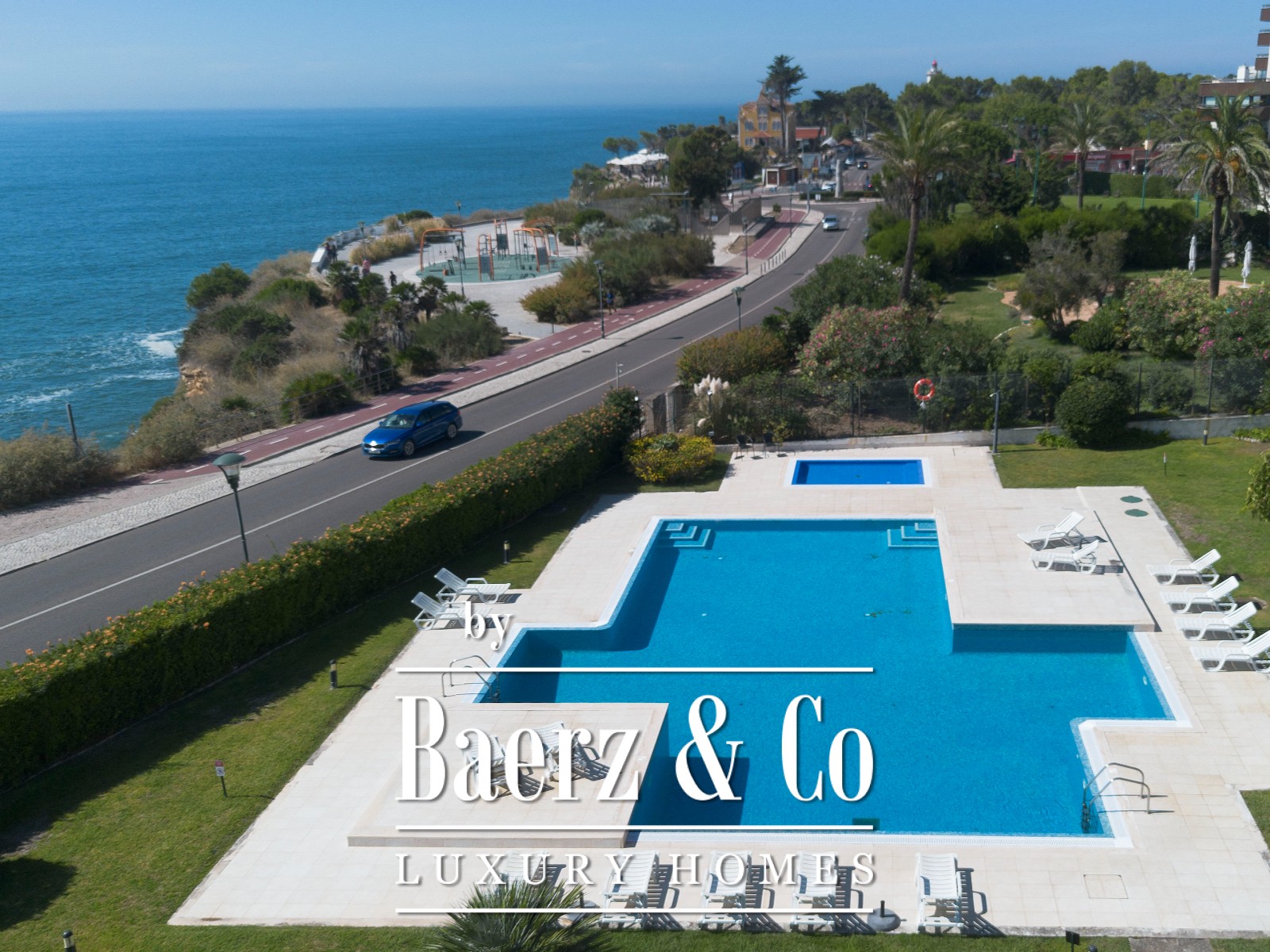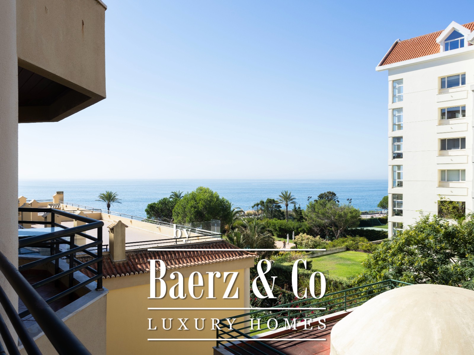 This seafront apartment Cascais is positioned within a private condominium on the famed Costa da Guia, capturing panoramic sea views in every room. The 142 m² living space is defined by a calm, light-filled atmosphere and a floor plan that embraces both comfort and exclusivity. The west-facing living room creates an inviting space for quiet evenings or refined gatherings. The property includes two bedrooms: one generous suite with built-in wardrobes and a remodeled bathroom, and a second bedroom, both carefully articulated to frame the ocean beyond.