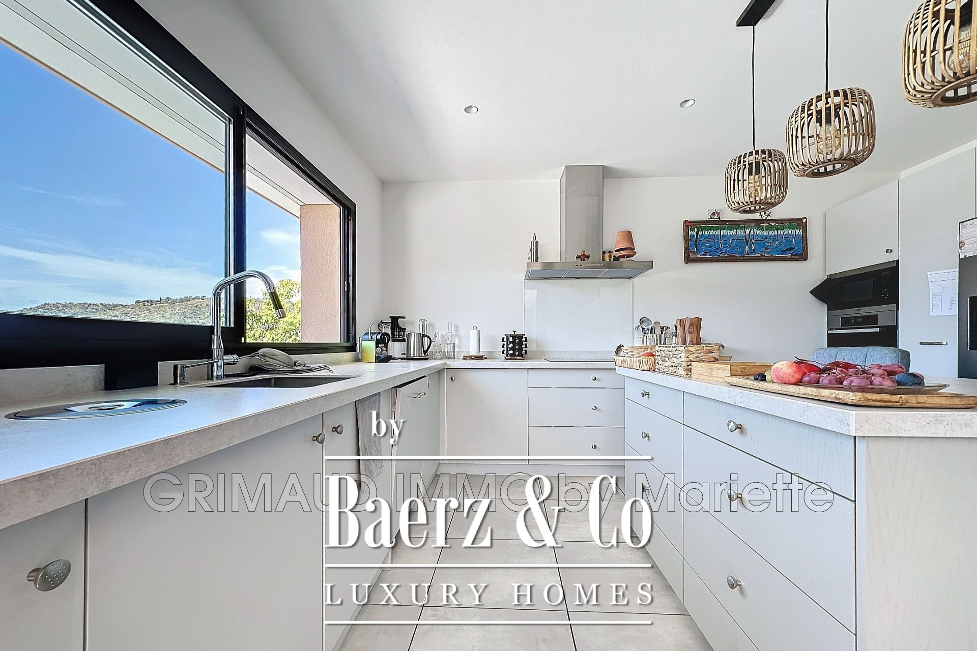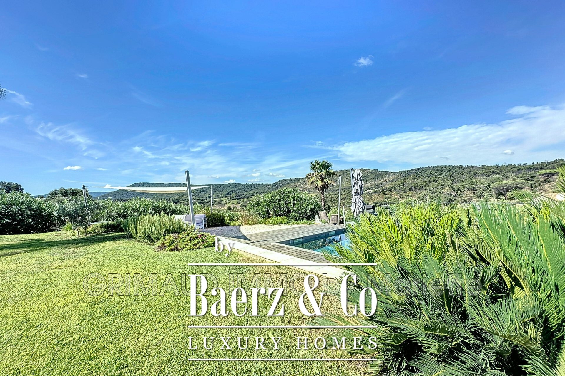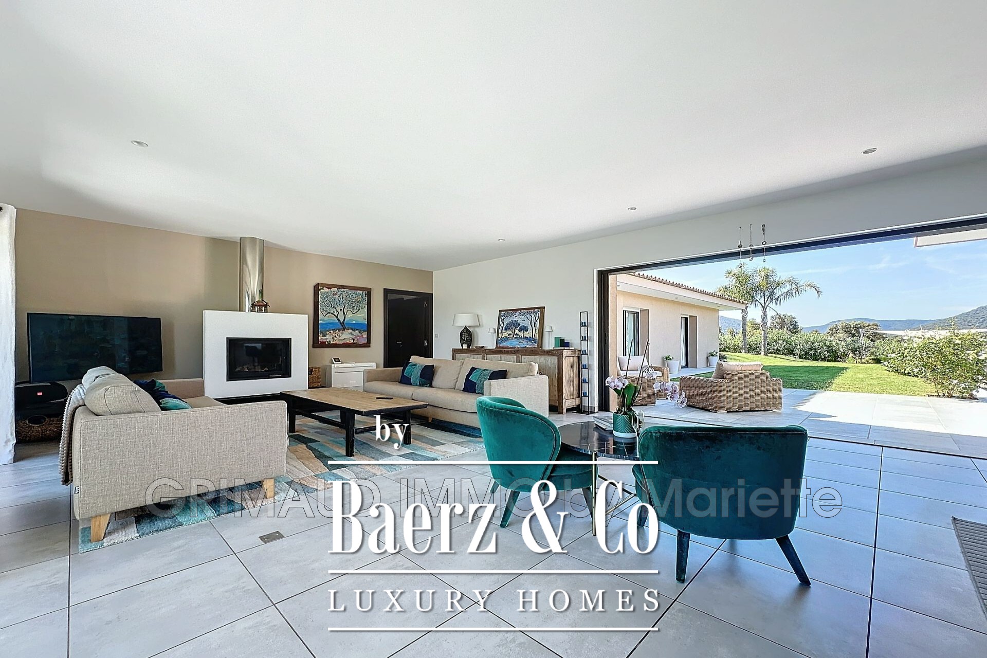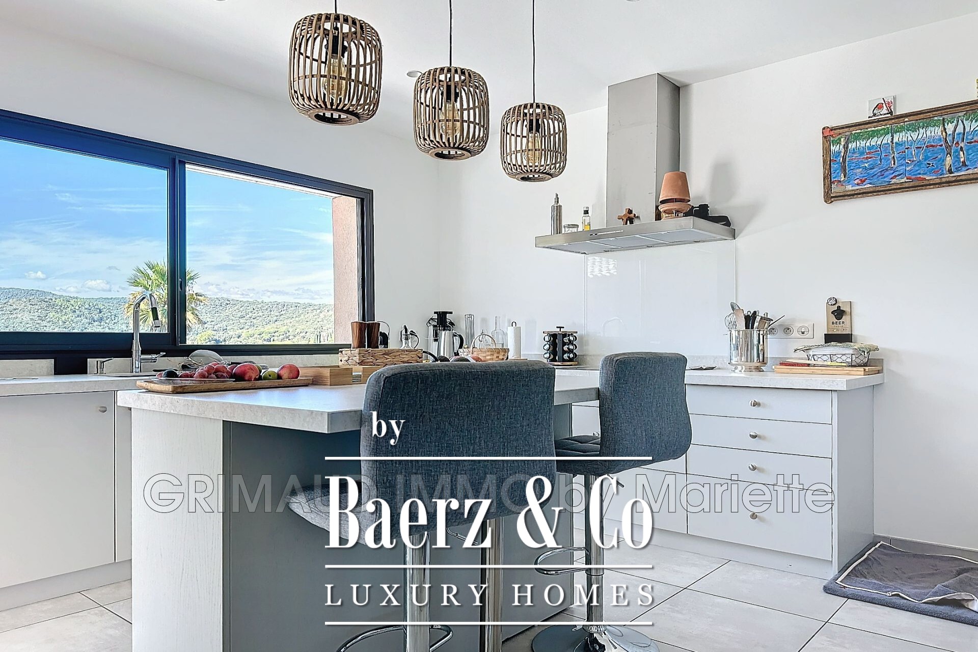 This contemporary villa Cogolin offers a calm vantage point over the surrounding hills, countryside, and expansive vineyards. The property rests within a private, secure domain on 1,600 m² of enclosed land, presenting a rare sense of privacy and peace. Refined proportions unfold across 180 m², with an interior marked by clean lines and generous volumes. The main living and dining area flows intuitively to an open, fully fitted kitchen, connecting social and private spaces. Windows frame natural light and landscape, drawing the rural setting inside.