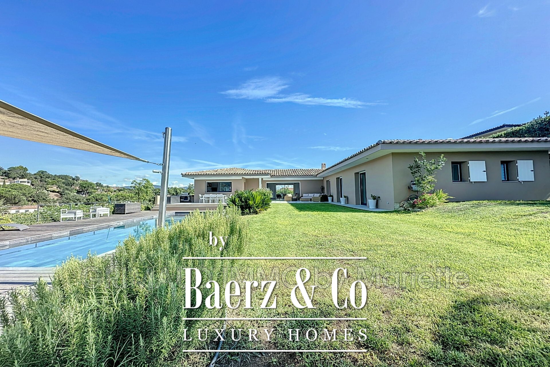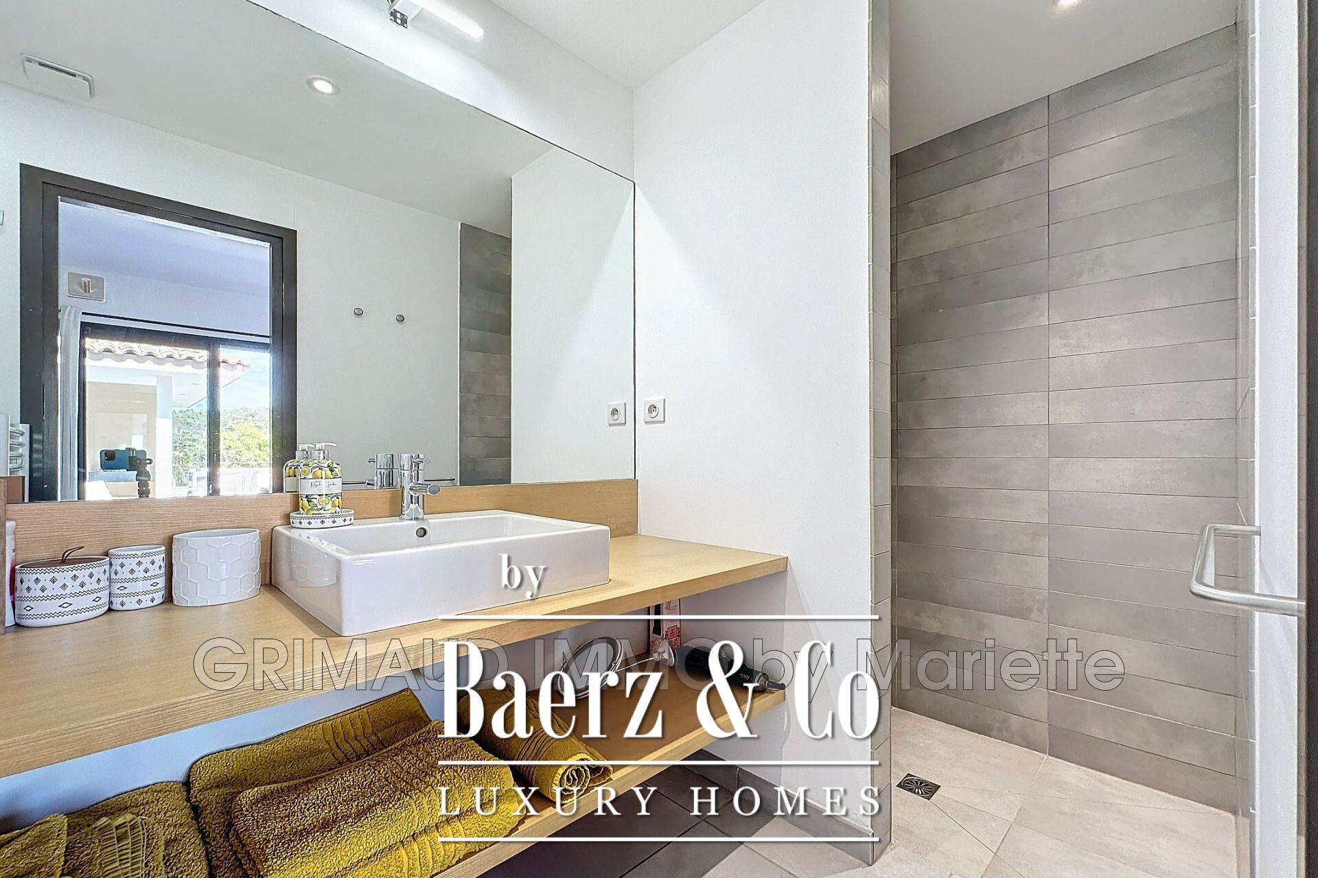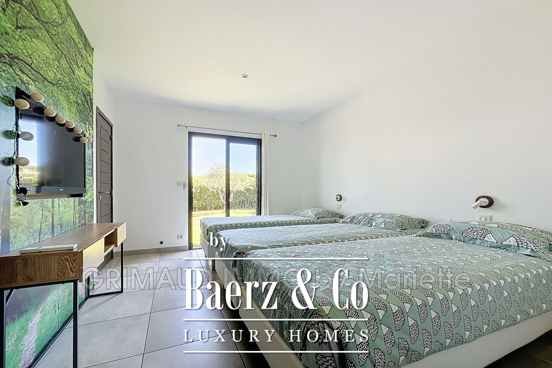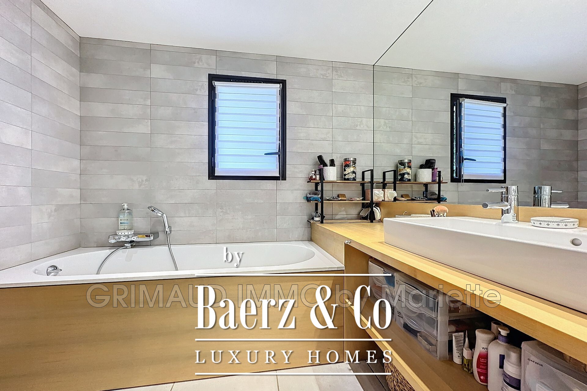 This contemporary villa Cogolin offers a calm vantage point over the surrounding hills, countryside, and expansive vineyards. The property rests within a private, secure domain on 1,600 m² of enclosed land, presenting a rare sense of privacy and peace. Refined proportions unfold across 180 m², with an interior marked by clean lines and generous volumes. The main living and dining area flows intuitively to an open, fully fitted kitchen, connecting social and private spaces. Windows frame natural light and landscape, drawing the rural setting inside.