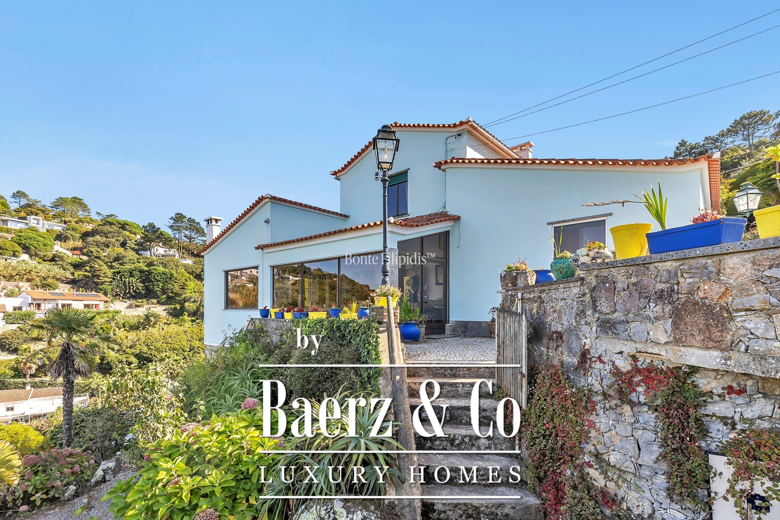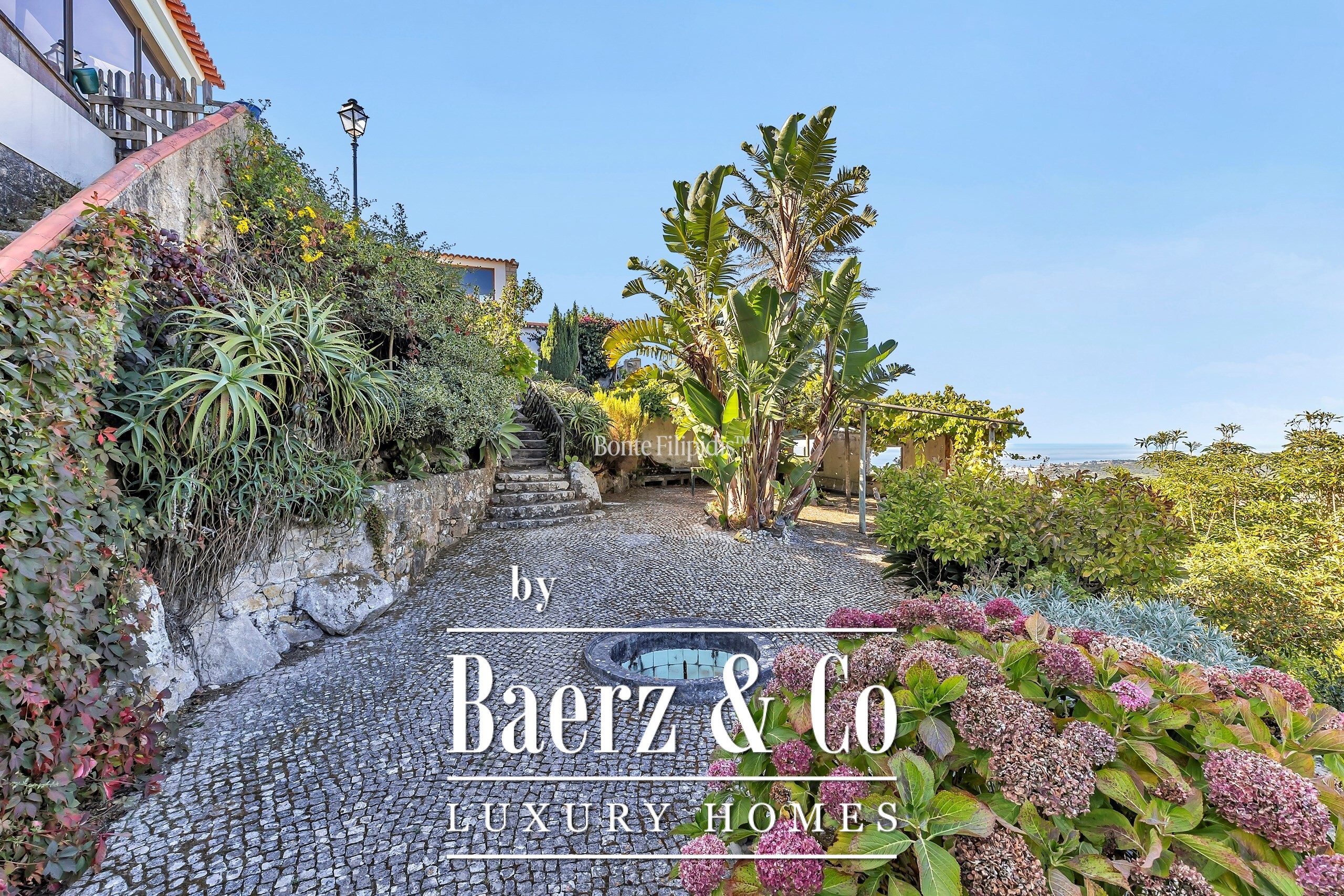 A fully equipped guest house, with independent entrance, extends the villa’s capacity for privacy and hospitality. The grounds, landscaped for relaxation, benefit from open sea, mountain, and village views. The setting is calm yet connected, with local amenities, restaurants, golf, and schools nearby, and swift access to Praia das Maçãs, Adraga, Praia Grande, and both Sintra and Cascais.