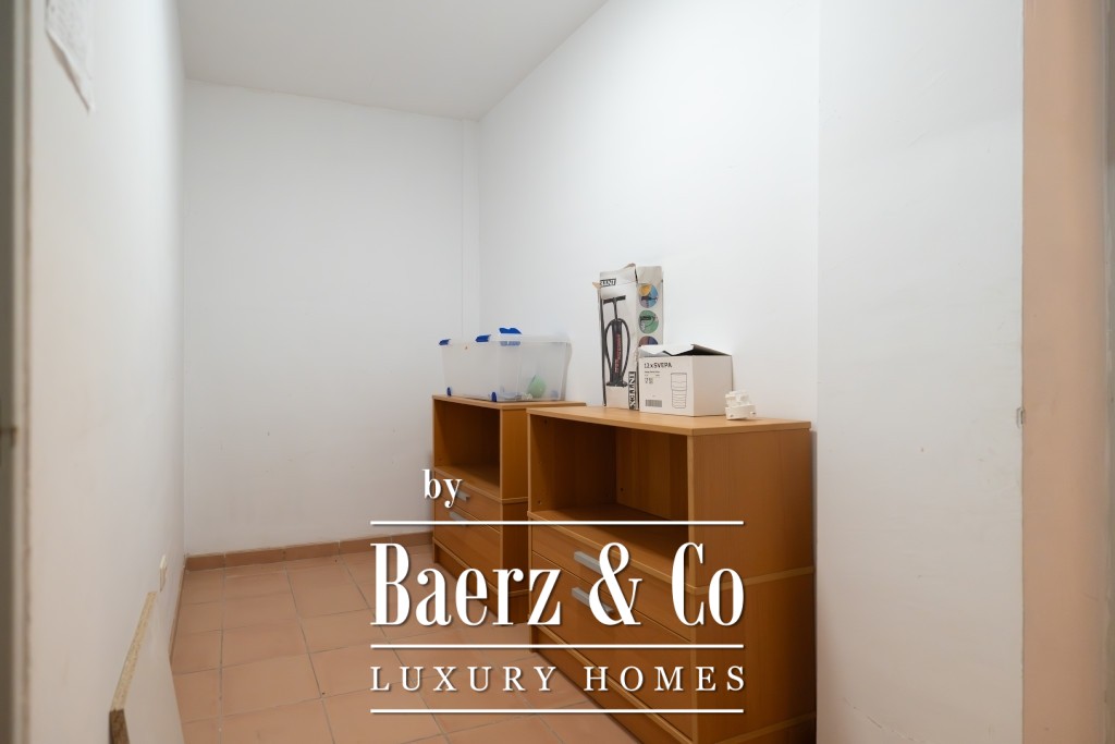 Below, a 77 m² basement accommodates a private garage for two to three cars, a storage room, and further storage under the stairs. Residents benefit from two communal swimming pools, one heated, enveloped by calm and well-kept green zones. Community fees are set at €265 per month, with IBI tax at €925 per year, affirming the villa’s rare combination of access, discretion, and ease.