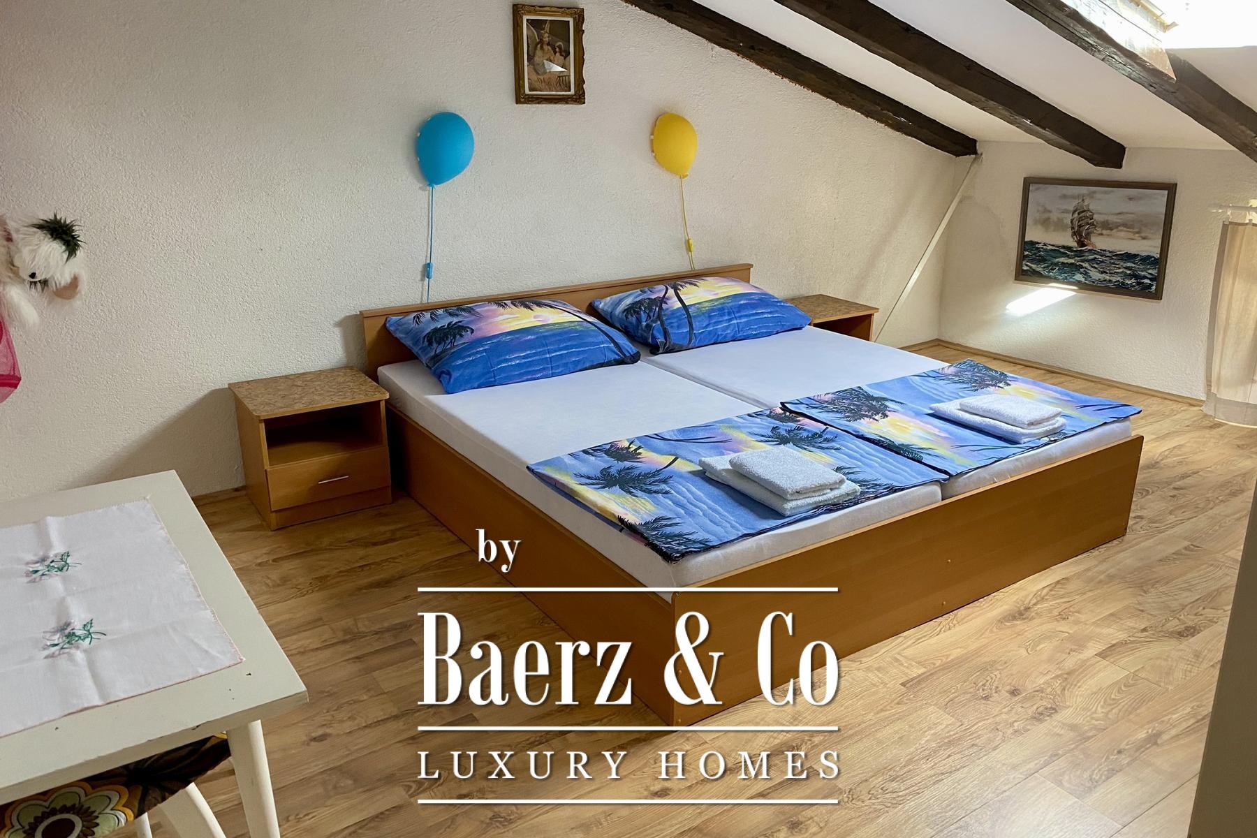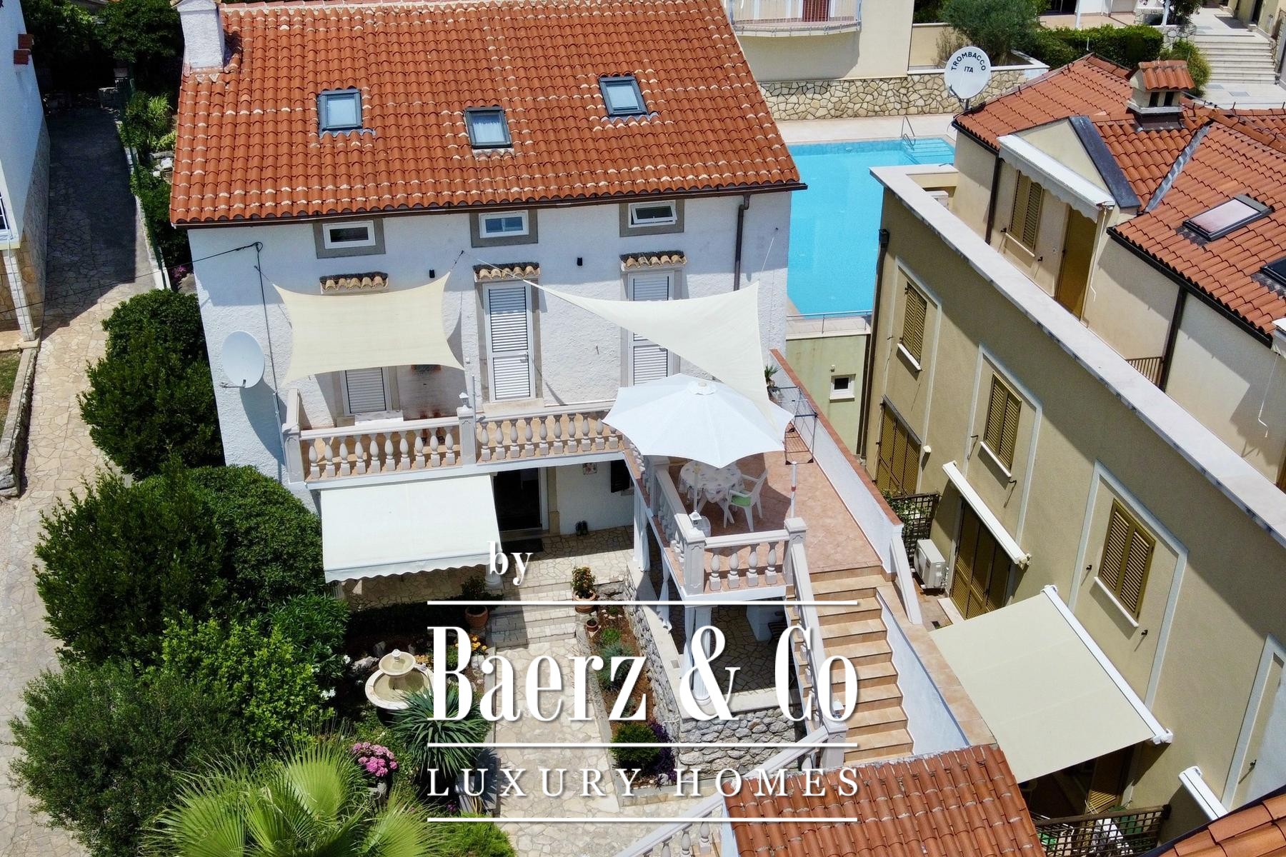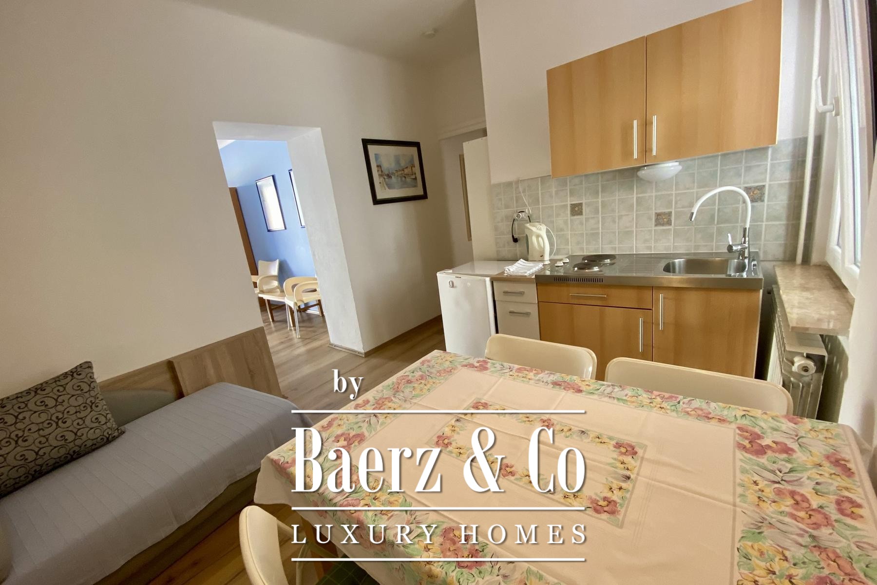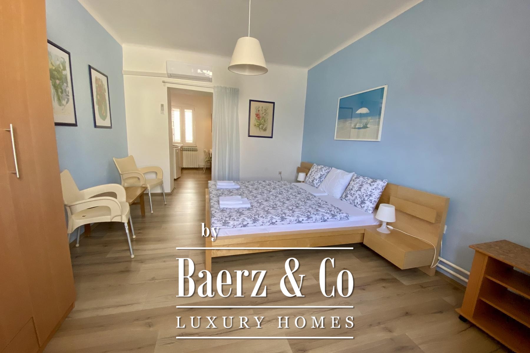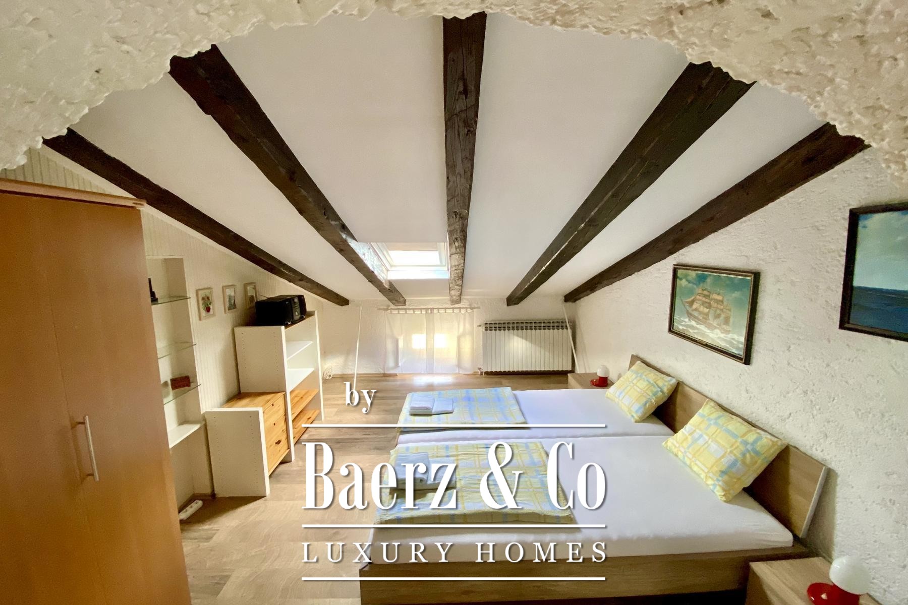 Town of Cres, City Center - Detached House First Row to the Sea, with Open Views of the Harbor and Just 25 Meters from the Shore.Located on a 416 m² plot, this property offers a perfect blend of a central town location and complete private comfort.With a total living area of 257 m² spread over three floors, the house is divided into four separate residential units. The layout provides ideal conditions for peaceful family living, while also offering excellent potential for tourist rentals, as each unit has its own entrance, kitchen, and bathroom.On the ground floor, there is a spacious apartment with direct access to a landscaped terrace and backyard - ideal for everyday living or as the main residence for the owners. The first floor features two charming one-bedroom apartments, each with a private entrance, while the attic houses a large three-bedroom apartment with open views of the sea and the town. Each floor is bathed in natural light, and several terraces and balconies offer enchanting views of the Cres harbor and the Mediterranean surroundings.Originally built around 1940, the house underwent a thorough renovation