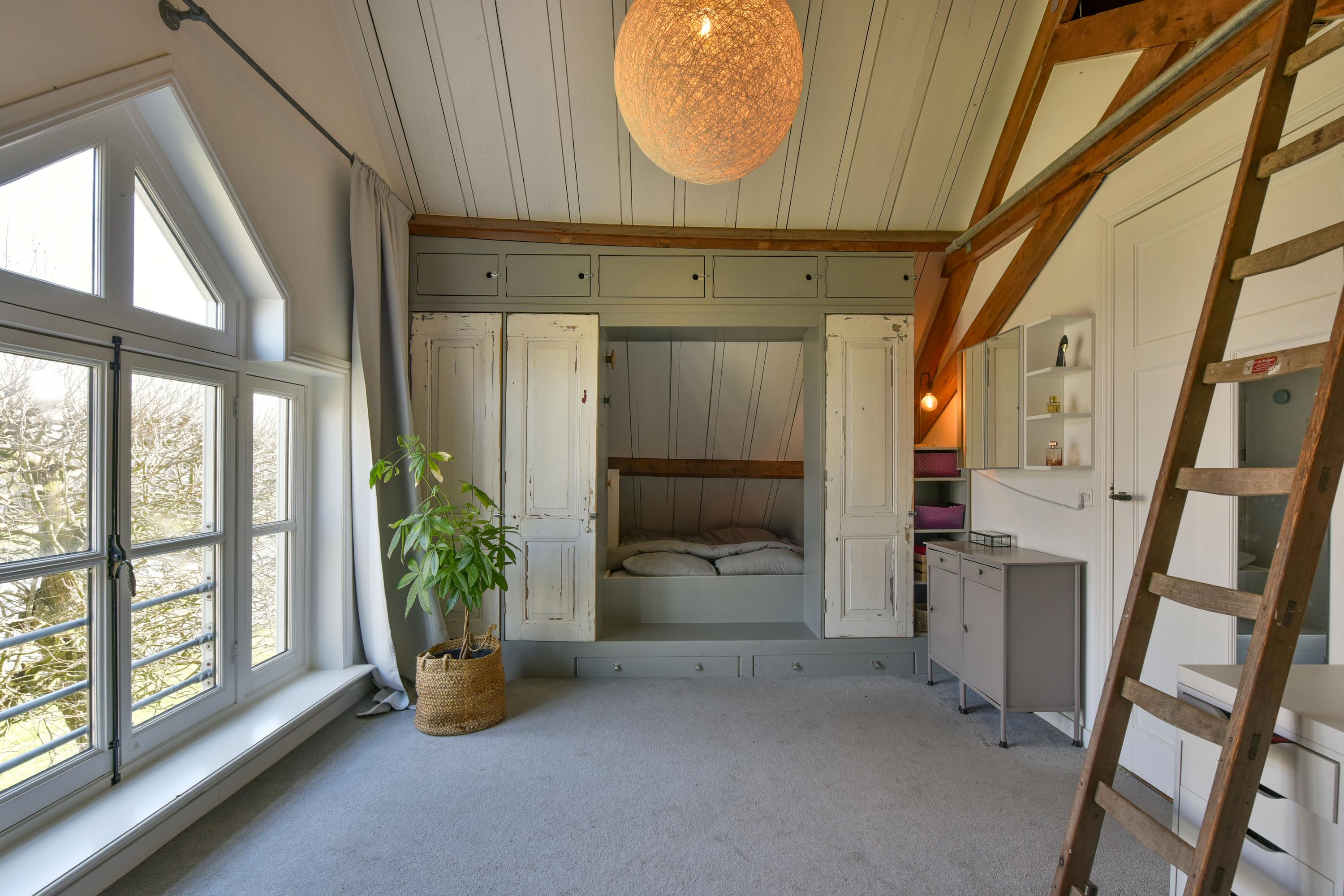 Another bedroom with dormer window features a custom wardrobe – a work of art in itself, designed by artist Daan van den Berg. This room combines practical use with artistic flair.