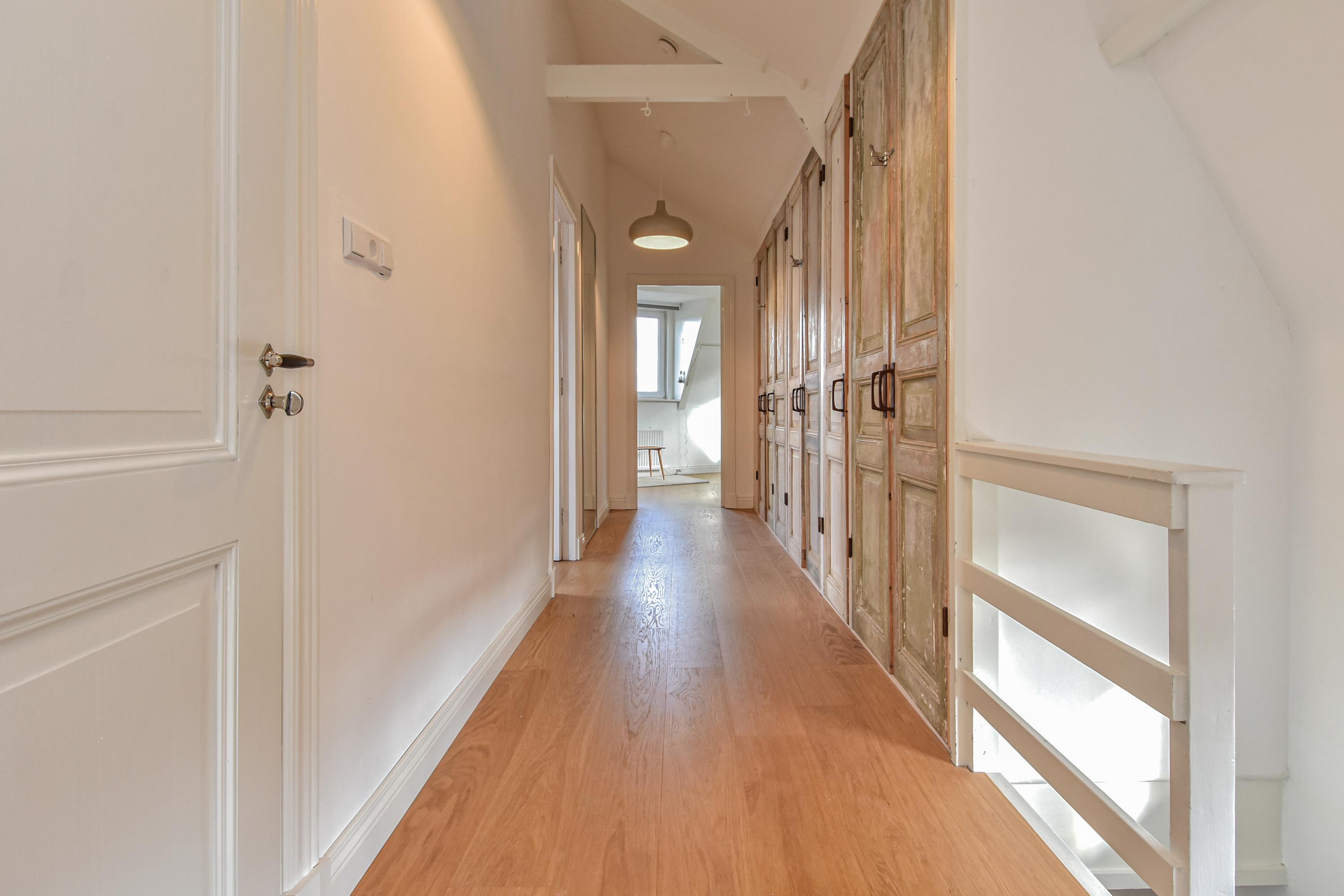 The second floor is surprisingly spacious. A long hallway with built-in cupboards and characteristic antique doors provides access to 3 more bedrooms. At the front, there is a large room with a skylight, dormer window, and open roof where the original beam structure is visible. The second bedroom features a tall dormer with an authentic hoisting beam, while at the rear there is another pleasant bedroom with dormer and skylight, offering views of Delft’s church towers. The luxurious bathroom is fully equipped with a bathtub, walk-in shower, fourth toilet, designer washbasin unit, and towel radiator.