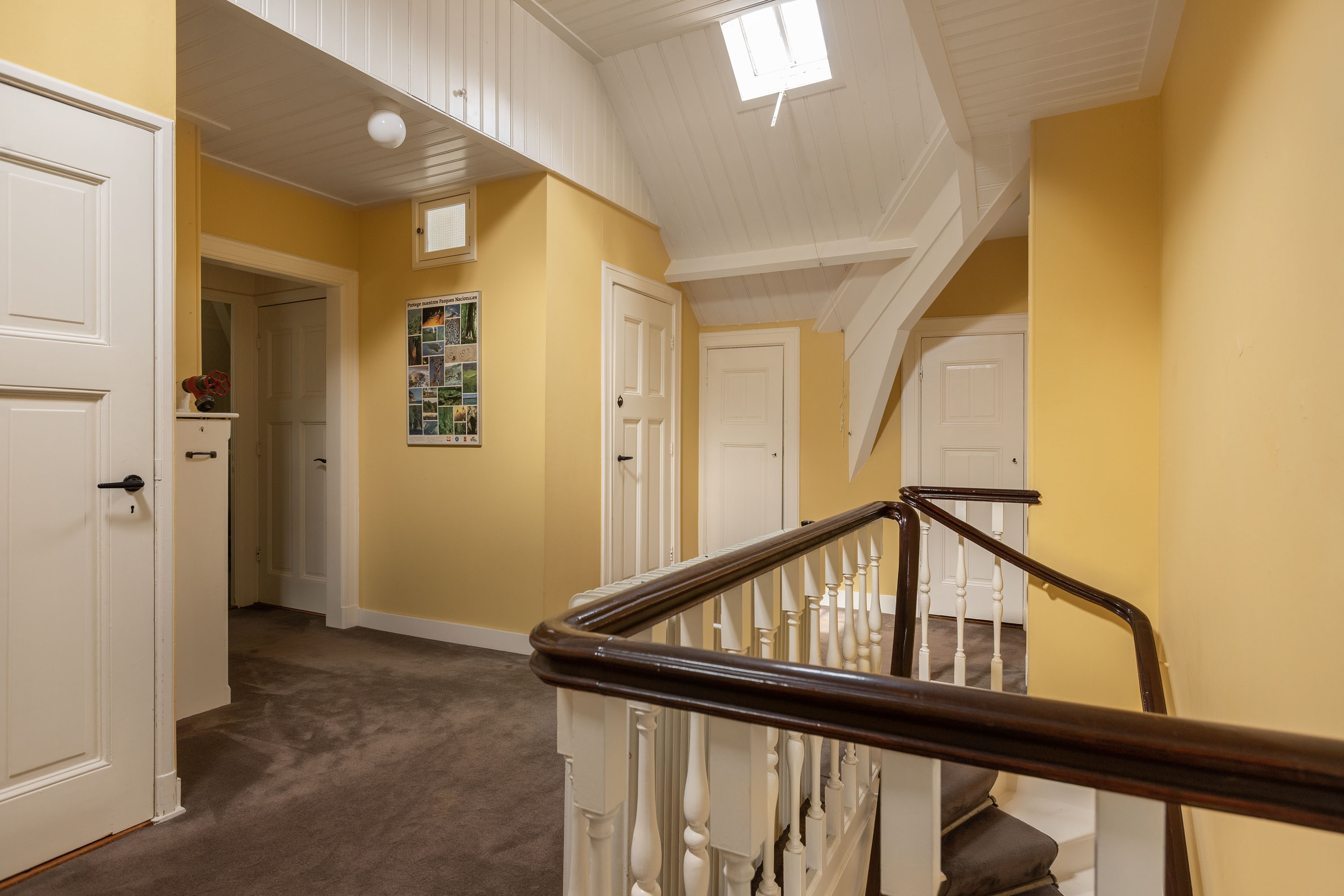 The villa’s architecture honours its origins, maintaining original terrazzo floors, parquet, built-in cabinetry and extensive stained glass. Seven bedrooms and two bathrooms are arranged to balance family life and privacy. Carefully preserved features are complemented by discreet upgrades, including a modern pellet stove and heat pump system, secondary glazing, cavity walls and a fully insulated roof.