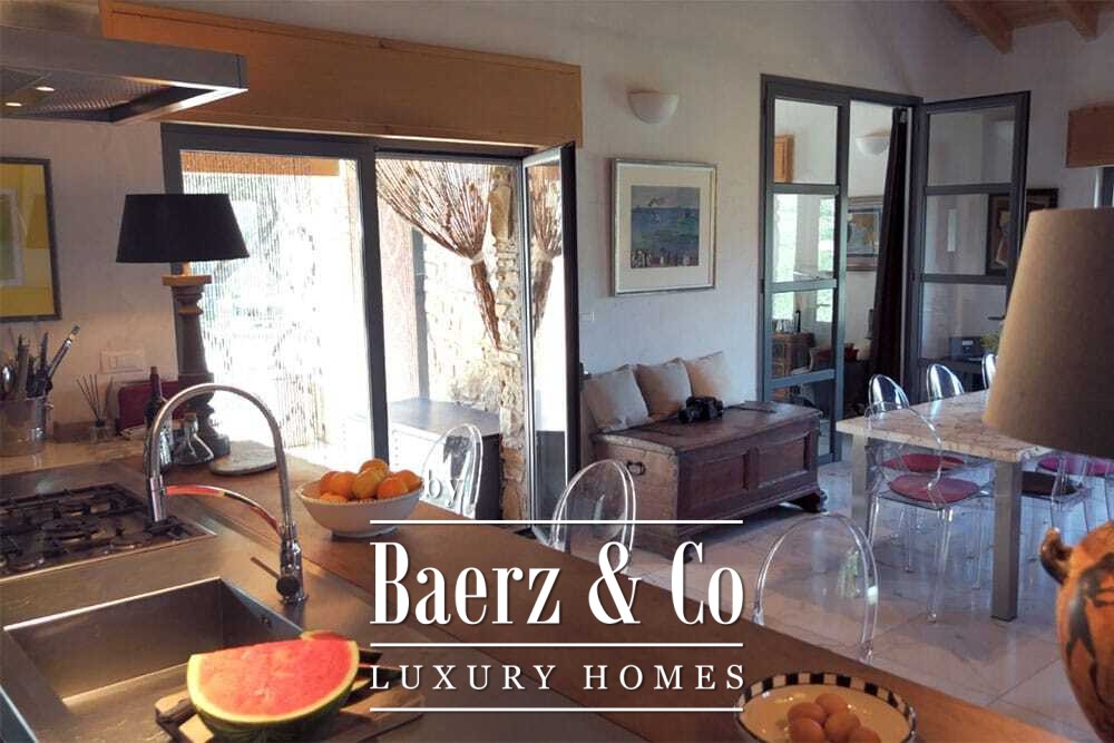 The 11 by 4 metre swimming pool, fully renovated in 2022, lies next to an expansive terrace, offering views over the valley and out to the sea. Multiple terraces, outdoor kitchens, and shaded pergolas invite relaxed dining through all seasons. Paths around the house are lined with olive groves, with hours of sun ensuring exceptional harvests.