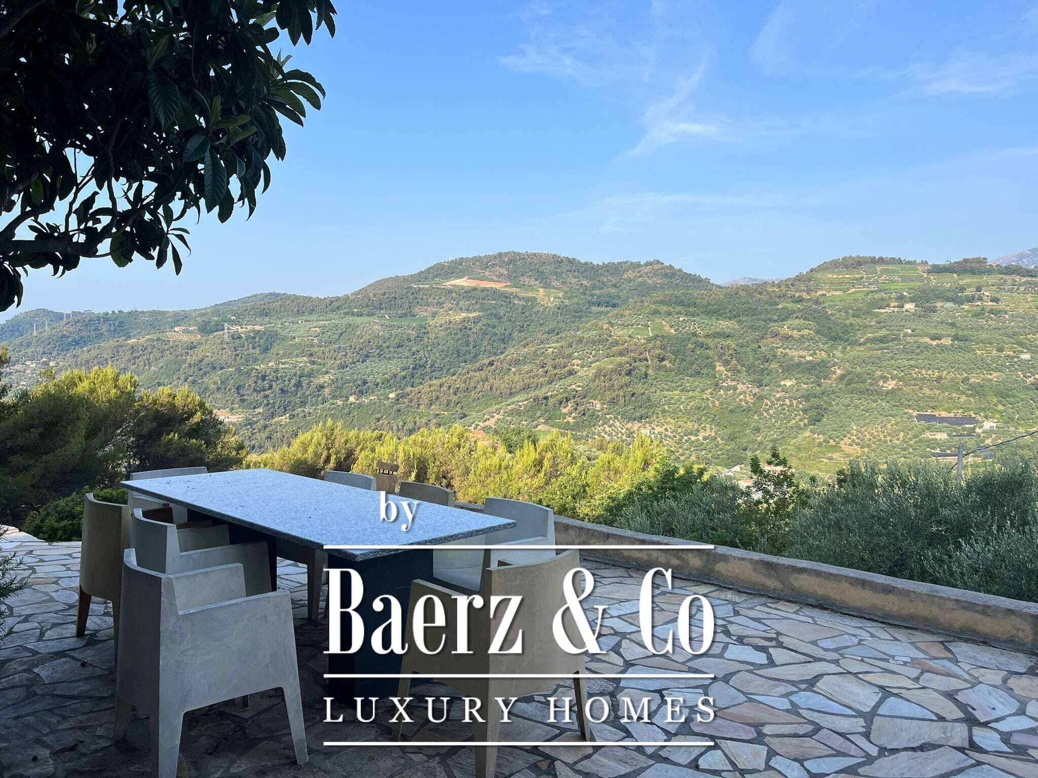 Villa Dolceacqua stands as an expression of understated luxury and Italian craft, combining 166 m² of refined living space with panoramic views over the Nervia Valley, mountain landscapes, and the Mediterranean Sea. This villa Dolceacqua presents a balanced flow between indoor and outdoor living, set on a private 10,000 m² plot dotted with olive trees, vines, and mature fruit trees.
