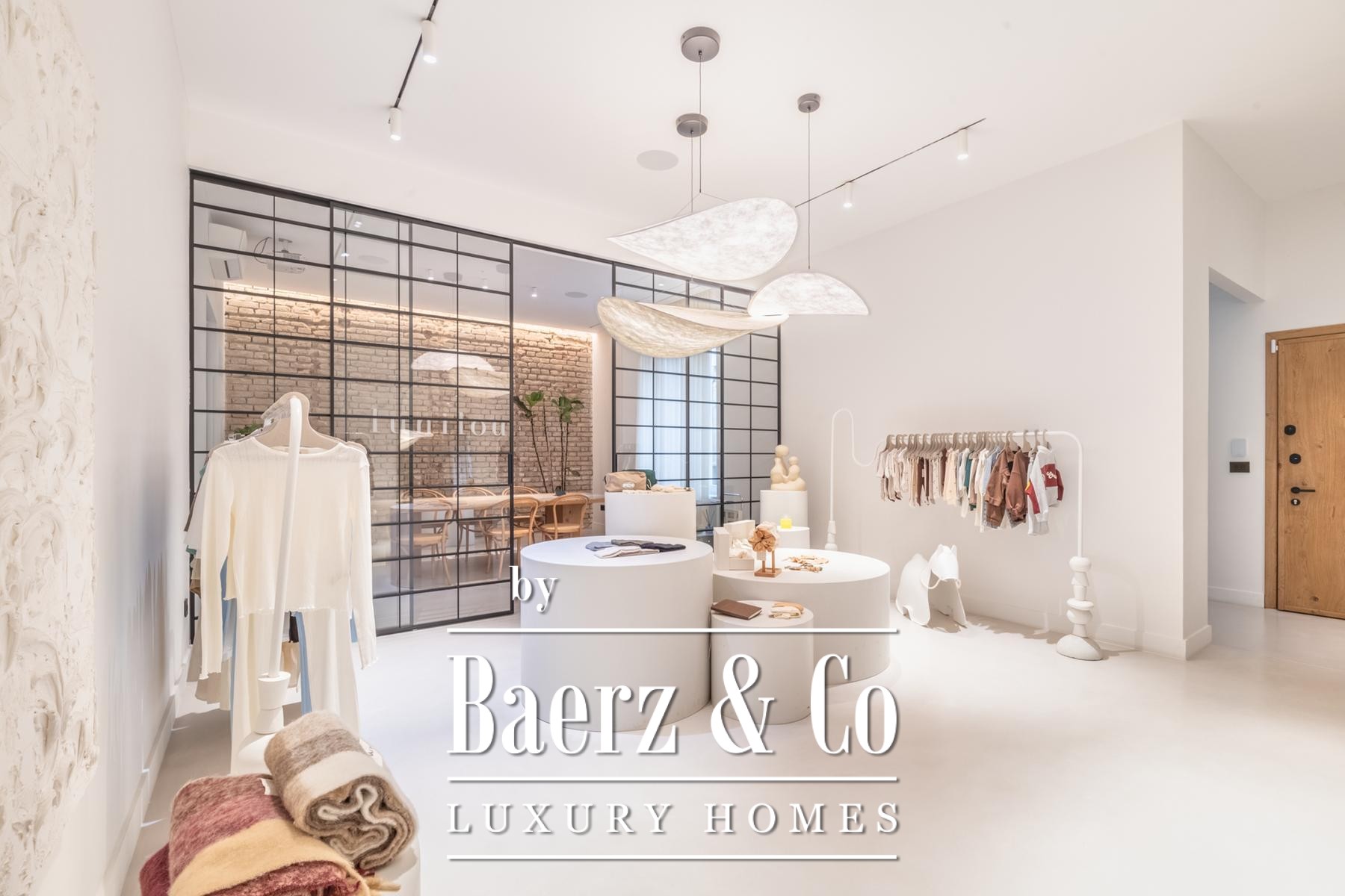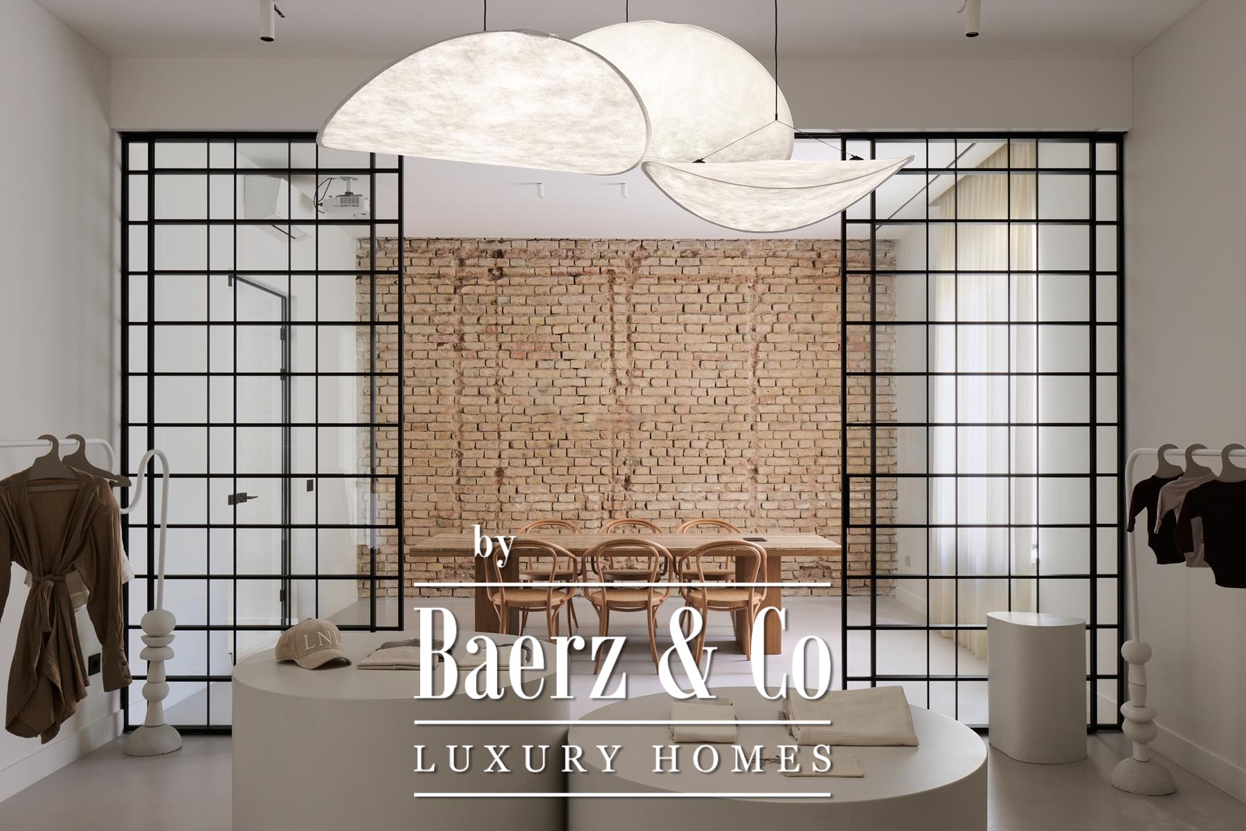 The interiors have undergone a complete transformation, introducing reinforced concrete slabs, seamless epoxy floors, advanced carpentry, underfloor heating, and comprehensive air conditioning. Natural light flows throughout both units, enhanced by high ceilings and a representative entrance, amplifying a sense of generosity and calm. Currently purposed for sophisticated business activity, the space readily lends itself to use as offices, consulting rooms, or medical suites. Should one wish, the property can easily be reconfigured into a substantial luxury residential apartment, offering four bedrooms and four bathrooms.