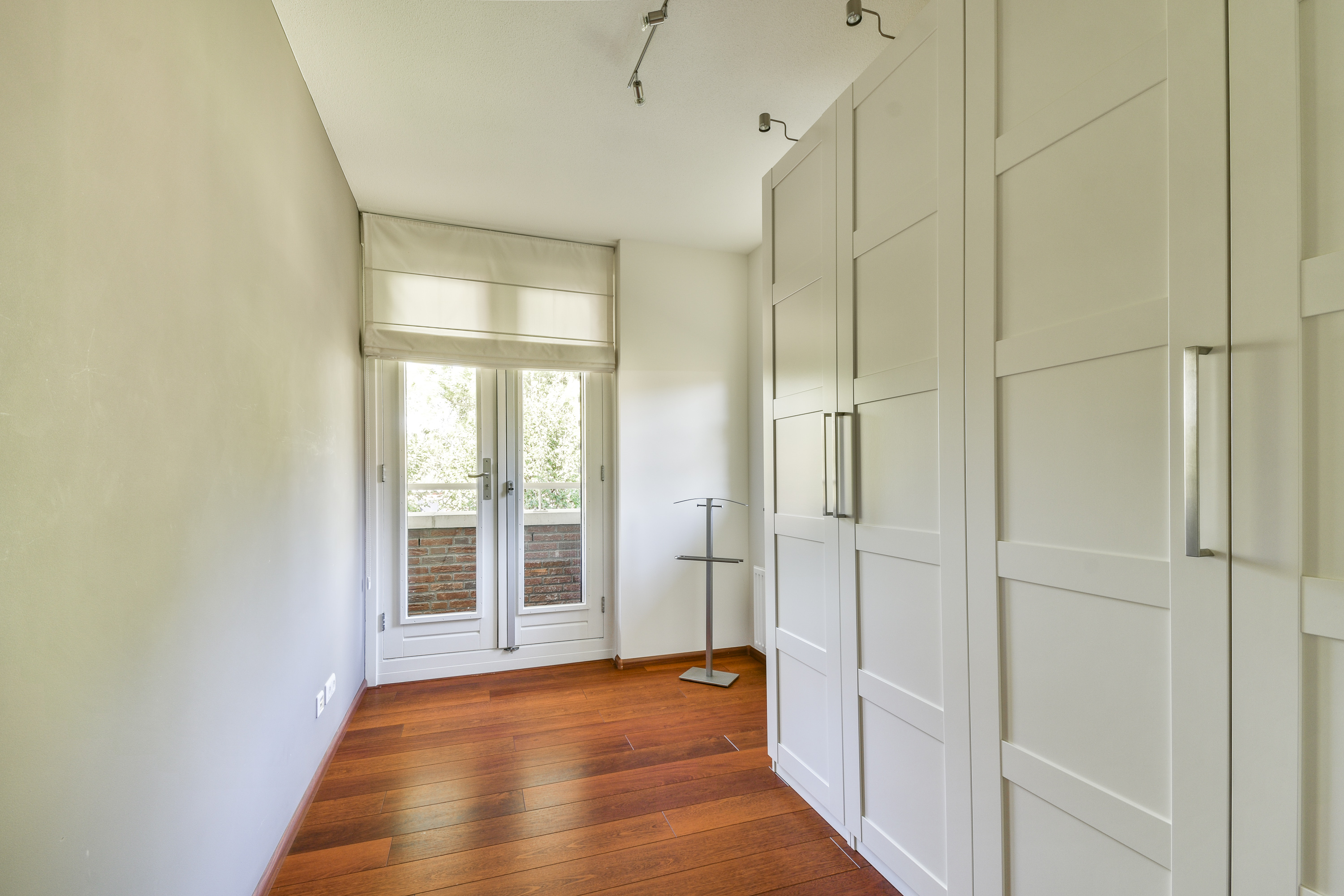 Deze slaapkamer is gelegen aan de voorzijde. Via dubbele deuren is het balkon te bereiken.