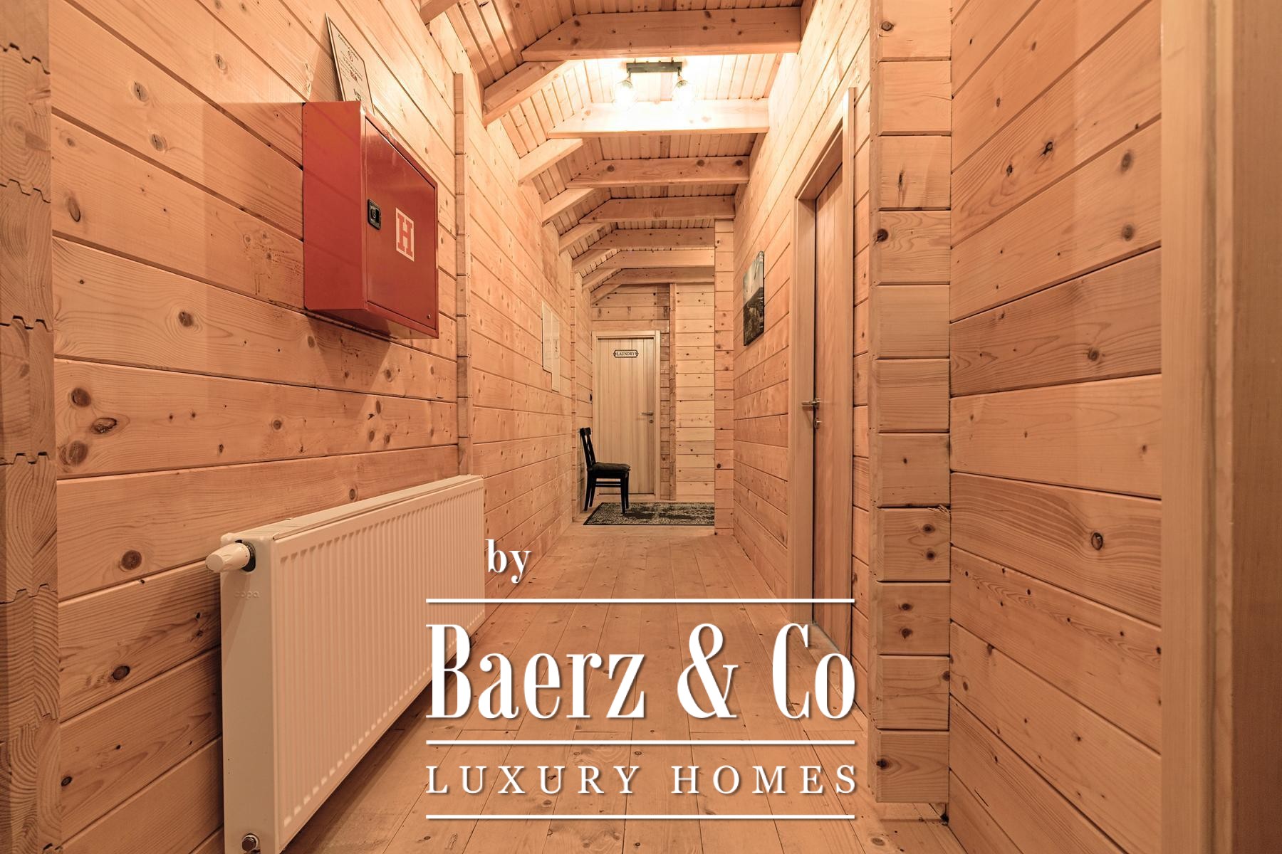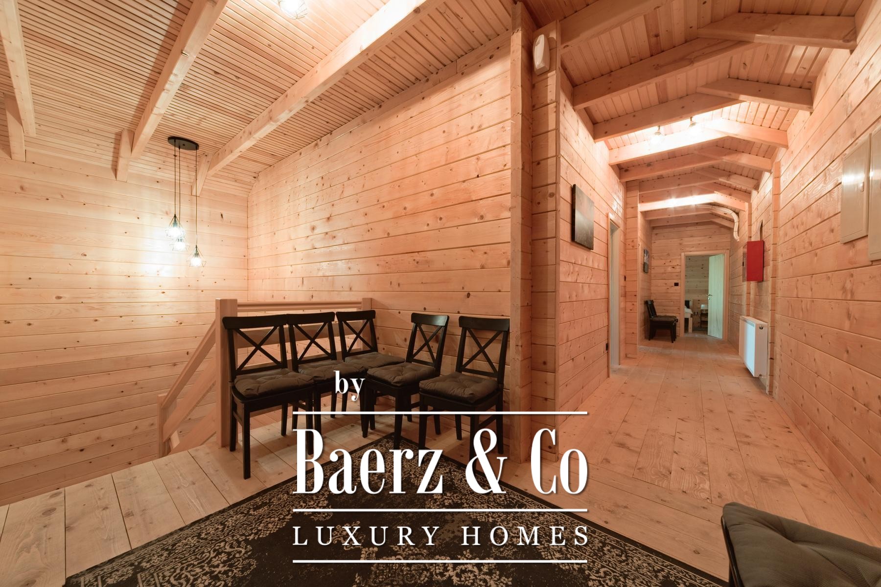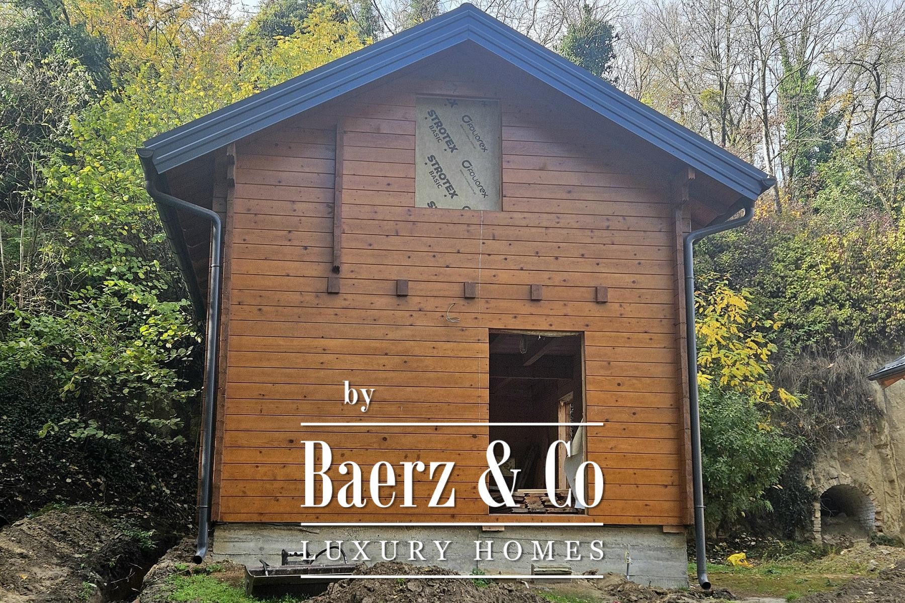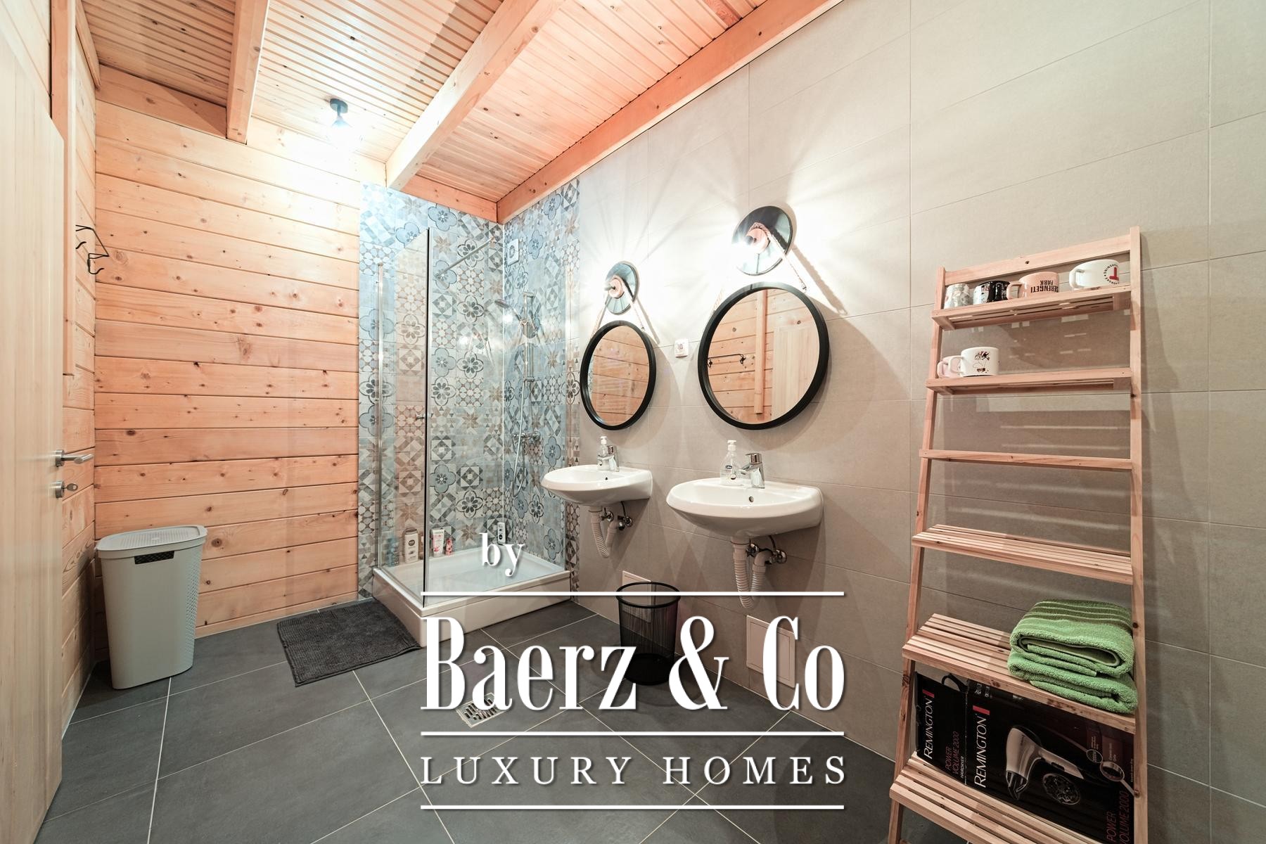 Adjacent to the main house, five newly completed wooden residences each offer 80 m² of living space. The layout includes a bright ground-floor living area and bathroom, while two bedrooms occupy the upper level. Private terraces at the back look onto the generous grounds, with heating designed for efficiency and autonomy.