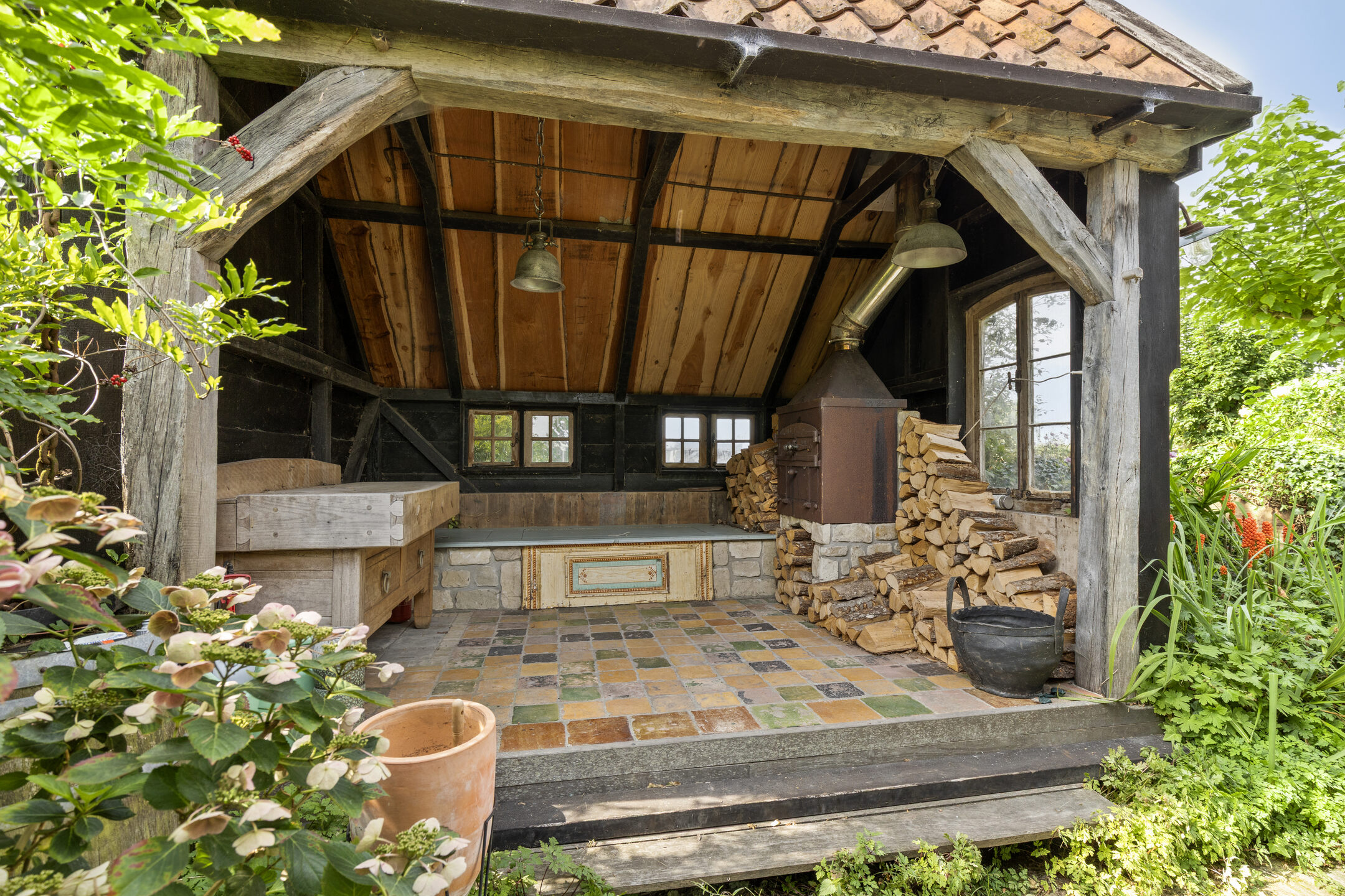 Hand-built in 2002, the house has the charm and appearance of a historic property, while offering all the comforts of a modern home. With approximately 184 m² of living space, 12 solar panels, a hybrid heat pump, a new central heating system (2024), and a thoughtful layout, this is a home where atmosphere and sustainability come together naturally.
