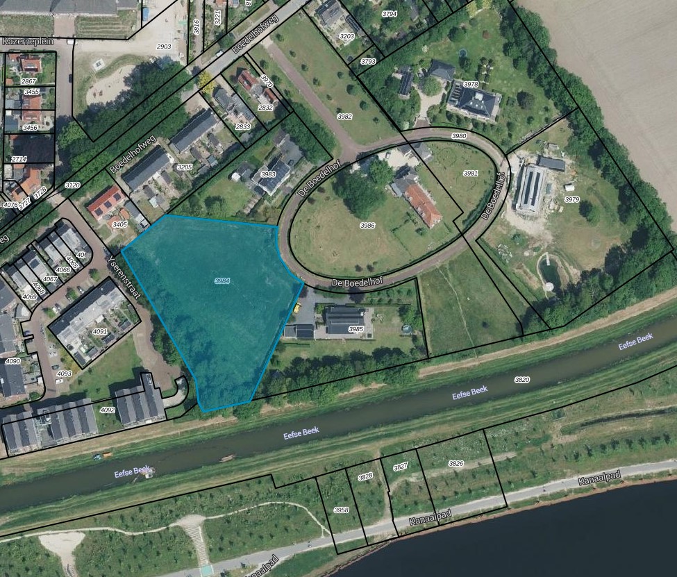 Beautifully situated building plot of 6,029 m² for the construction of a spacious country house, with the unique potential for subdivision into two dwellings. The plot offers a remarkable sense of freedom, with woodland to the rear ensuring additional privacy. Part of the land borders directly on the banks of the Eefsche Beek, with a green strip and the Twente Canal beyond, overlooking the impressive Eefde lock.
