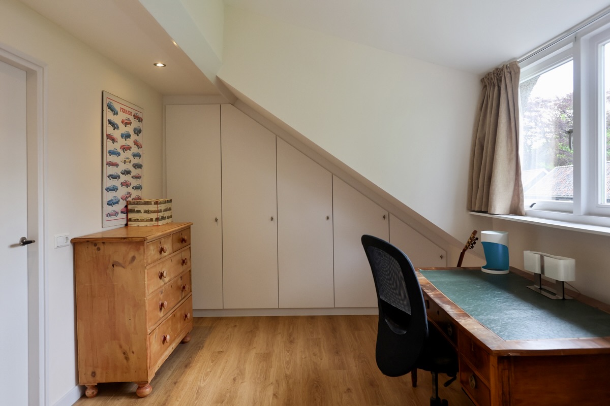 As you move further into the home, the back opens up to a surprisingly large and bright living room, where a fireplace sets the tone for cozy winter evenings. This space flows seamlessly into the dining area and modern open-plan kitchen, fitted with high-quality Miele built-in appliances – together forming the heart of the home with a view of the deep garden and vast landscape beyond. No painting can match the beauty of this view. A nearby utility room offers extra storage and convenience.
