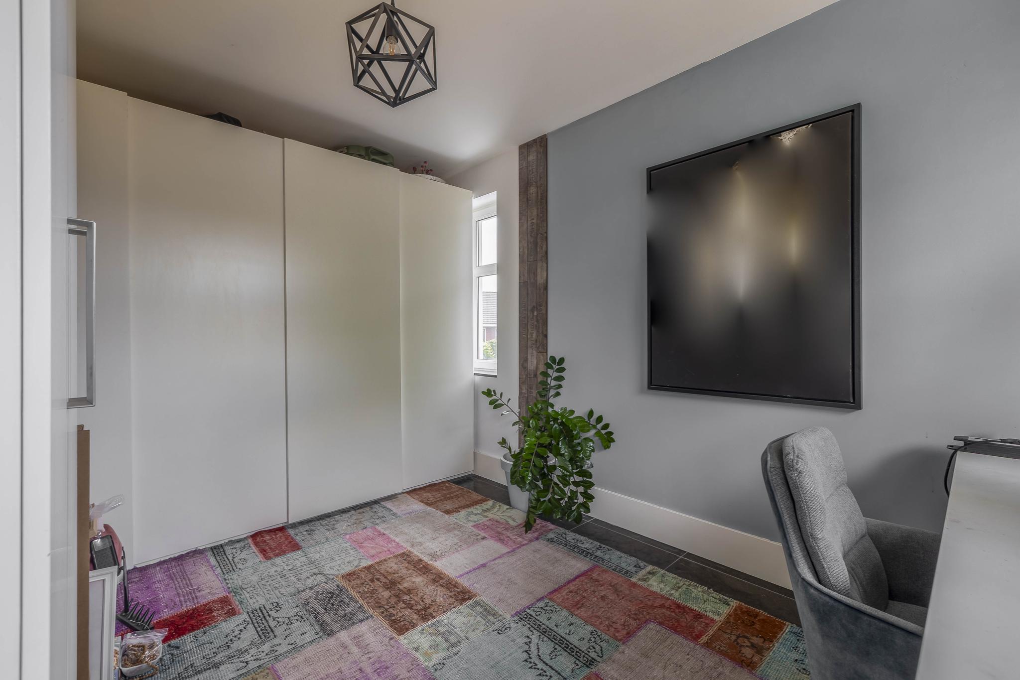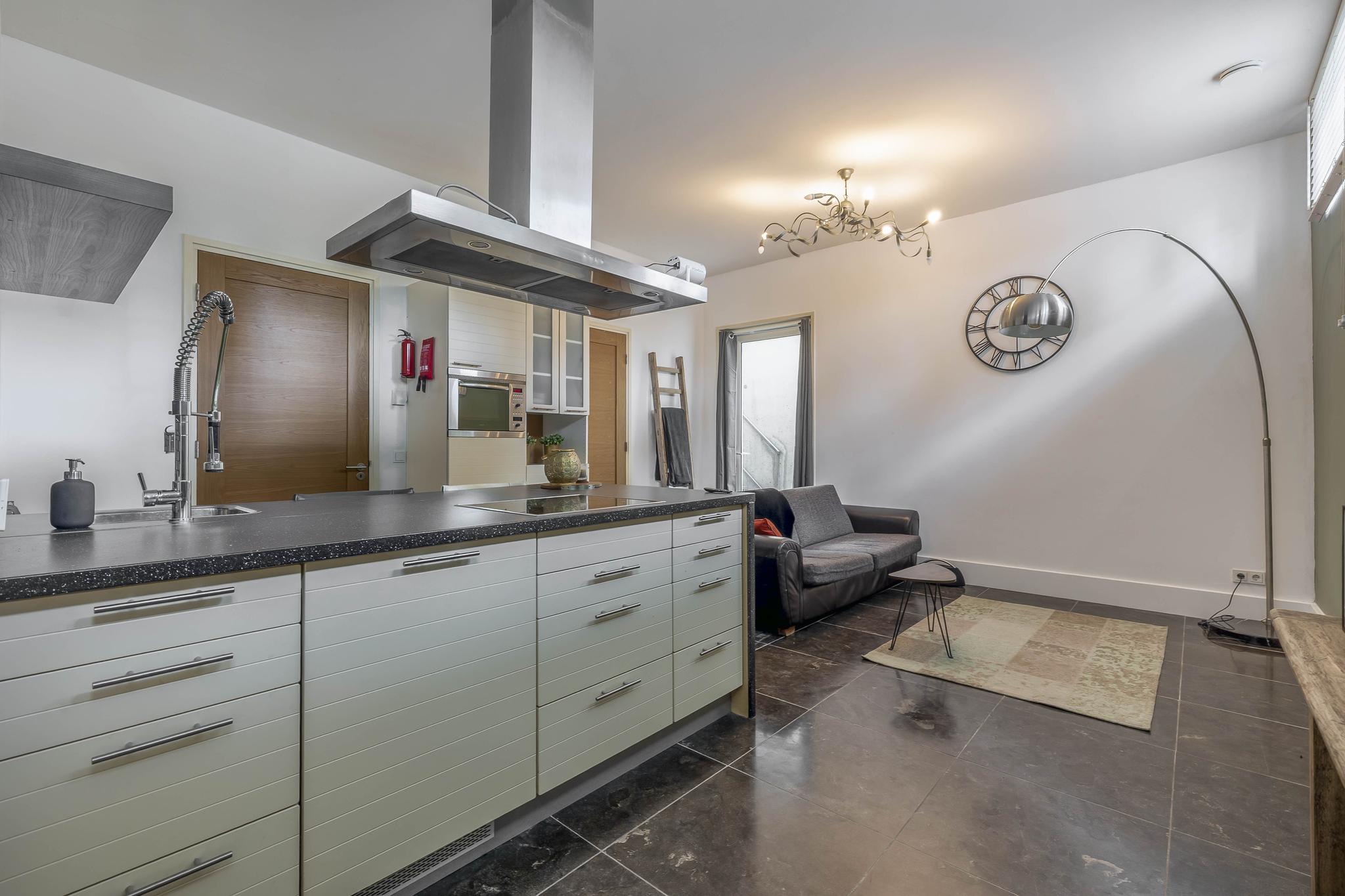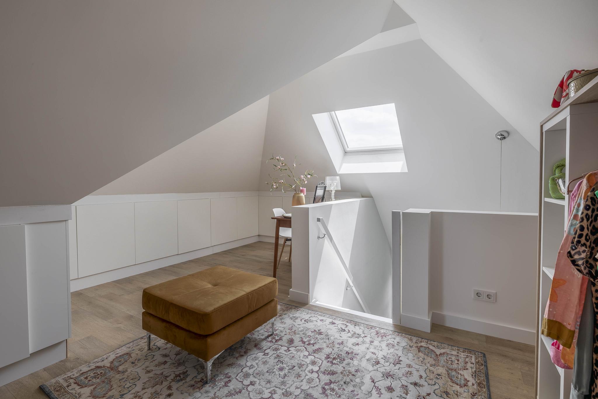 Through the spacious entrance with beautiful tiled floor, modern toilet and extensive meter cupboard, you enter the kitchen at the front of the house. This stylish and complete kitchen is the heart of the house and features a kitchen island, luxury appliances and plenty of workspace. Thanks to the raised floor level, you have a beautiful view of the street.