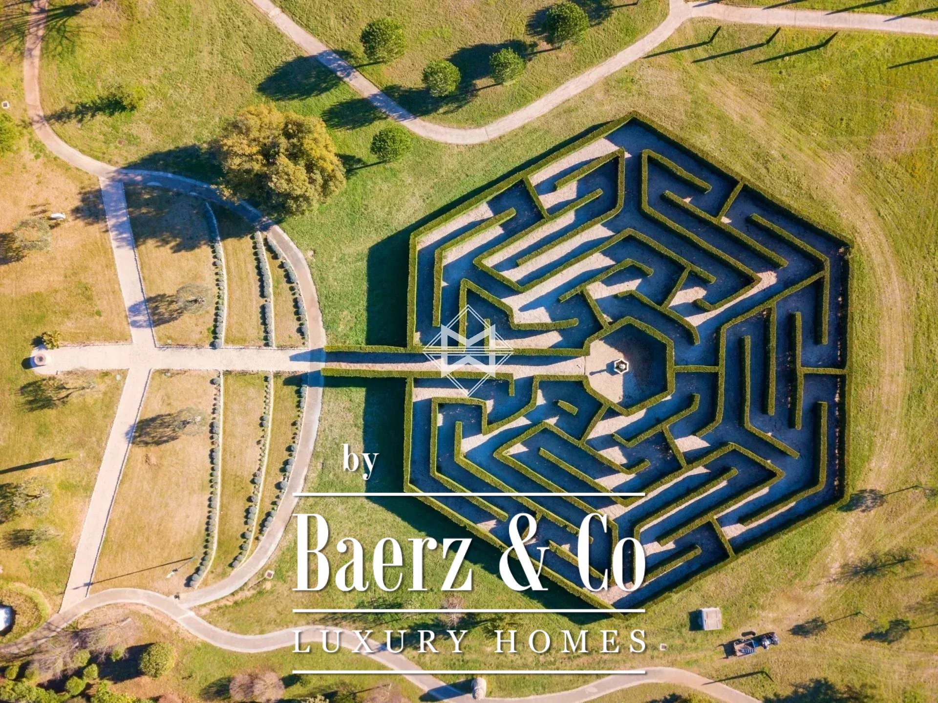 Bringing the outdoors in, the grounds are thoughtfully cultivated: a truffle orchard with 250 young trees, cherry and apple groves, vegetable gardens with fresh herbs, and rolling pastures. The rhythm of leisure is set by a large swimming pool and tennis court, a maze, playground, chicken coop, and even a skateboard ramp.