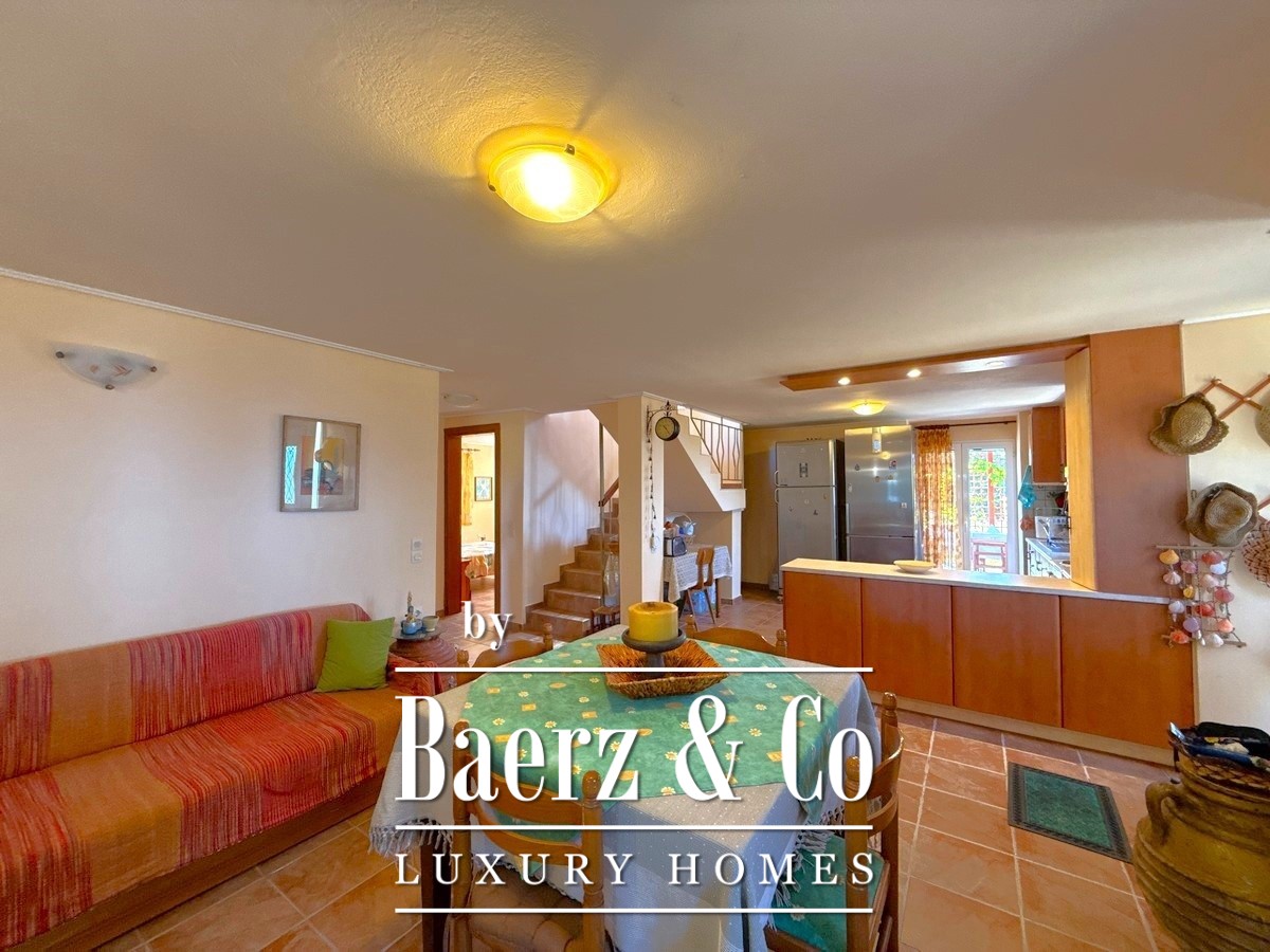 of the Messinian Sea. Access between floors is available via both internal and external stairs. The outdoor space is surrounded by trees and includes an area suitable for a landscaped garden — perfect for carefree moments. With a southwest orientation, the home offers magical sunsets and daily connection with nature. It was carefully renovated in 2003 with attention to detail and respect for its character, and includes all modern amenities such as aluminum frames with double glazing and screens, an external storage room, and a WC. It is located in close proximity to top destinations such as Costa Navarino with its luxury golf courses, historic Pylos, and the Palace of Nestor, adding significant cultural and investment value to the property. Ideal both as a holiday home and for tourist use, this seaside residence is not just a property — it's a rare life proposal in a place of enchanting beauty and genuine tranquility.