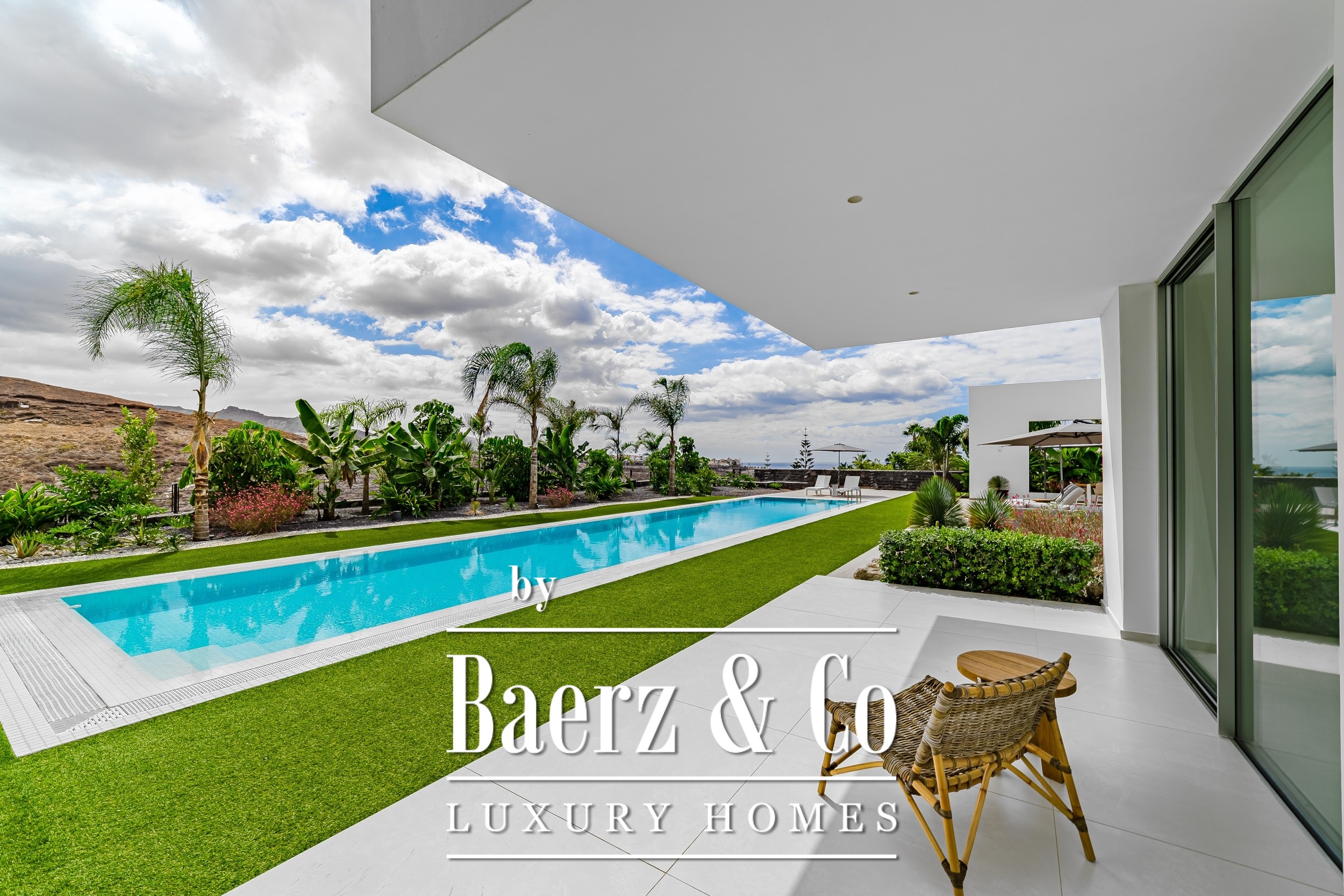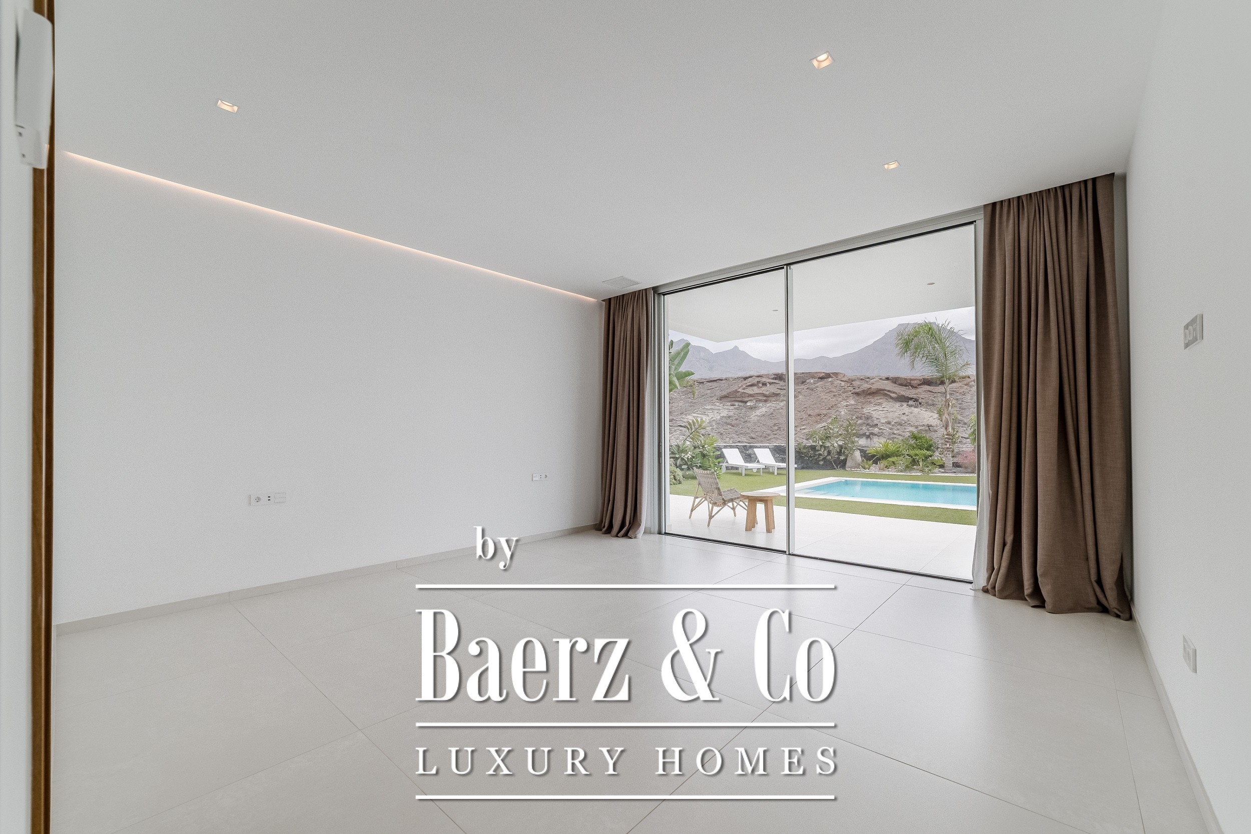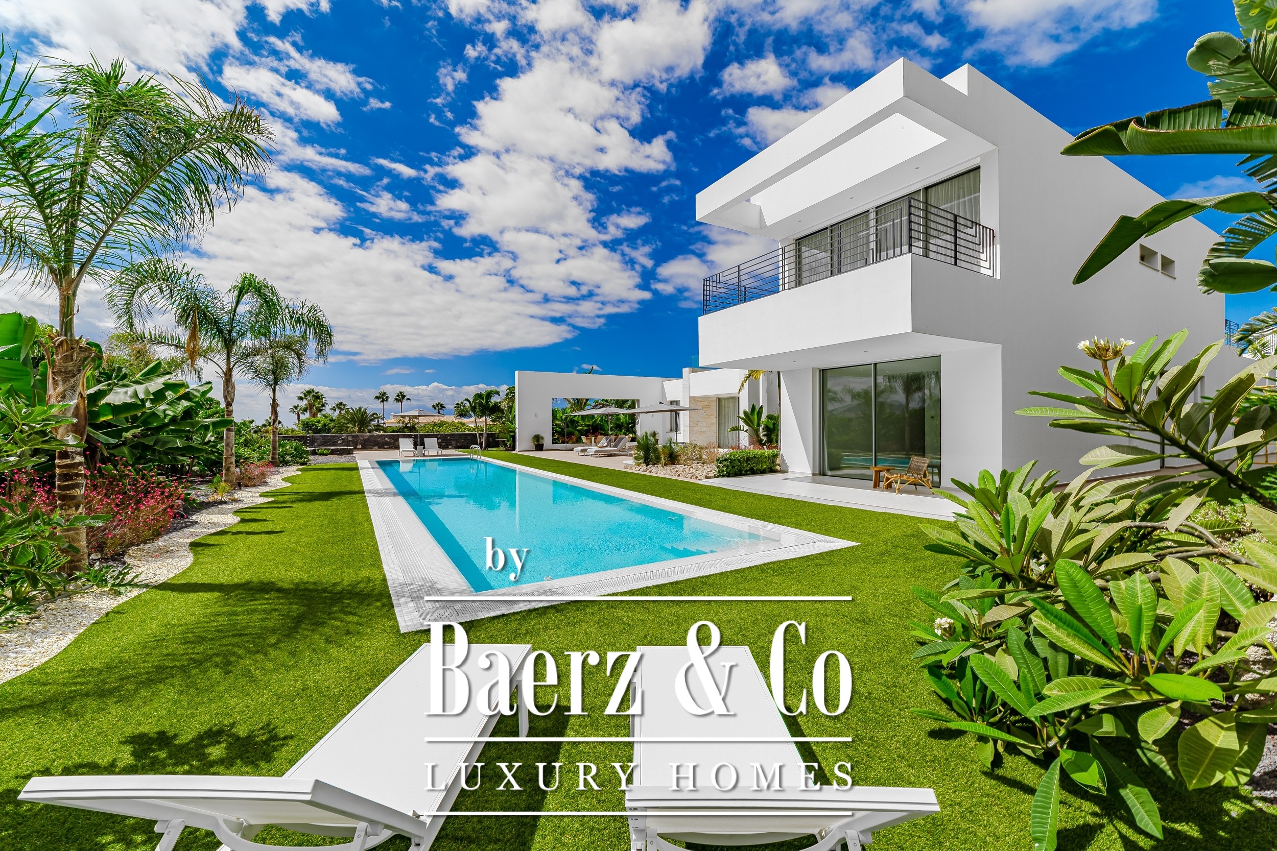 Luxury villa Golf Costa Adeje stands discreetly among the most prestigious addresses in southern Tenerife, where elevated design meets calm seclusion. Set within a 2,500 m² plot and embraced by a 1,500 m² tropical garden, this property reflects sophisticated island living. The villa encompasses approximately 350 m² of thoughtfully arranged spaces, complemented by a 200 m² basement that invites customization, whether for a private cinema, wellness studio, or gym.