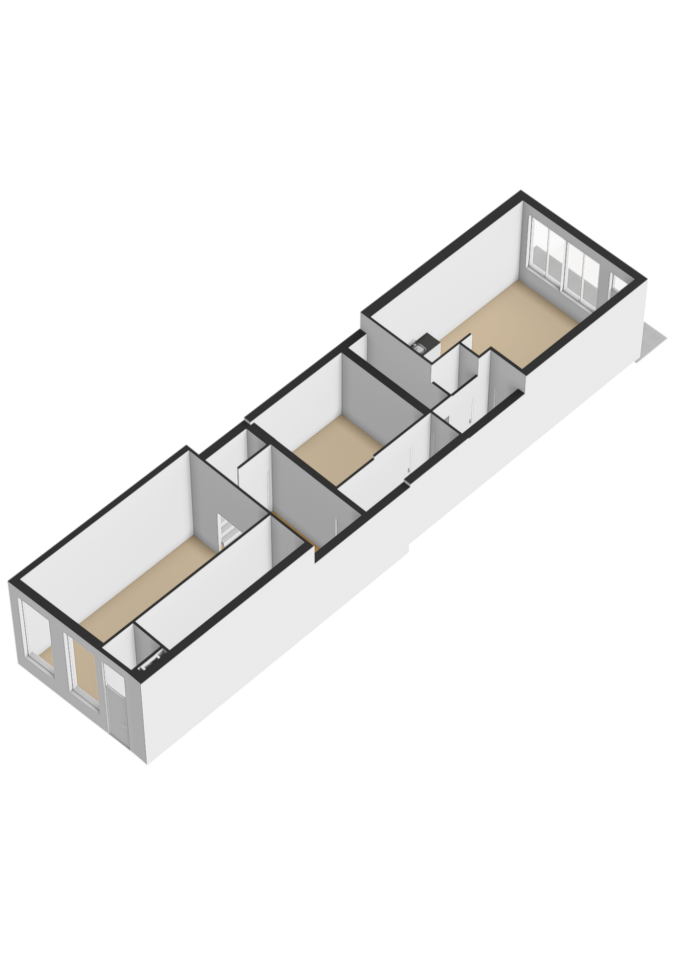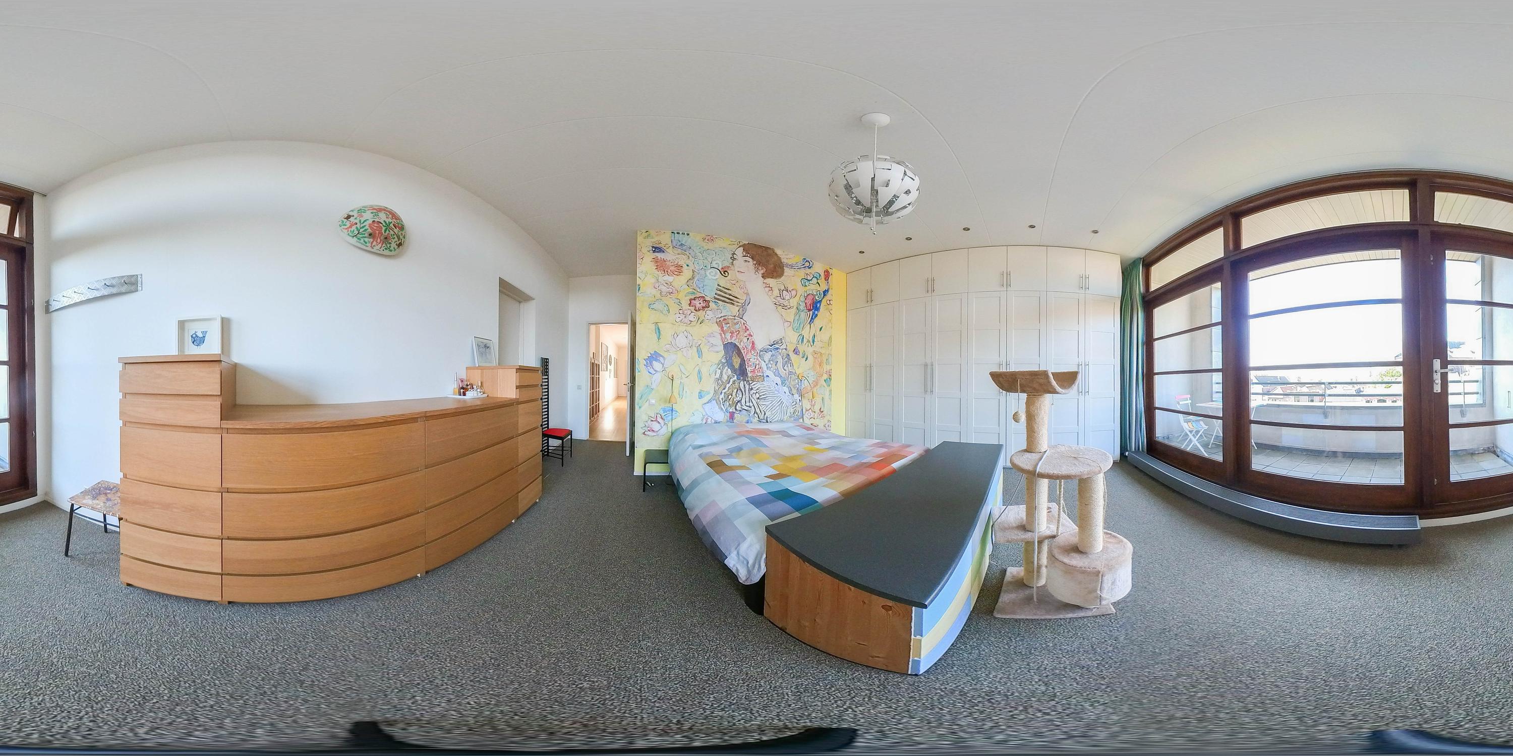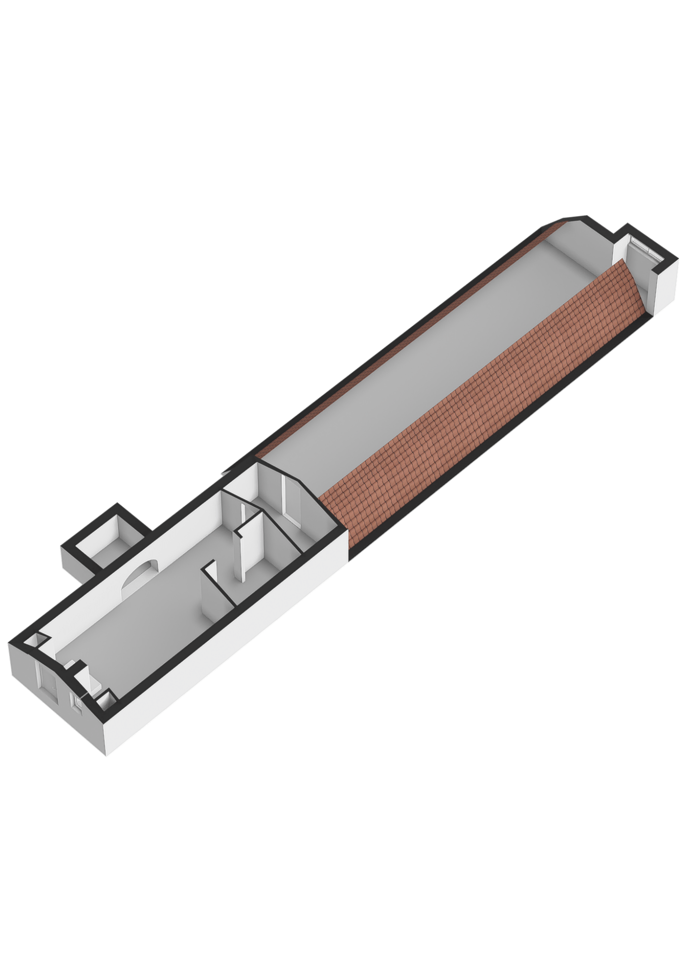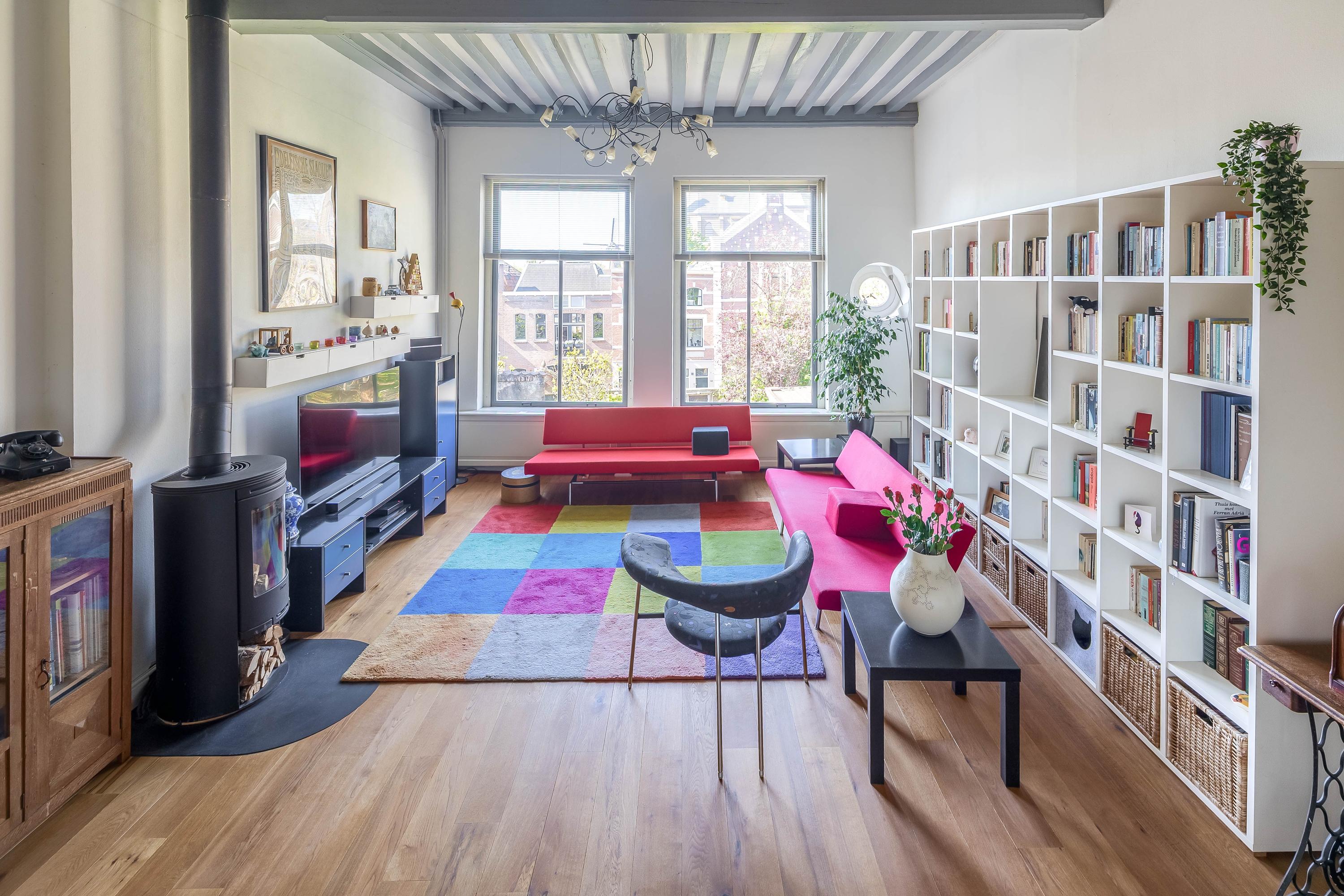 Rear bedroom with new rear façade and door to terrace with stunning view over the historic buildings of Gouda’s city center, bedroom with built-in wardrobe, air conditioning, boiler room, and front bedroom with view of the museum and St. John’s Church