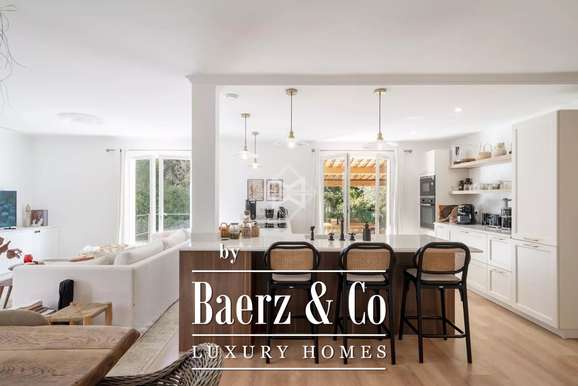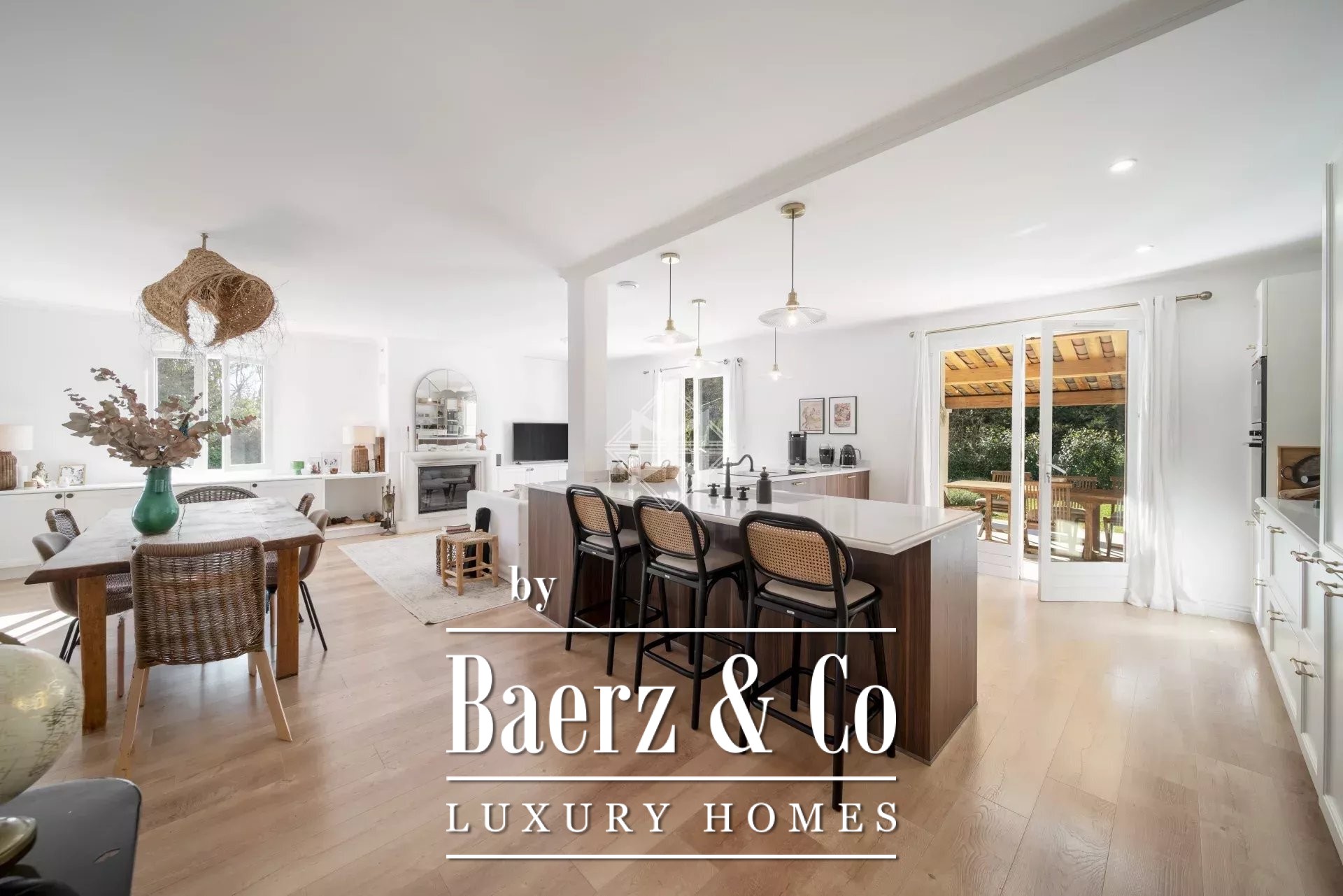 Joint sole Agent: Nestled in the heart of the countryside, at the end of a cul-de-sac, this delightful Provencal one storey villa has been completely renovated using quality materials and offers an idyllic setting, where absolute calm and privacy reign. Elegant furnishings, tailor-made fittings and plenty of natural light are the hallmarks