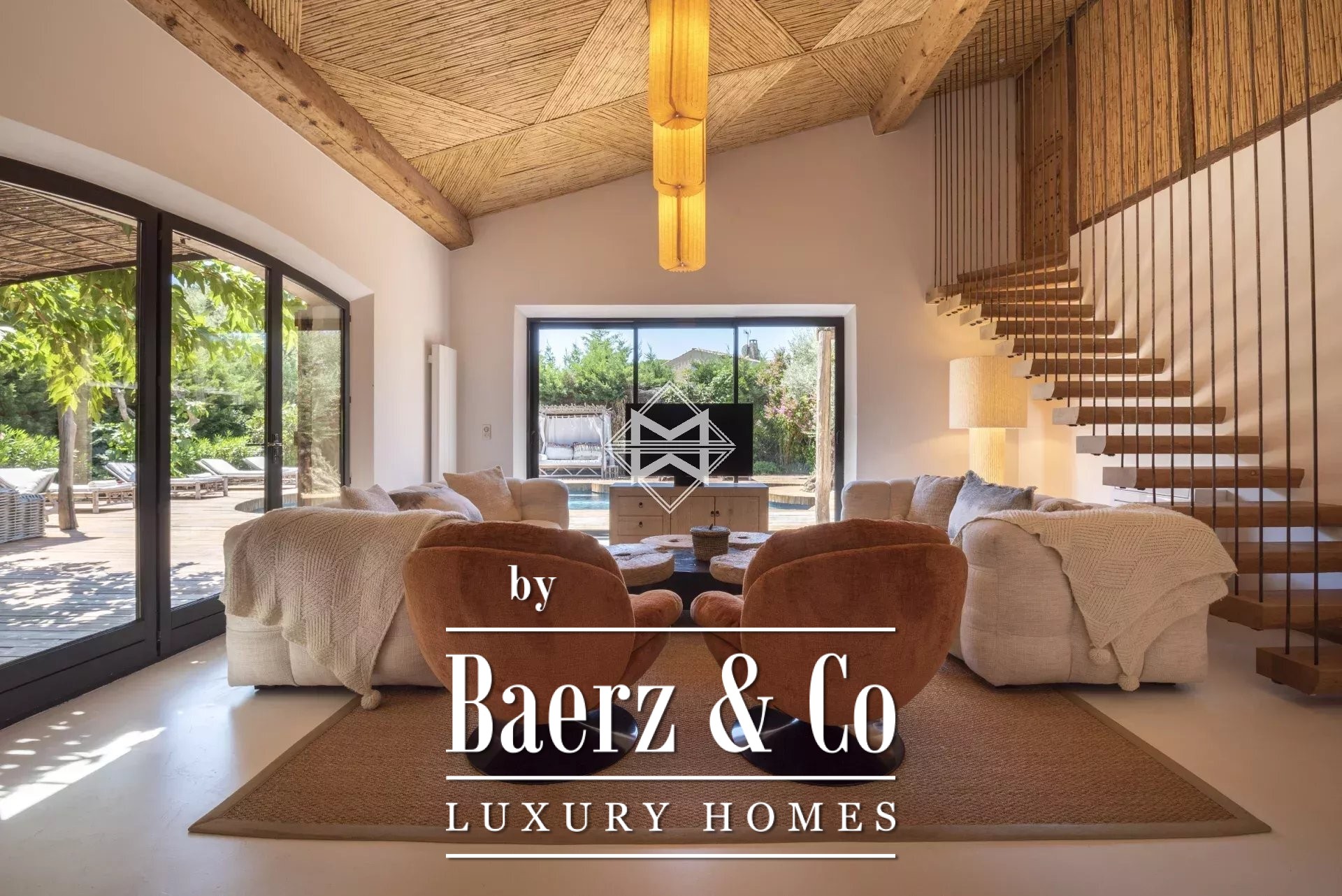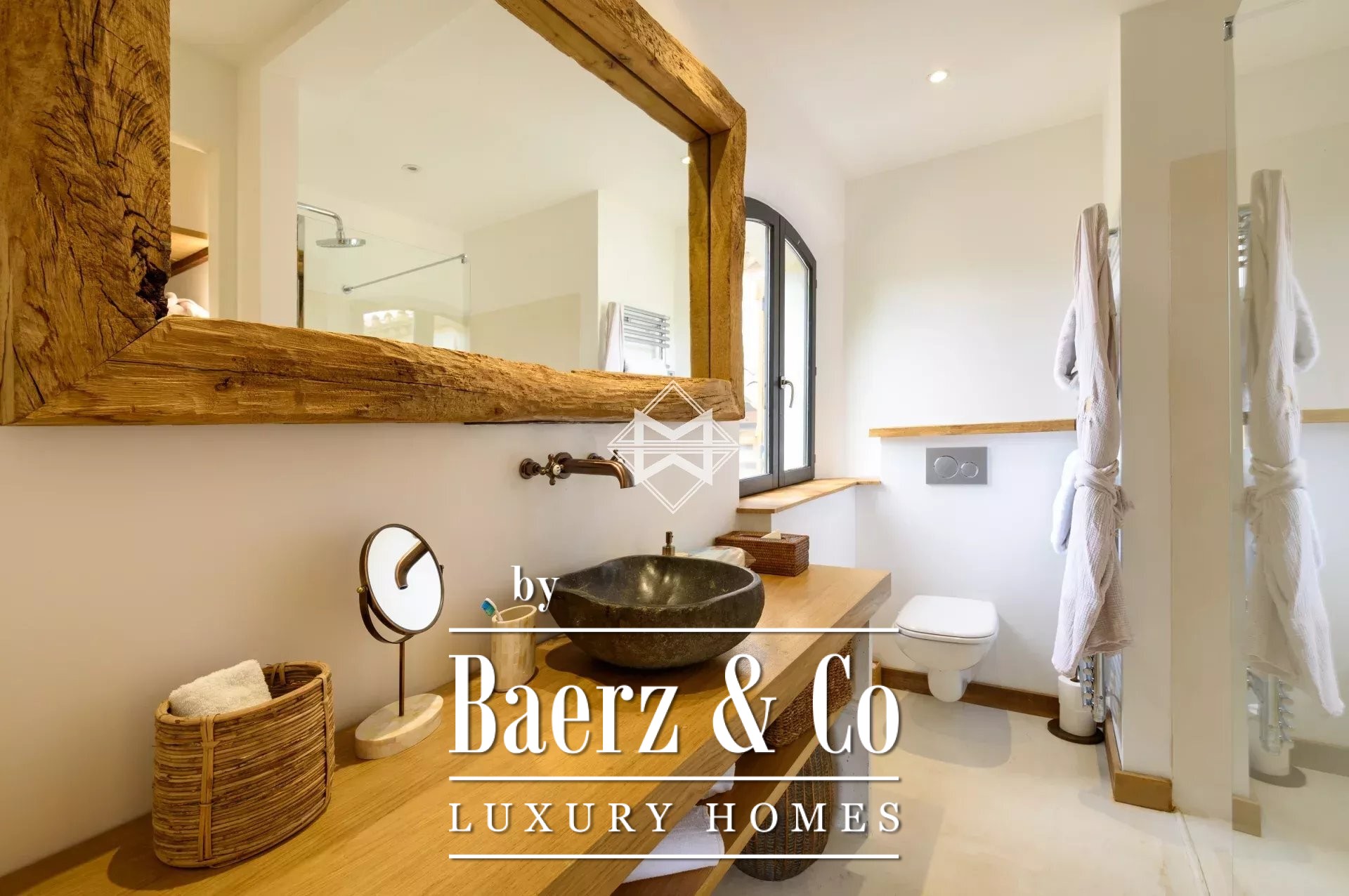 Villa Grimaud is set within a secluded private estate, a property that encapsulates refined Provençal living. The residence spans 241 m² and sits elegantly on an established 1886 m² plot, gently shaded by mature gardens. This villa in Grimaud welcomes with five bedrooms, each with its own en-suite bathroom, including one with a bathtub for moments of restorative calm.
