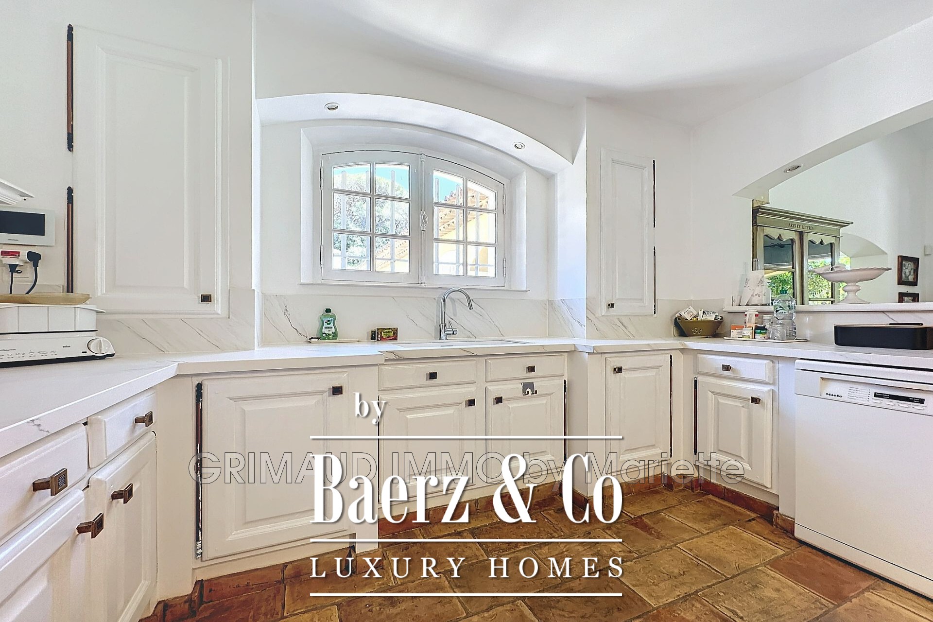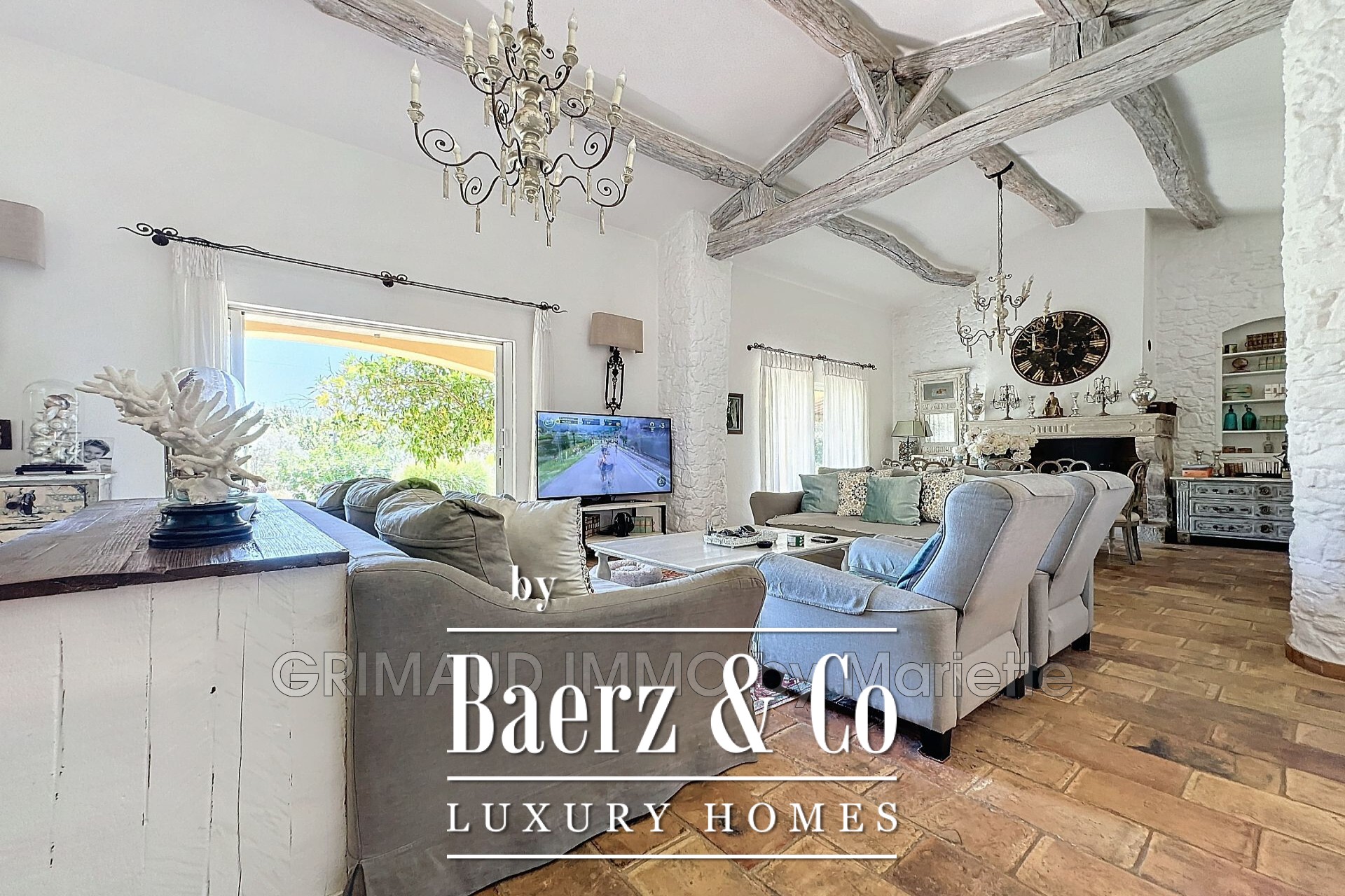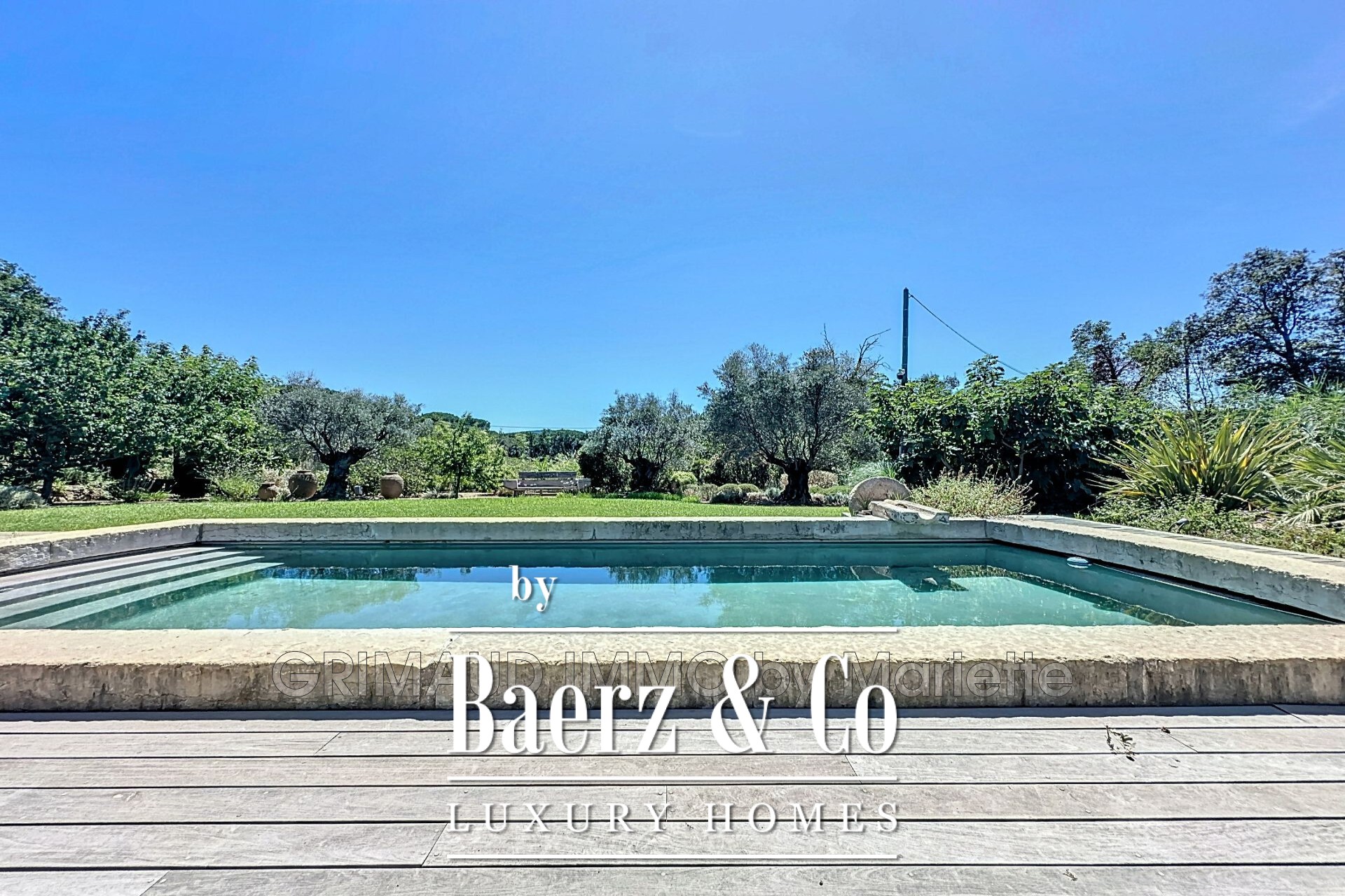Villa Grimaud offers an understated sanctuary on 2,900 m² of carefully fenced garden, revealing vineyard panoramas and a gentle proximity to the heart of Grimaud village. This villa in Grimaud is designed on a single story, presenting 163 m² of living space defined by exposed beams and the steady warmth of a large fireplace. Each architectural detail, from the expansive living room to the covered terrace with a summer kitchen, draws in the rhythm of Provençal life while maintaining quiet elegance. The property provides three bedrooms, including a master suite with a dedicated dressing room and both bathroom and shower, alongside two additional bedrooms that share a thoughtful bathroom layout. The open-plan kitchen is fully equipped and adjoins a functional laundry room, supporting day-to-day ease. Outdoor living is enhanced by a heated pool, two detached garages, two attached garages, and a generous carport, creating seamless transitions across spaces. Mature gardens, vineyard views, and walkable access to Grimaud’s village centre anchor the villa in an atmosphere of privacy and cultivated charm. This luxury villa for sale in Grimaud embodies a subtle blend of comfort, authenticity, and timeless appeal.