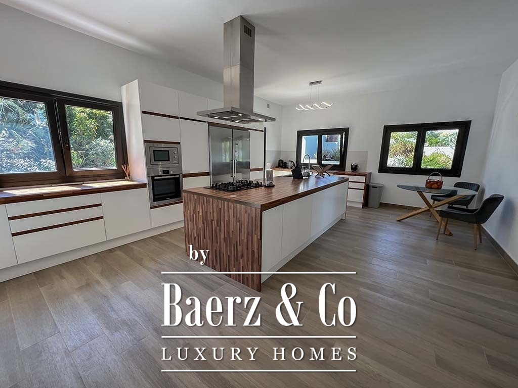 The villa consists of 4 bedrooms and 3 bathrooms. The house was carefully renovated in 2019 and the marble floors, imported from Italy in the 70s, have been restored. It is equipped with high quality appliances and fittings. The property is equipped and furnished.