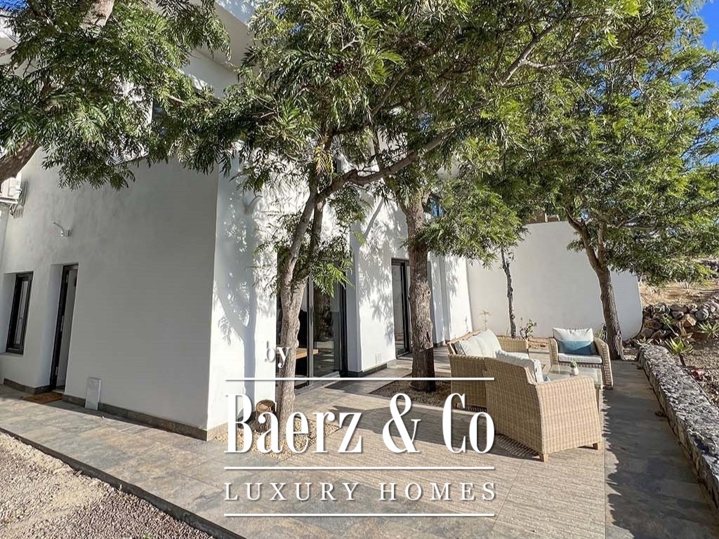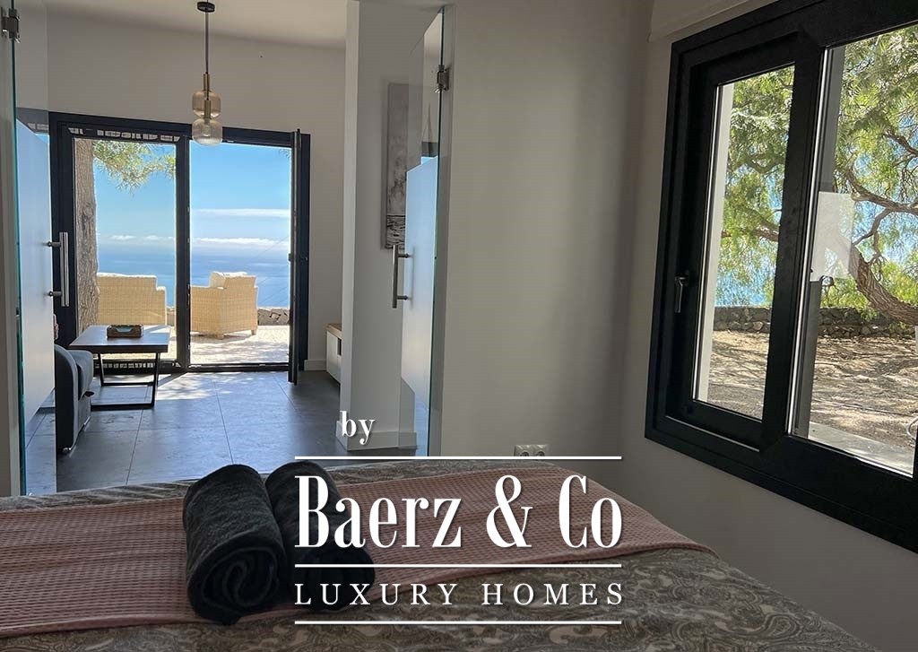 The whole area is covered in lush vegetation with trees, shrubs, cacti and succulents. Surrounding the house is a granite paved terrace. The bedroom, the terrace and the plot offer a beautiful view of the ocean and Gran Canaria.
