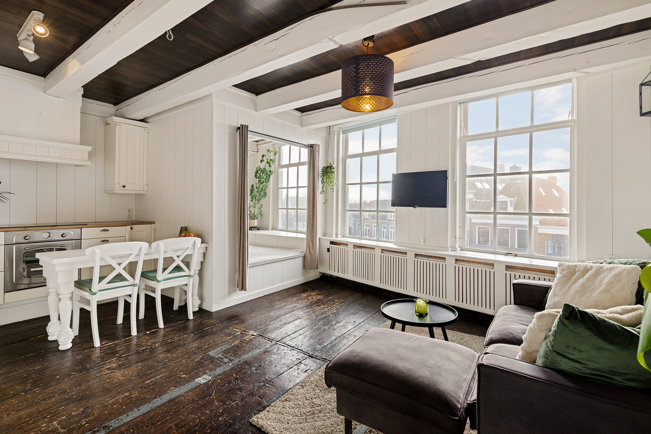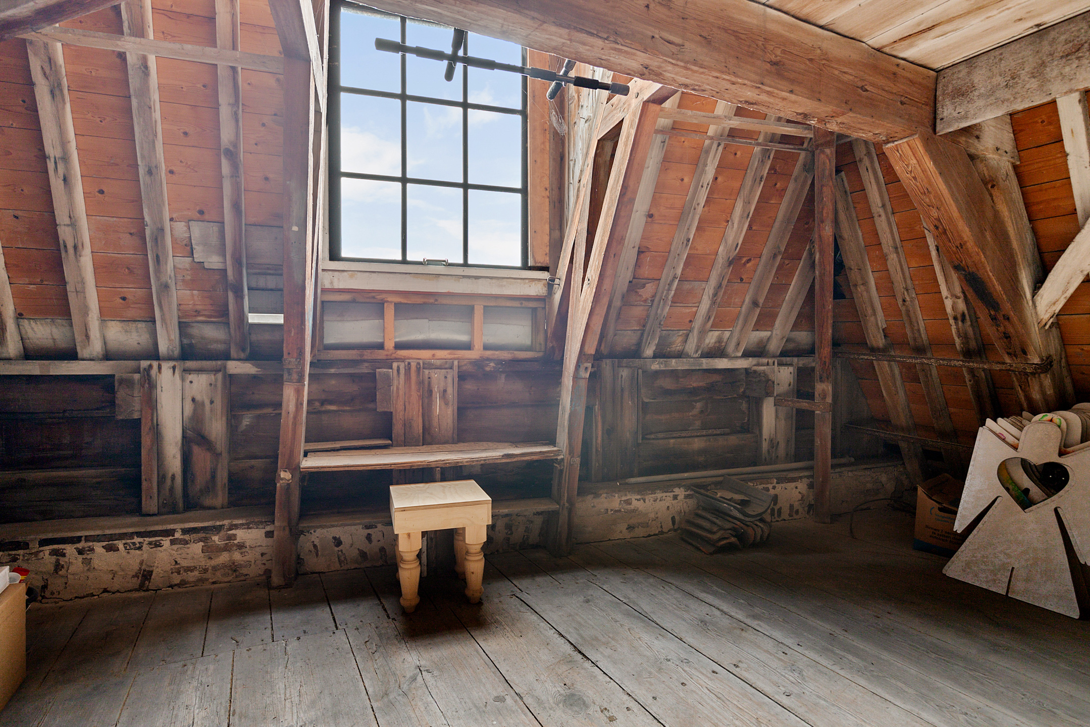 An impressive centuries old wooden staircase leads to the full attic level of 106 m2 with a ceiling height of 2.17 m where the original trusses and heavy beams remain beautifully exposed. The old cabin offers a phenomenal view over Harlingen and to the rear is a more modern roof window. This level has excellent potential for transformation into a loft style living space.