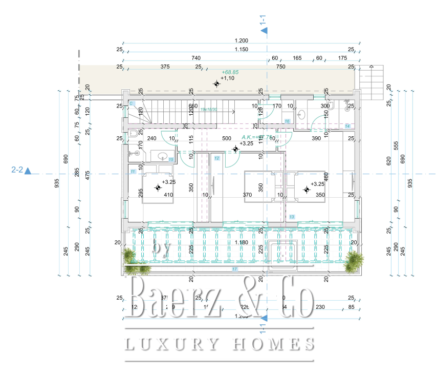 The villa itself has 357,56m2, while its plot has 638m2. It has a view of the sea and the mountains that surround it.