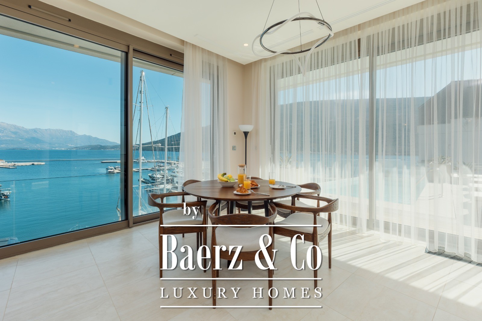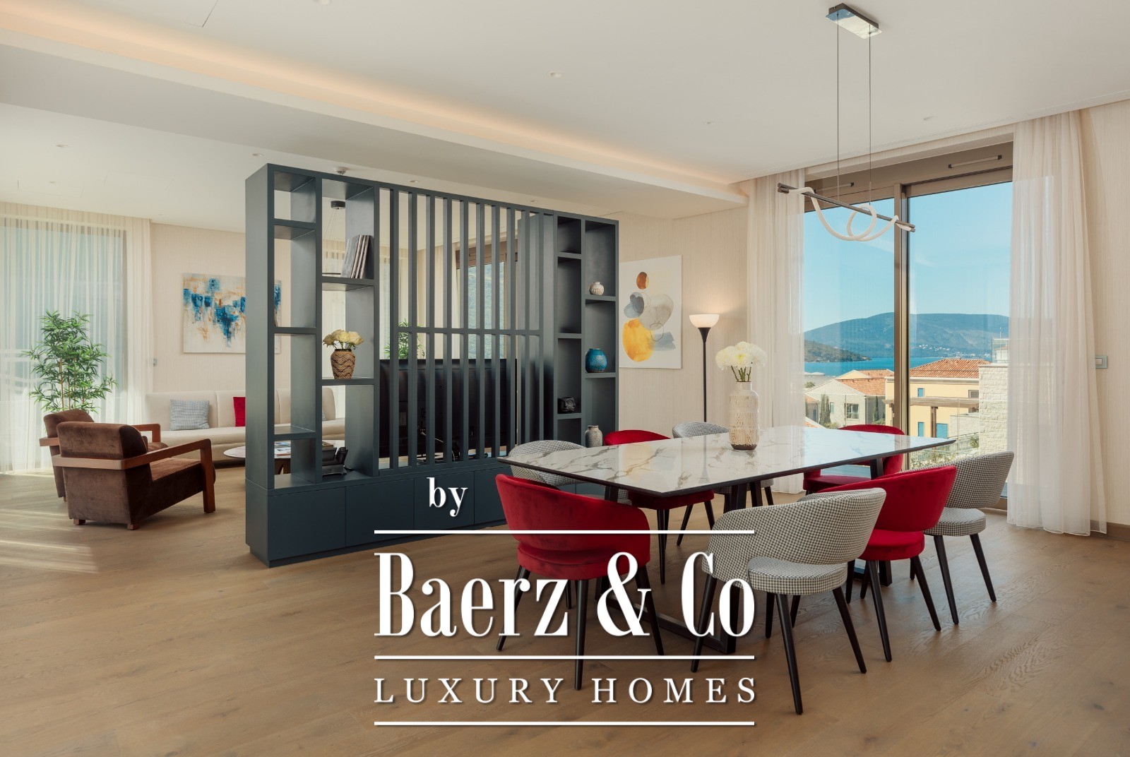 Villa Herceg Novi offers a rare blend of space and setting, positioned just 50 metres from the Adriatic shoreline. This villa spans 611 m² and is situated on the first floor of a tranquil four-level residence. Generous terraces open to panoramic views of the sea, marina, and mountains, lending the home an air of quiet contemplation and light. The location is seven kilometres from the historic city centre, in close proximity to Tivat airport, and within immediate reach of restaurants, shops, and the marina.