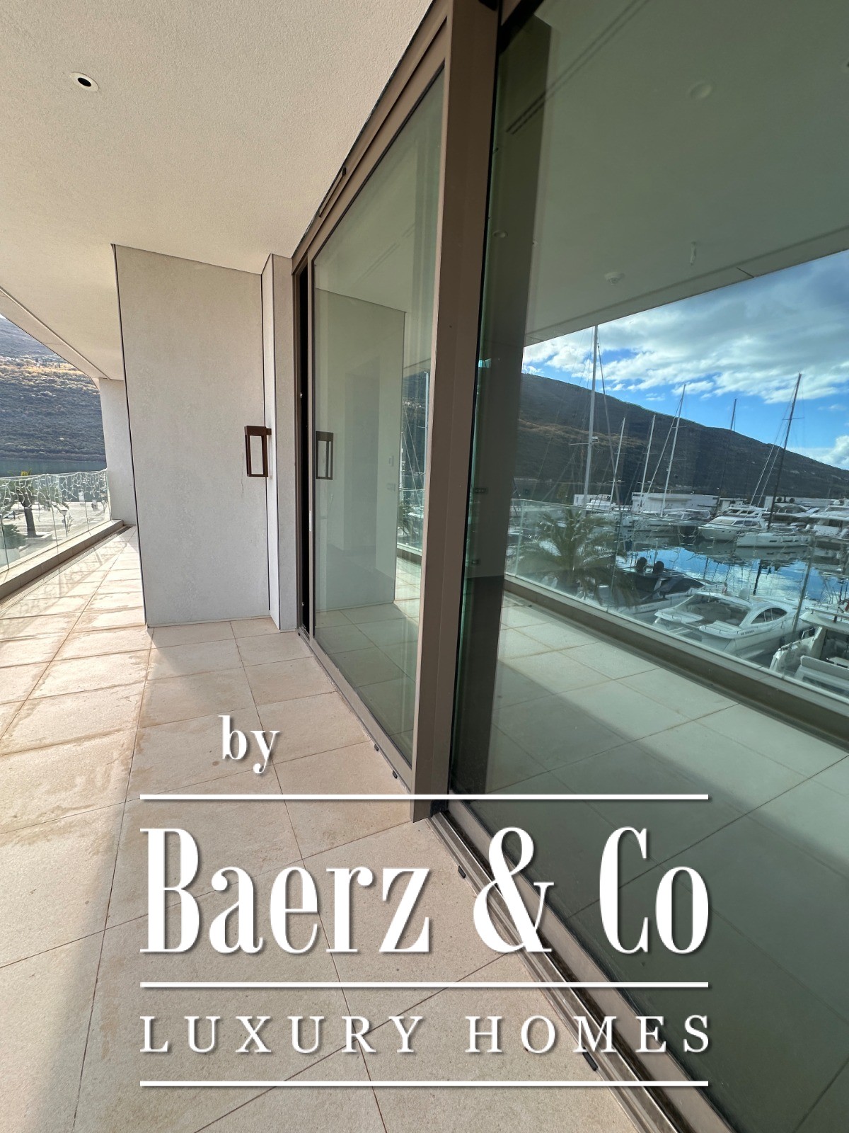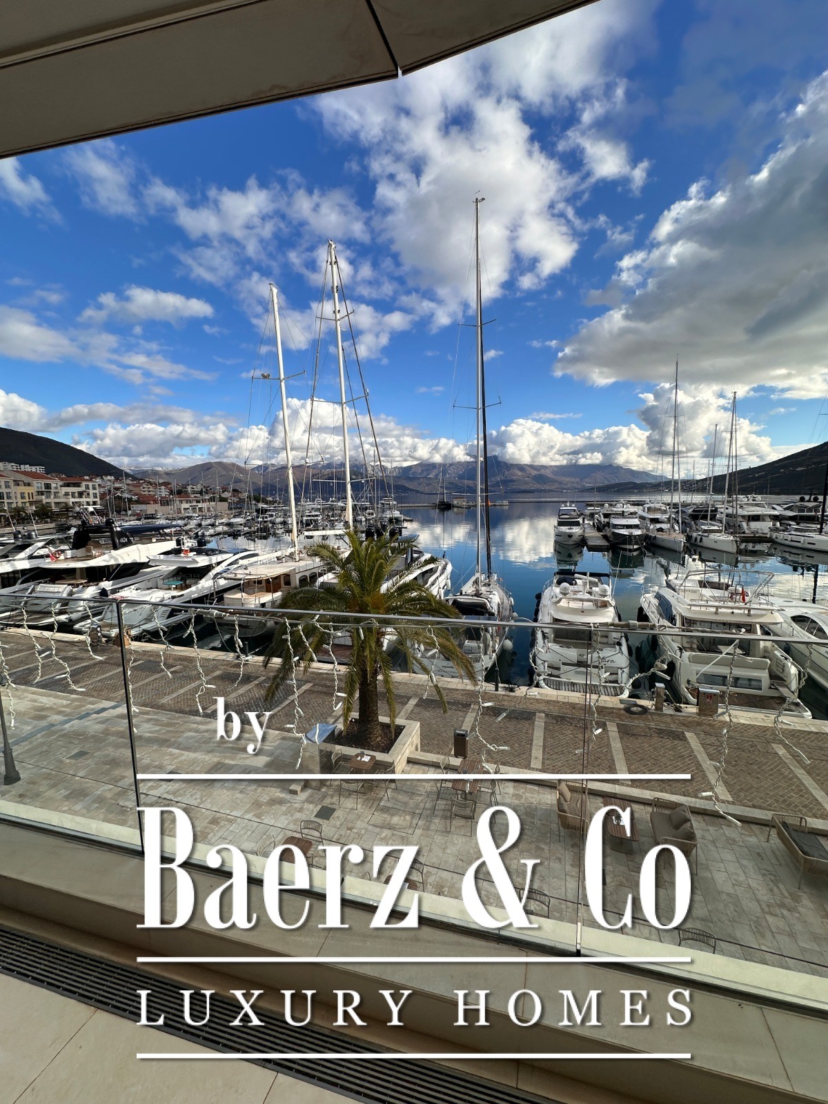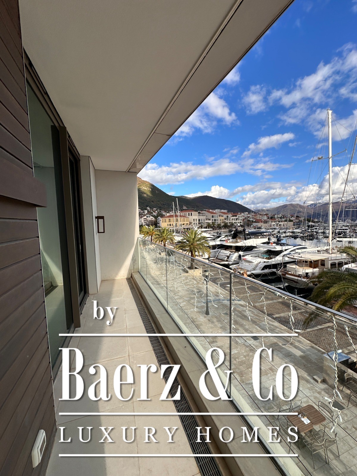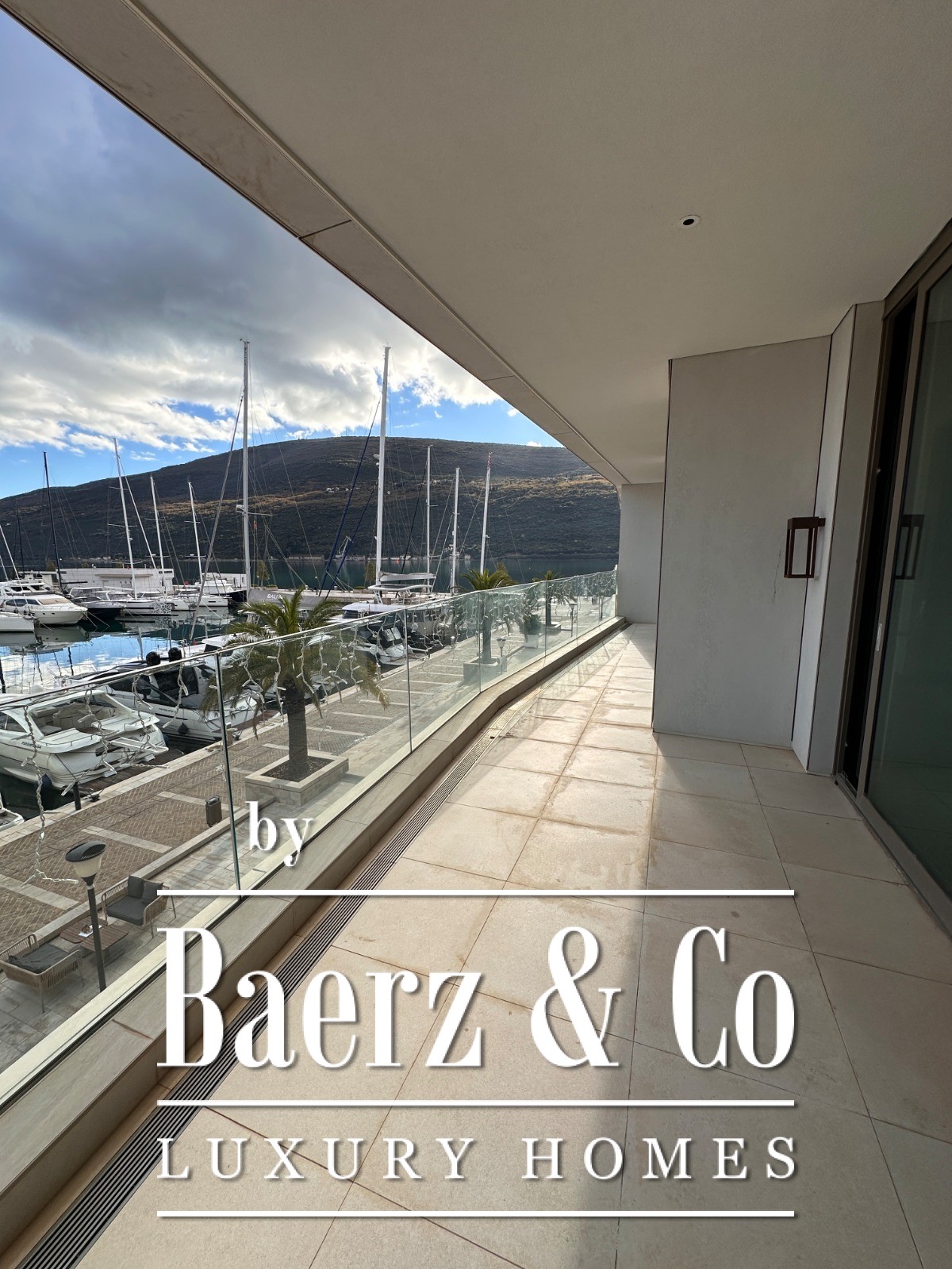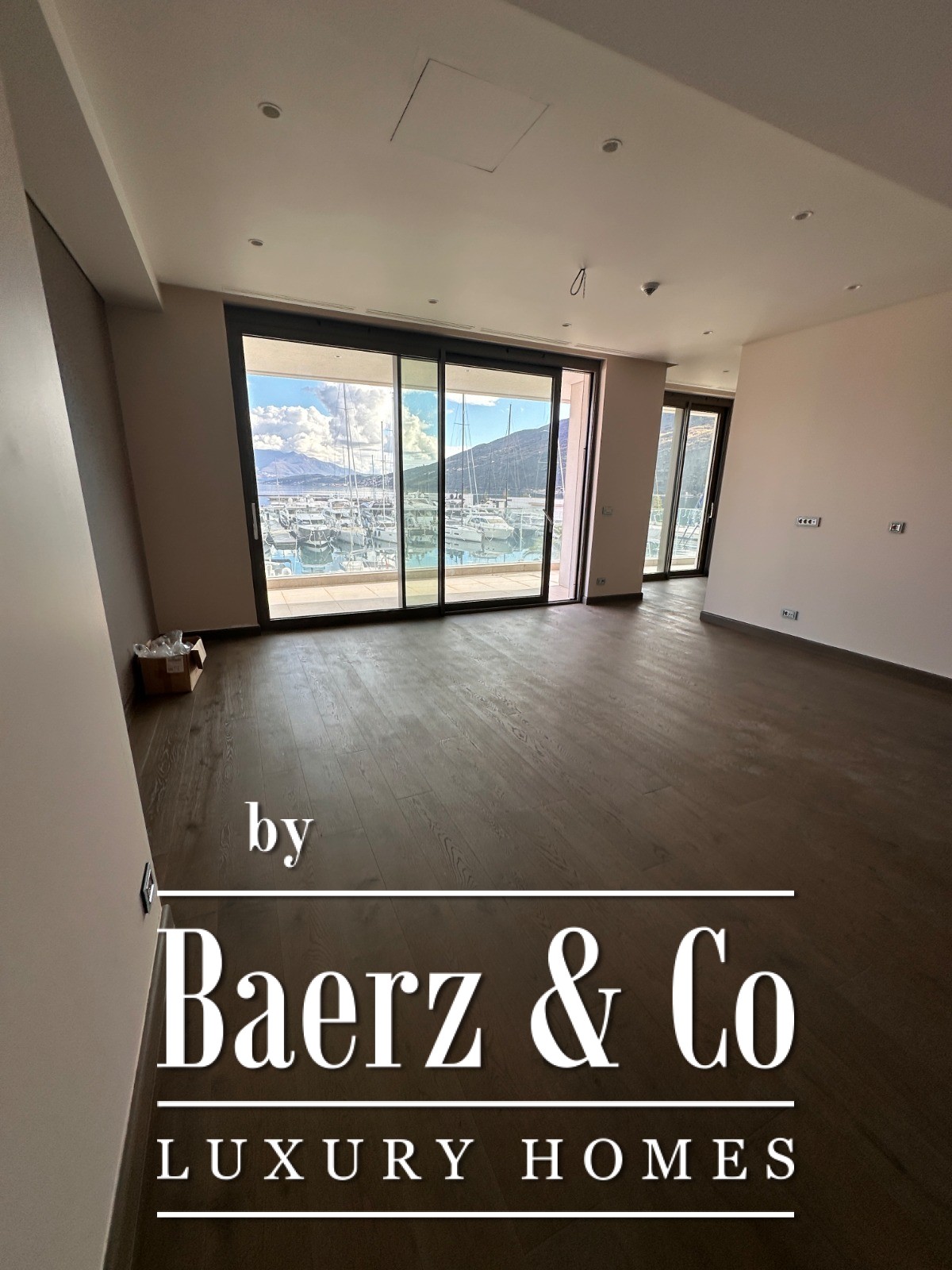 The apartment’s layout includes a hallway, a living room melding seamlessly with the kitchen and dining area, two bedrooms, two bathrooms, a guest toilet and an expansive terrace. From here, views sweep across the sea, marina and surrounding mountains, drawing the ever-changing Montenegrin light into each space. Finished floors, fitted bathrooms and air conditioning evoke both comfort and restraint, while ownership includes access to pools, dedicated beaches and sports facilities within the complex.